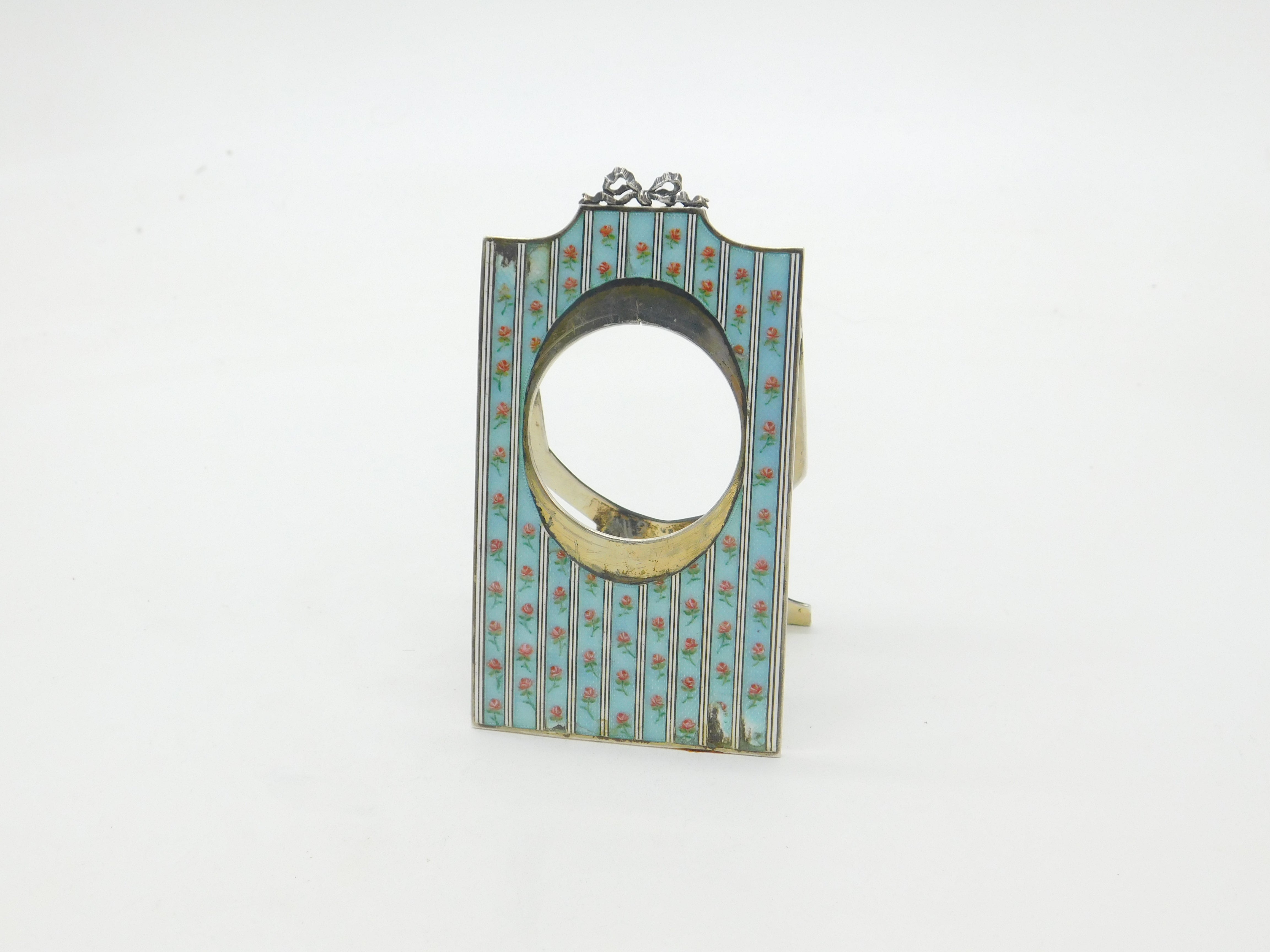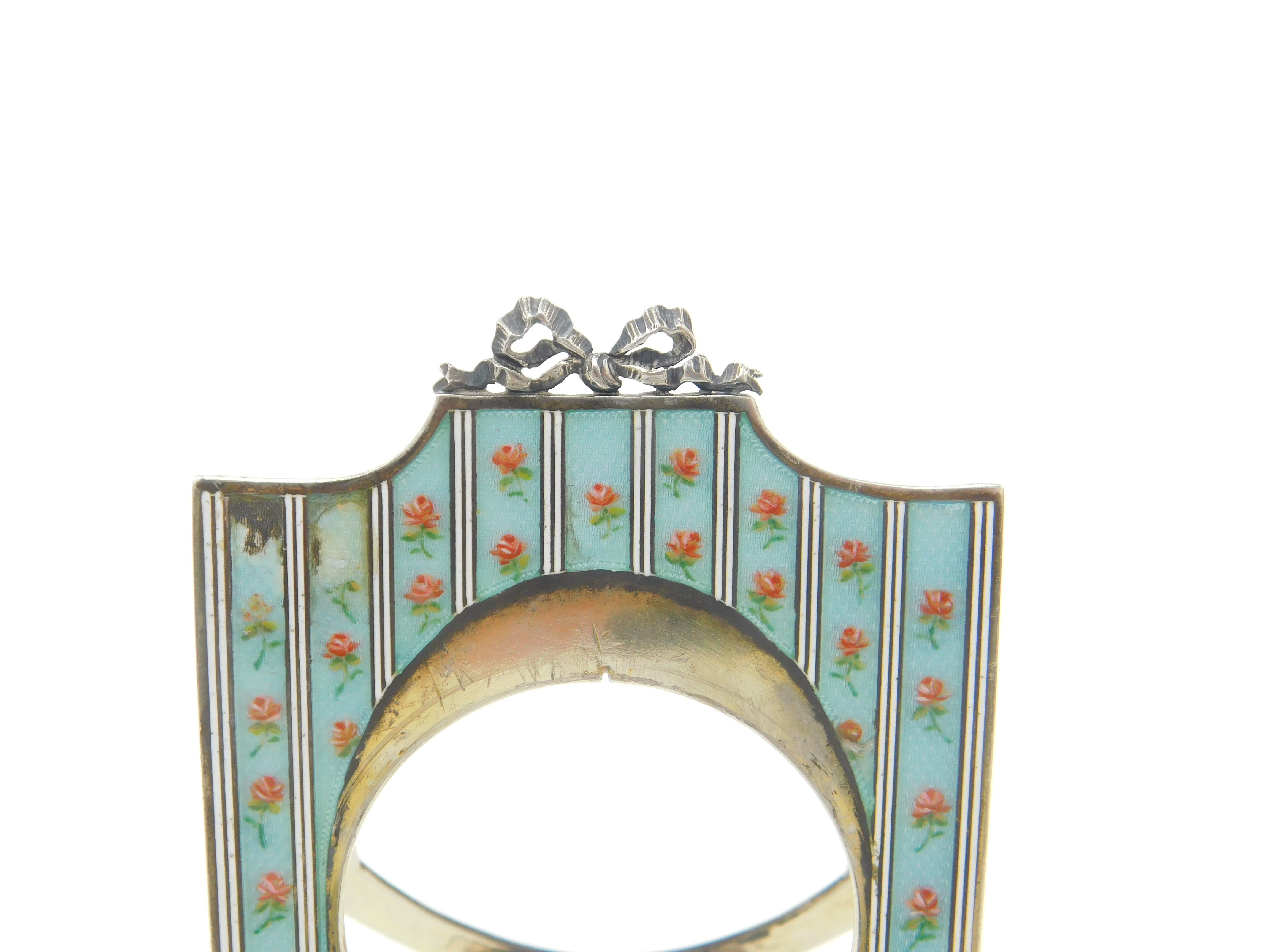 Swiss Sterling Silver Rose Flower Guilloche Enamel Watch Frame c1900 Antique