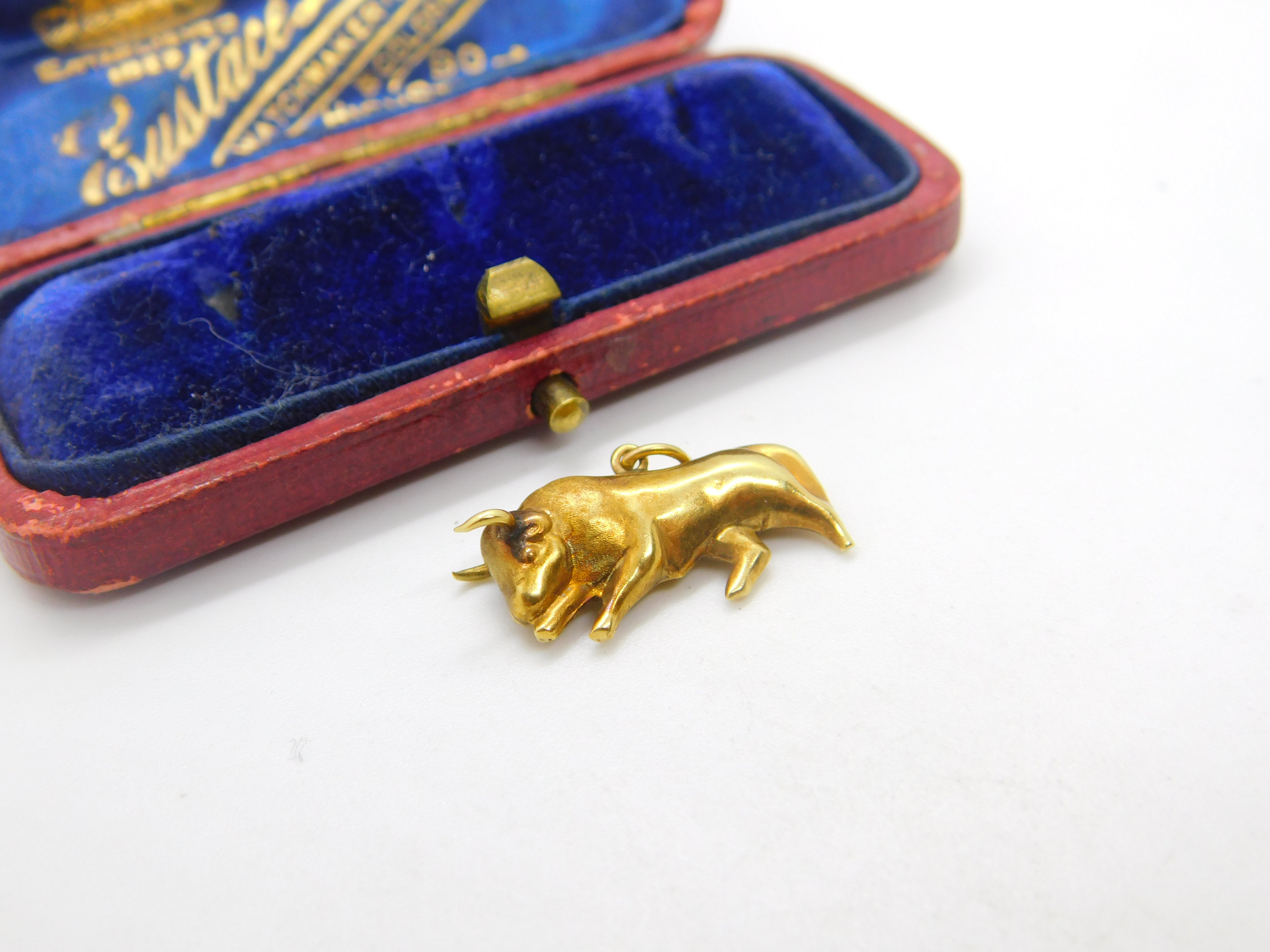 Taurus the Bull 9ct Yellow Gold Zodiac Charm Pendant Vintage c1970