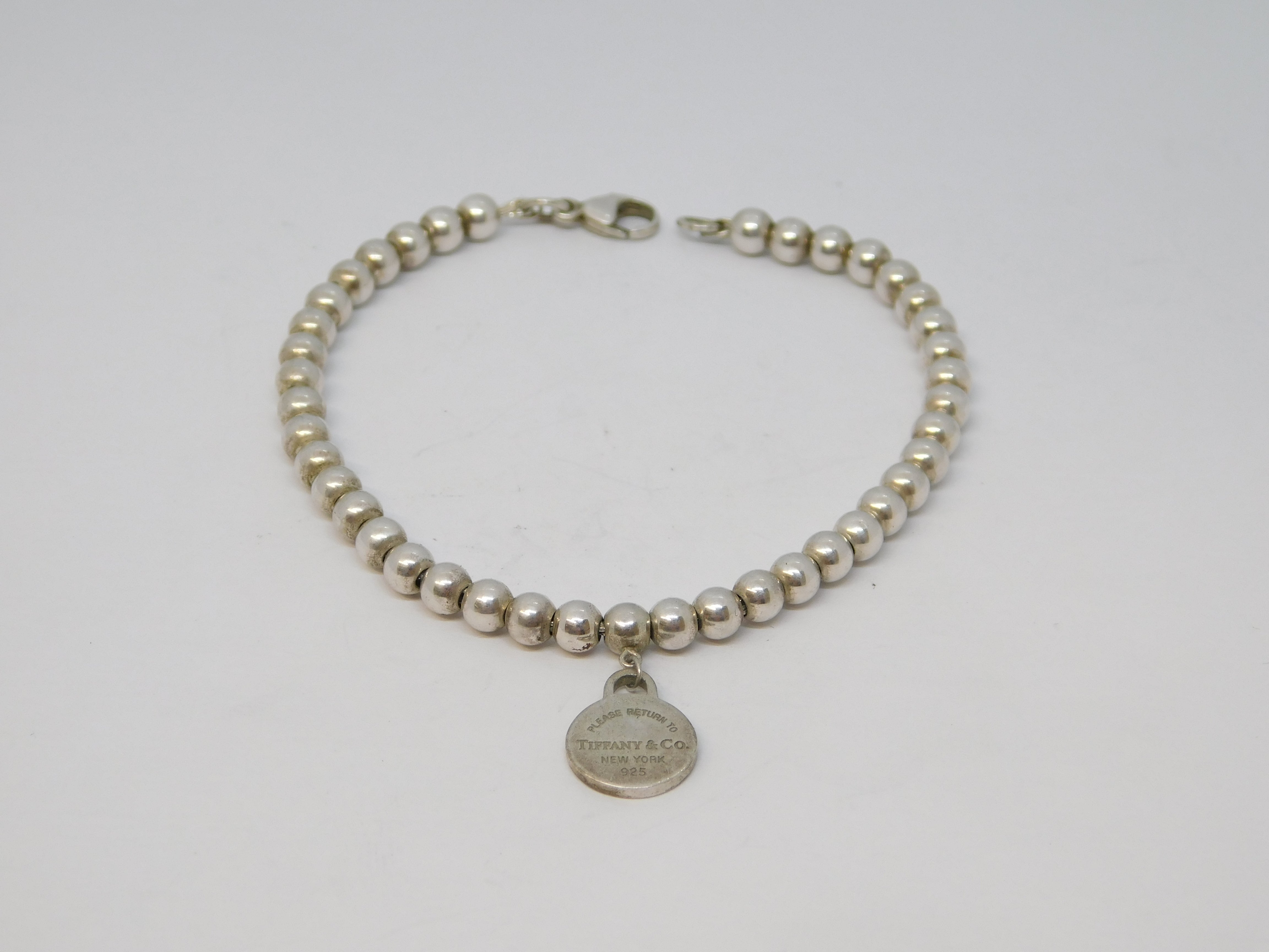 Tiffany & Co. Sterling Silver Beaded Bracelet with Tag Vintage c2000 16.5cm