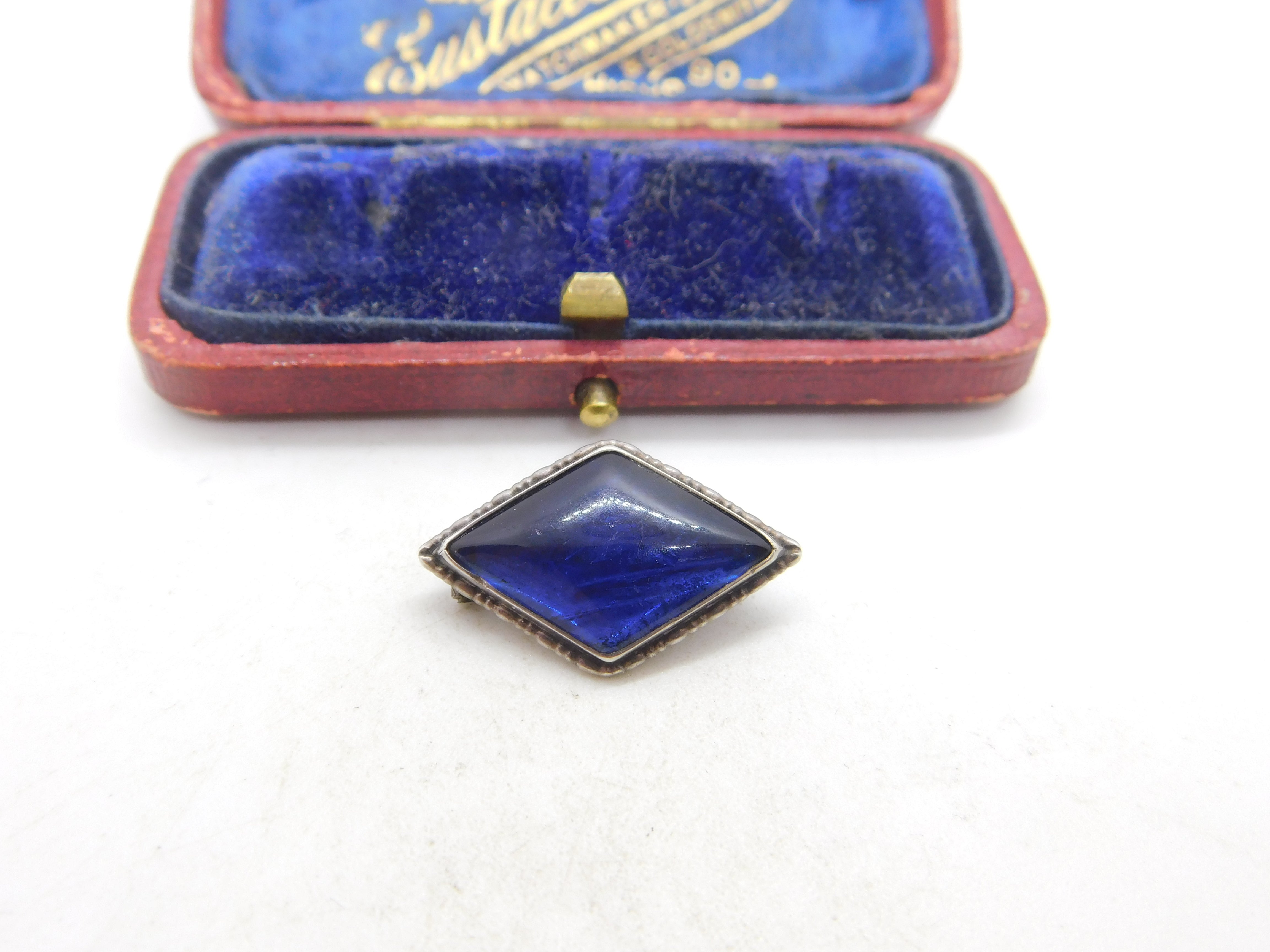 TLM Sterling Silver & Morpho Butterfly Wing Button Brooch Antique c1920 Art Deco