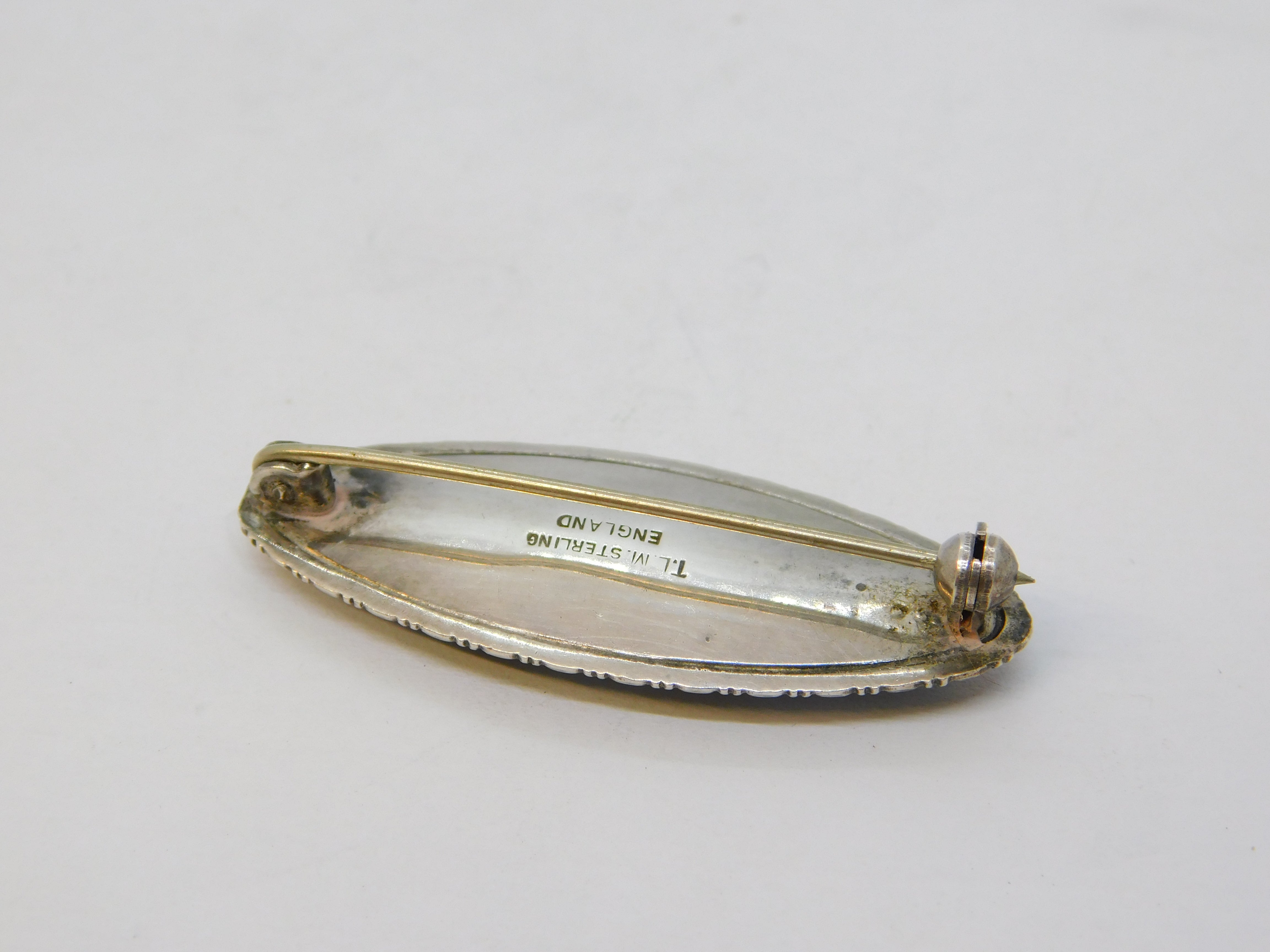 TLM Sterling Silver Morpho Butterfly Wing Palm Tree Brooch Antique c1920