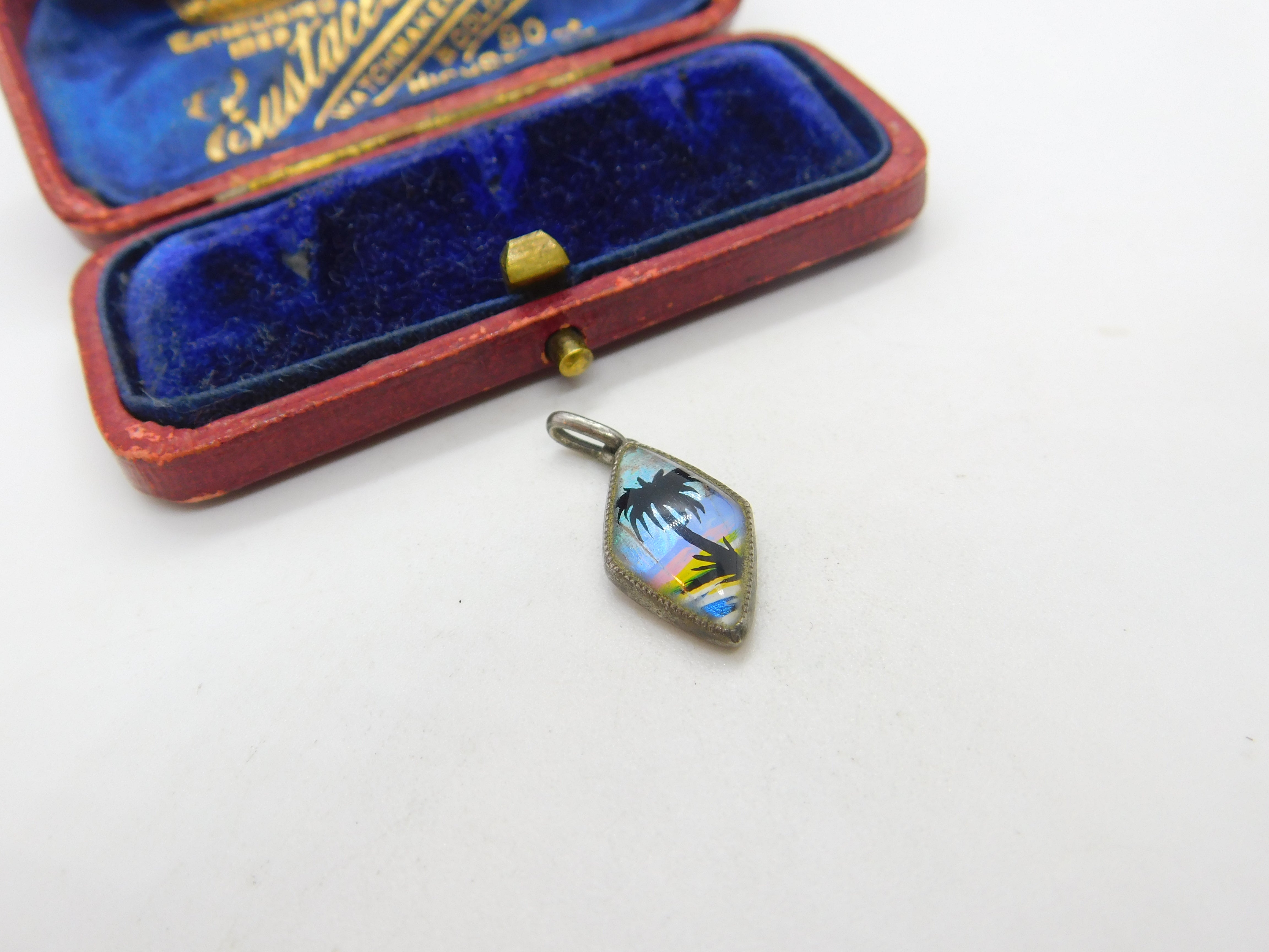 Details: A fantastic and wonderfully designed antique art deco sterling silver Morpho Butterfly wing drop pendant in the form of a tropical island hallmarked to the reverse by TLM c1920. This is a wonderful item that would make a perfect gift or addition to any collection. The BOX pictured is for PRESENTATION ONLY and is NOT included in the listings but used to frame the pictures unless specifically stated otherwise.