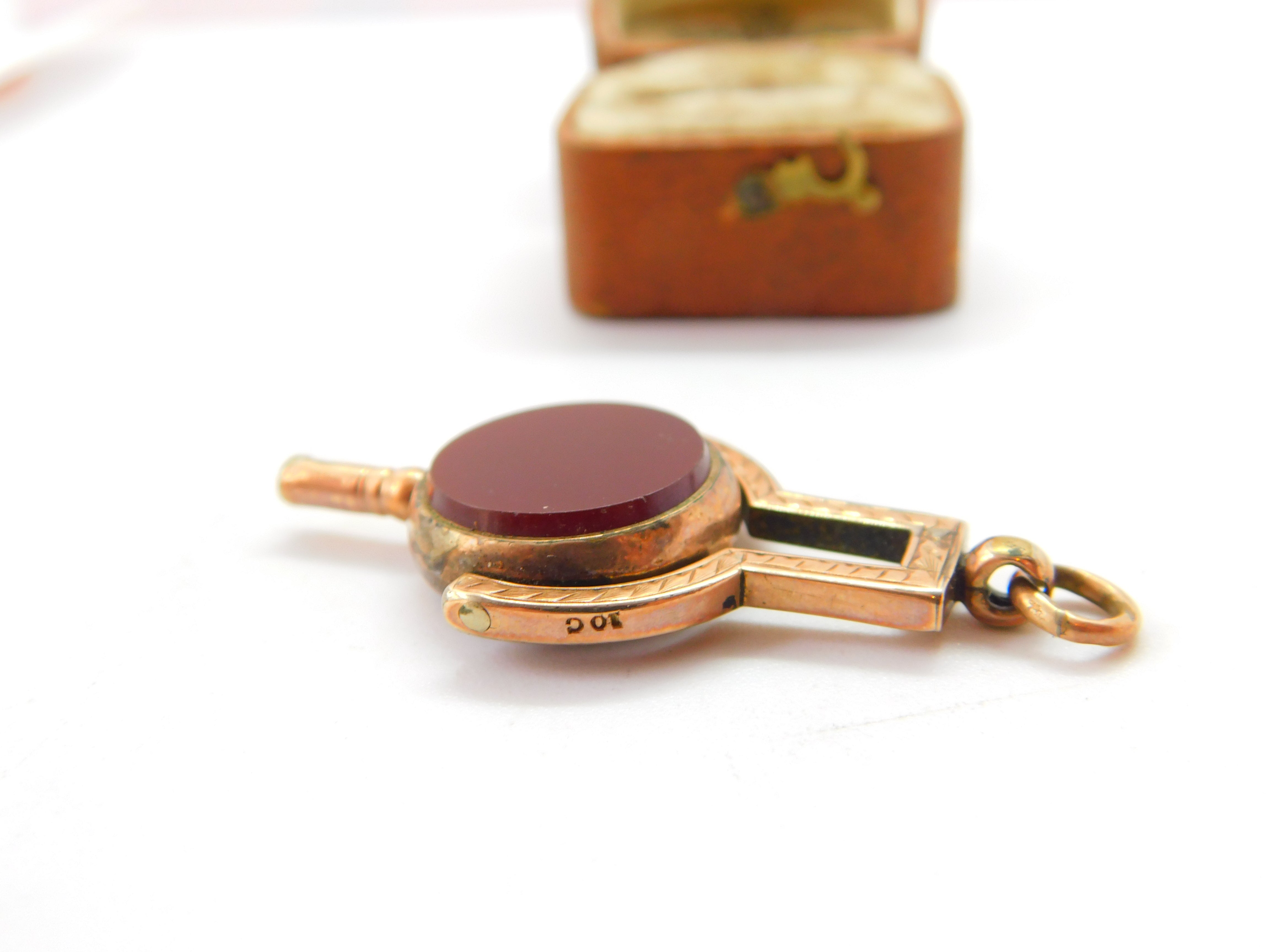 Details: A fantastic and wonderfully designed antique Victorian 10ct gold watch key spinner fob set with bloodstone and carnelian hallmarked '10ct' to the edge c1900. This is a wonderful item that would make a perfect gift or addition to any collection. The BOX pictured is for PRESENTATION ONLY and is NOT included in the listings but used to frame the pictures unless specifically stated otherwise.