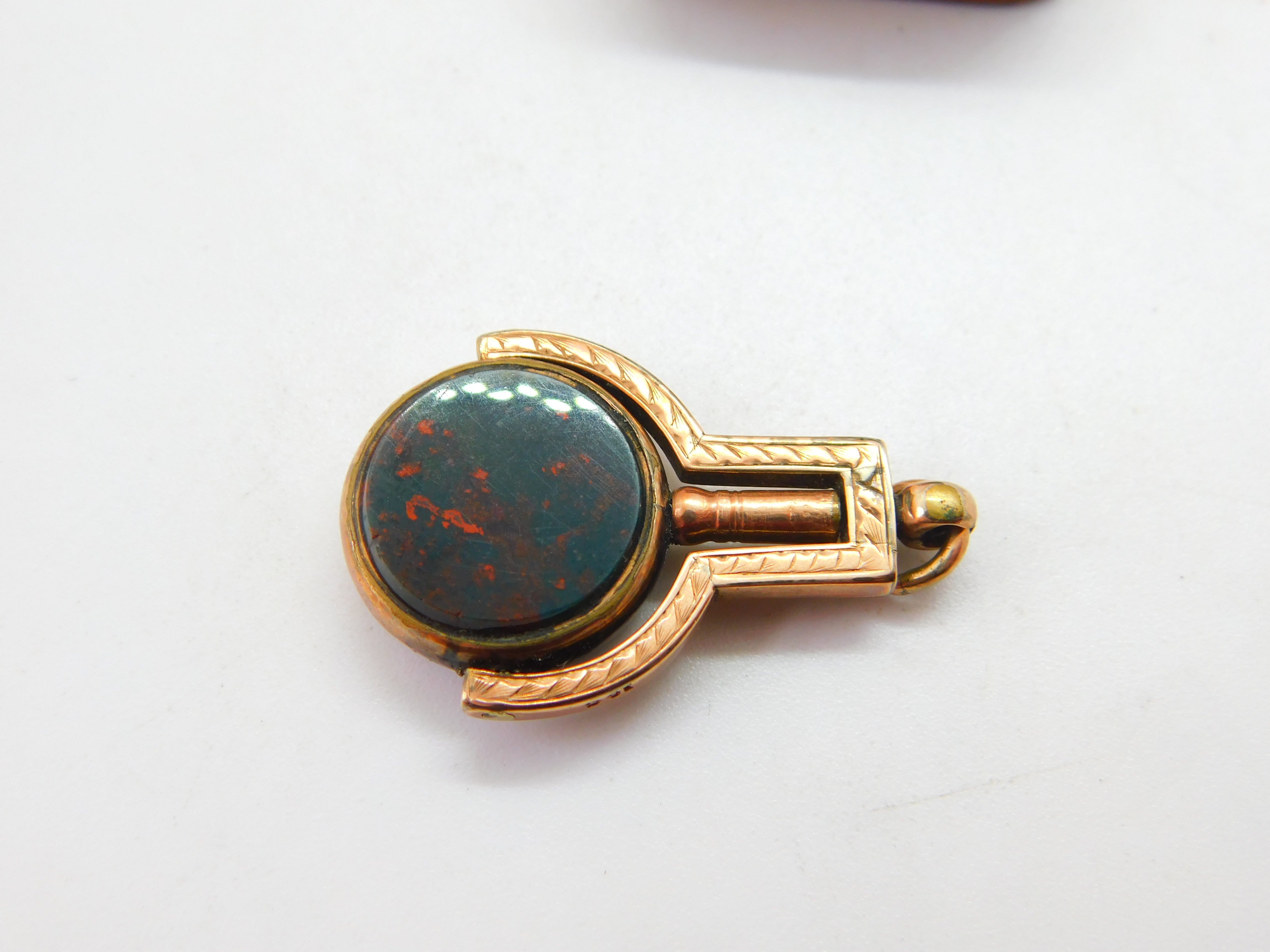 Victorian 10ct Gold, Bloodstone & Carnelian Watch Key Spinner Fob Antique c1900