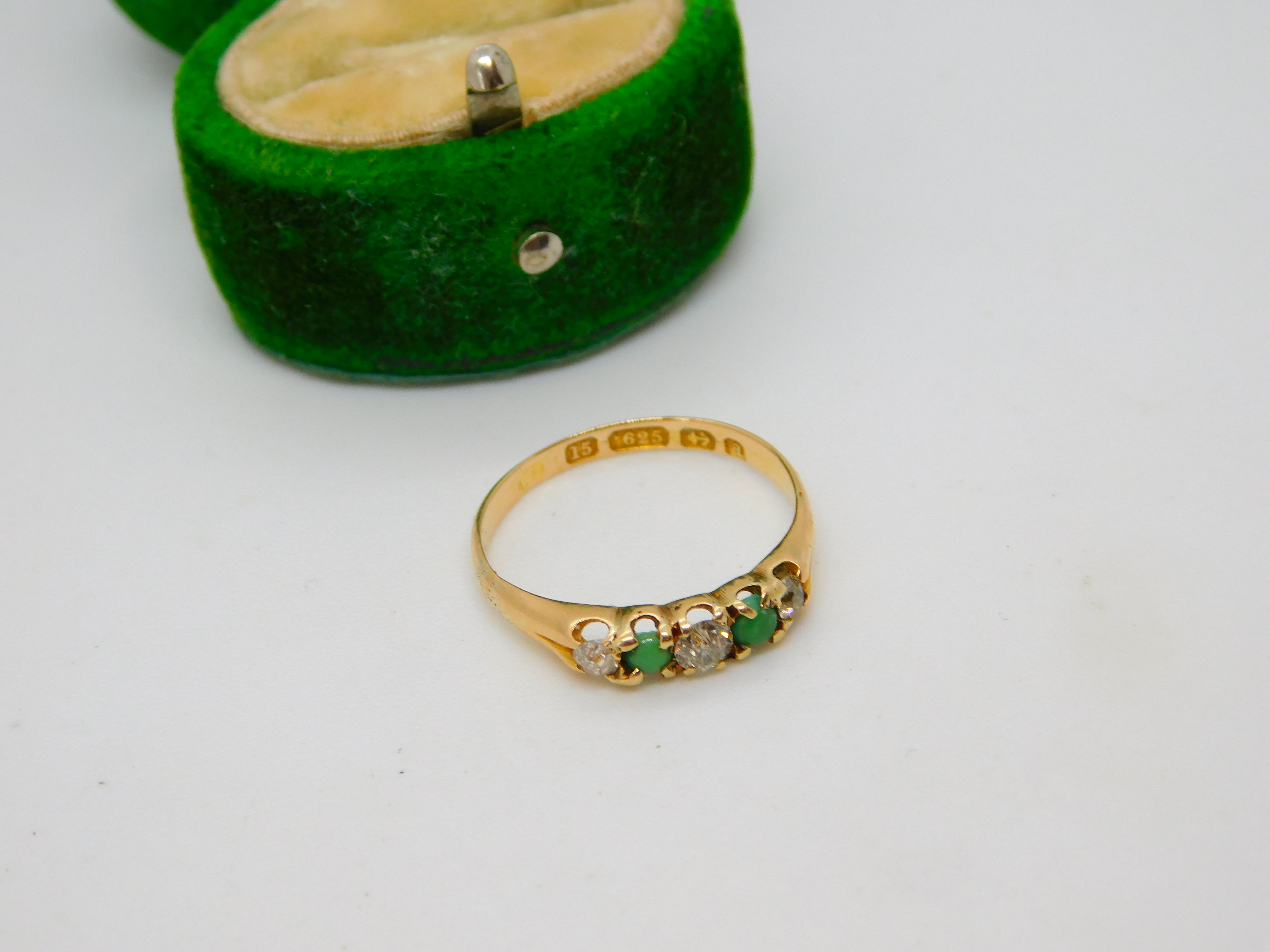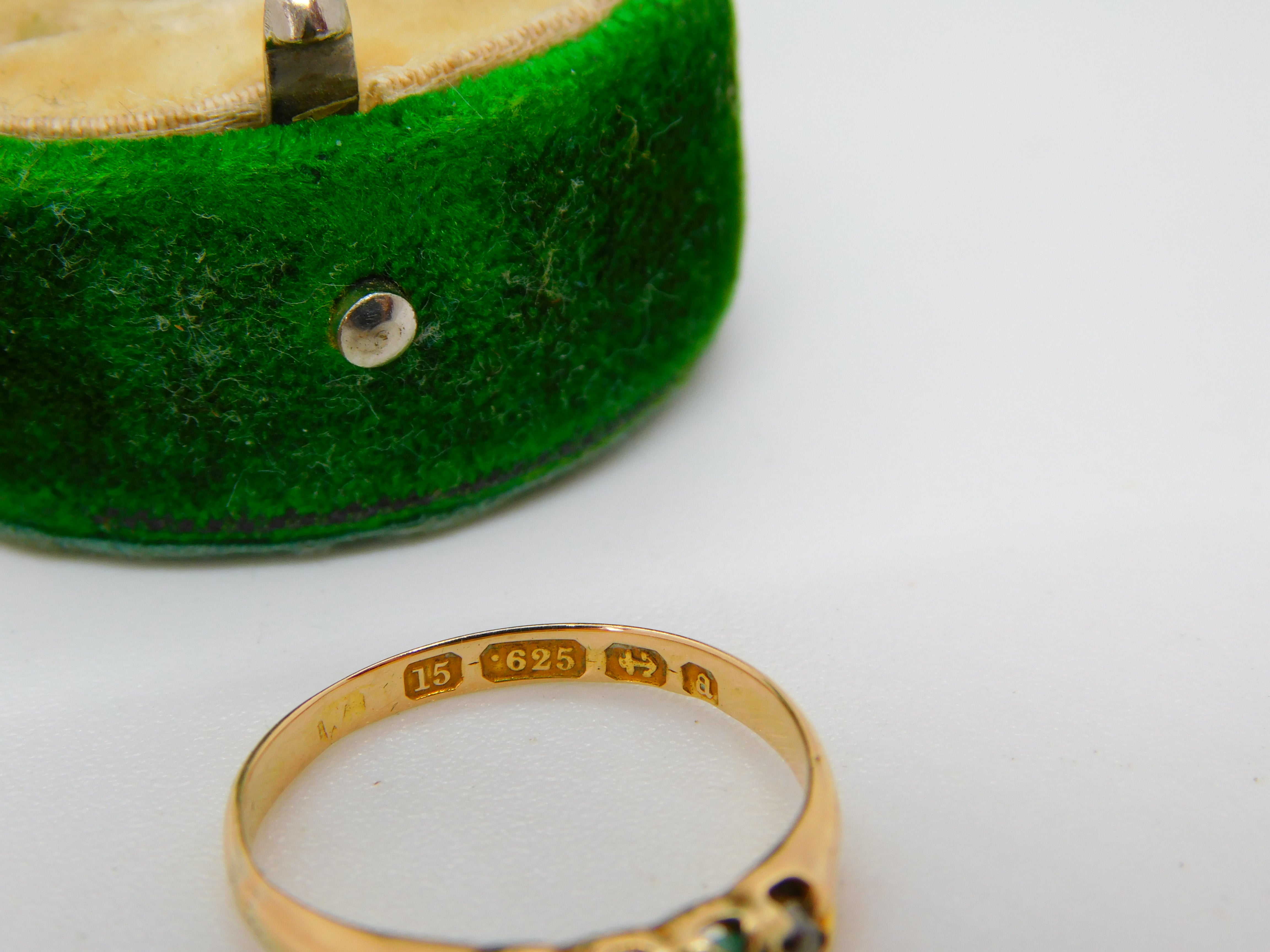 Victorian 15ct Gold, 0.25ct Diamond & Turquoise Boat Ring Antique 1876 Birmingham