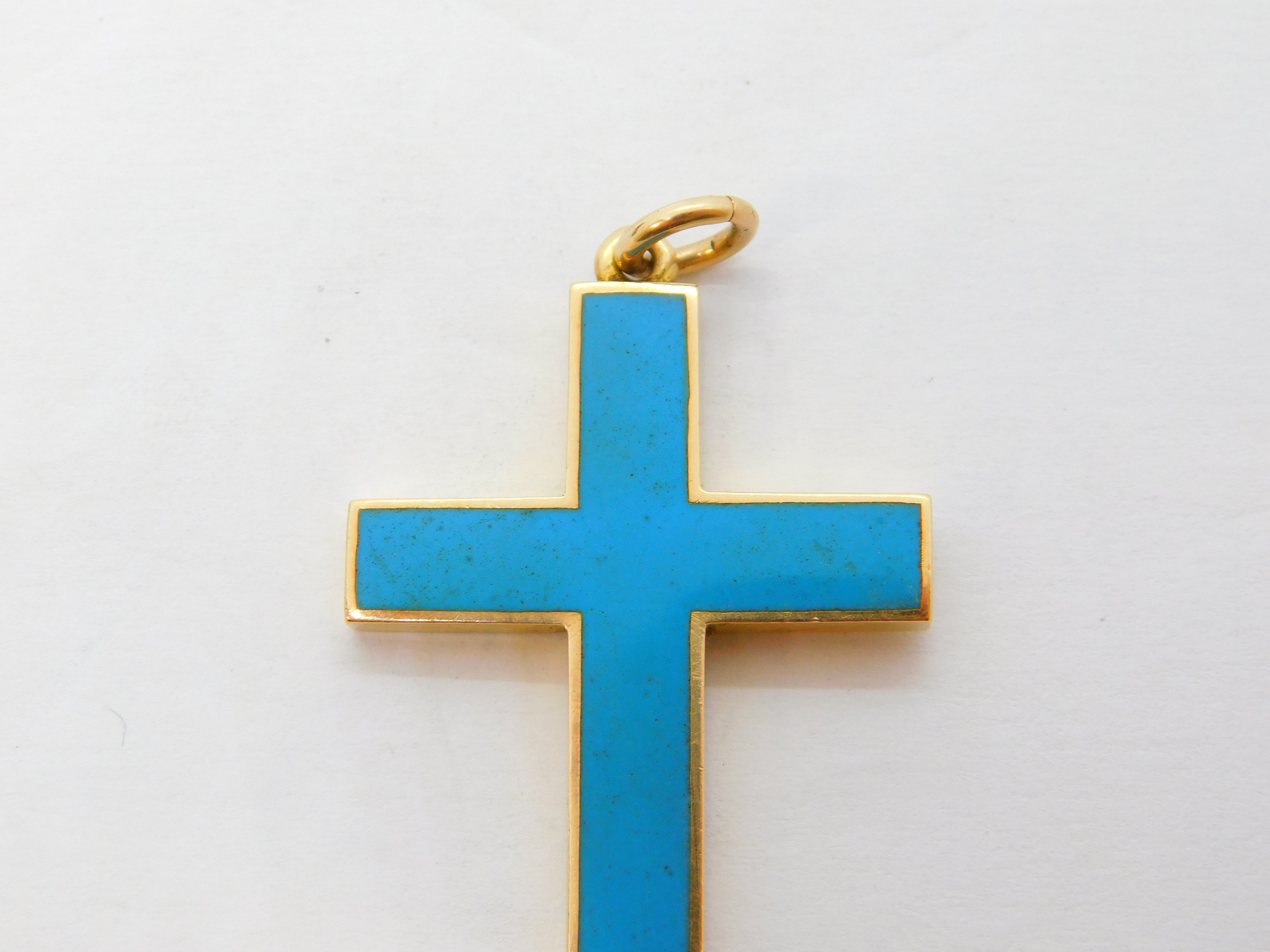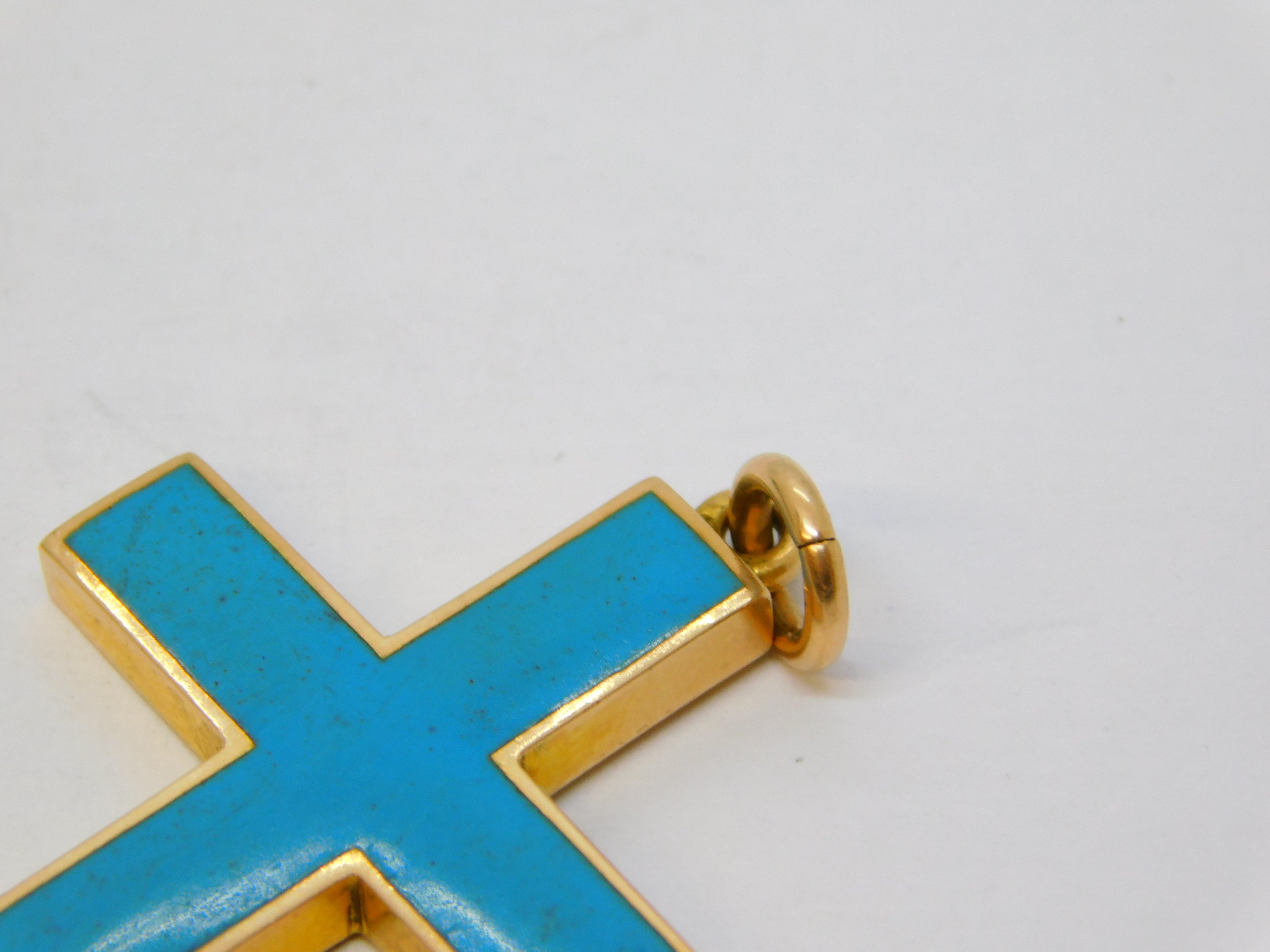 Victorian 15ct Gold Blue Enamel Large Cross Pendant Antique 1897 Chester