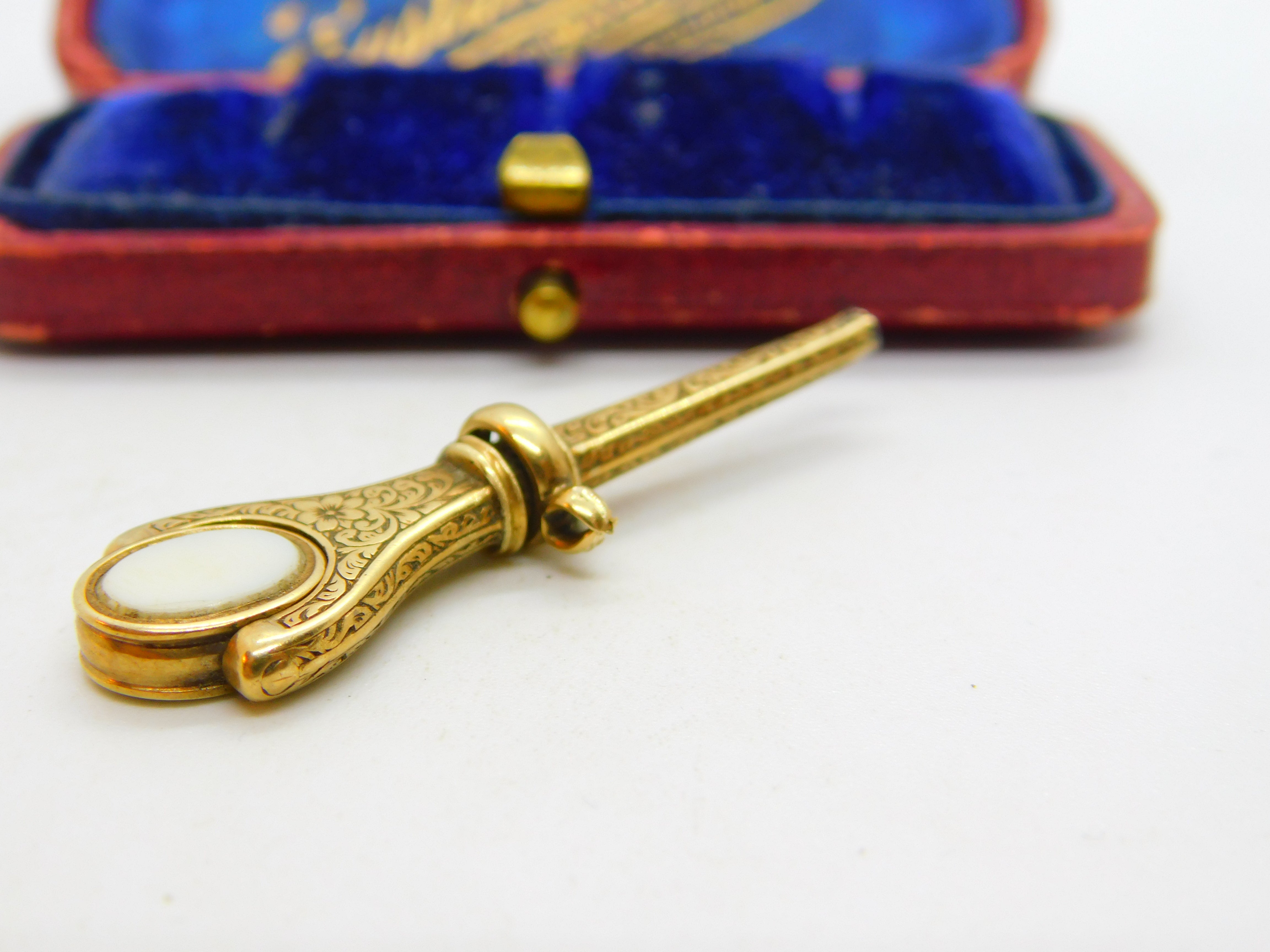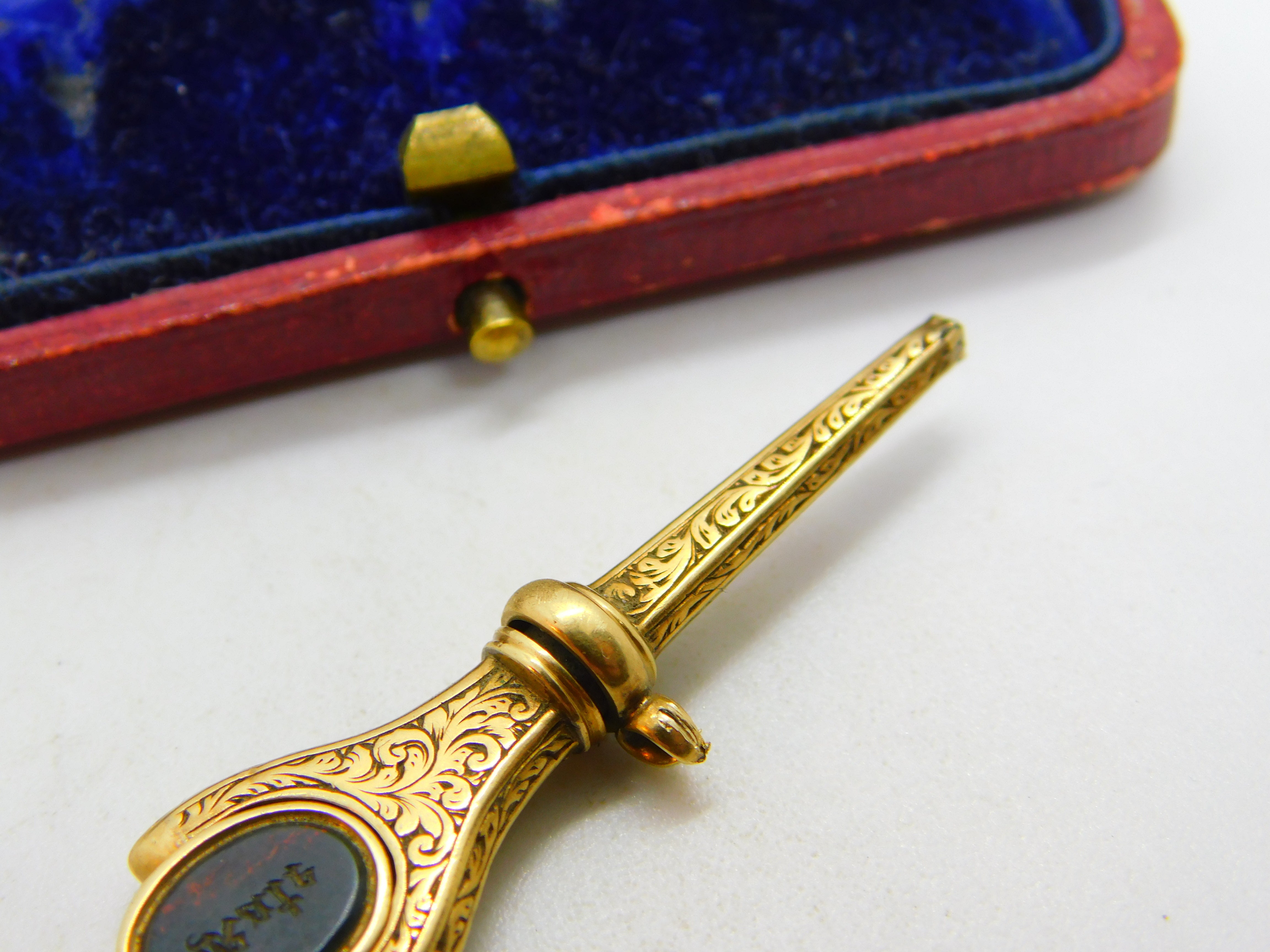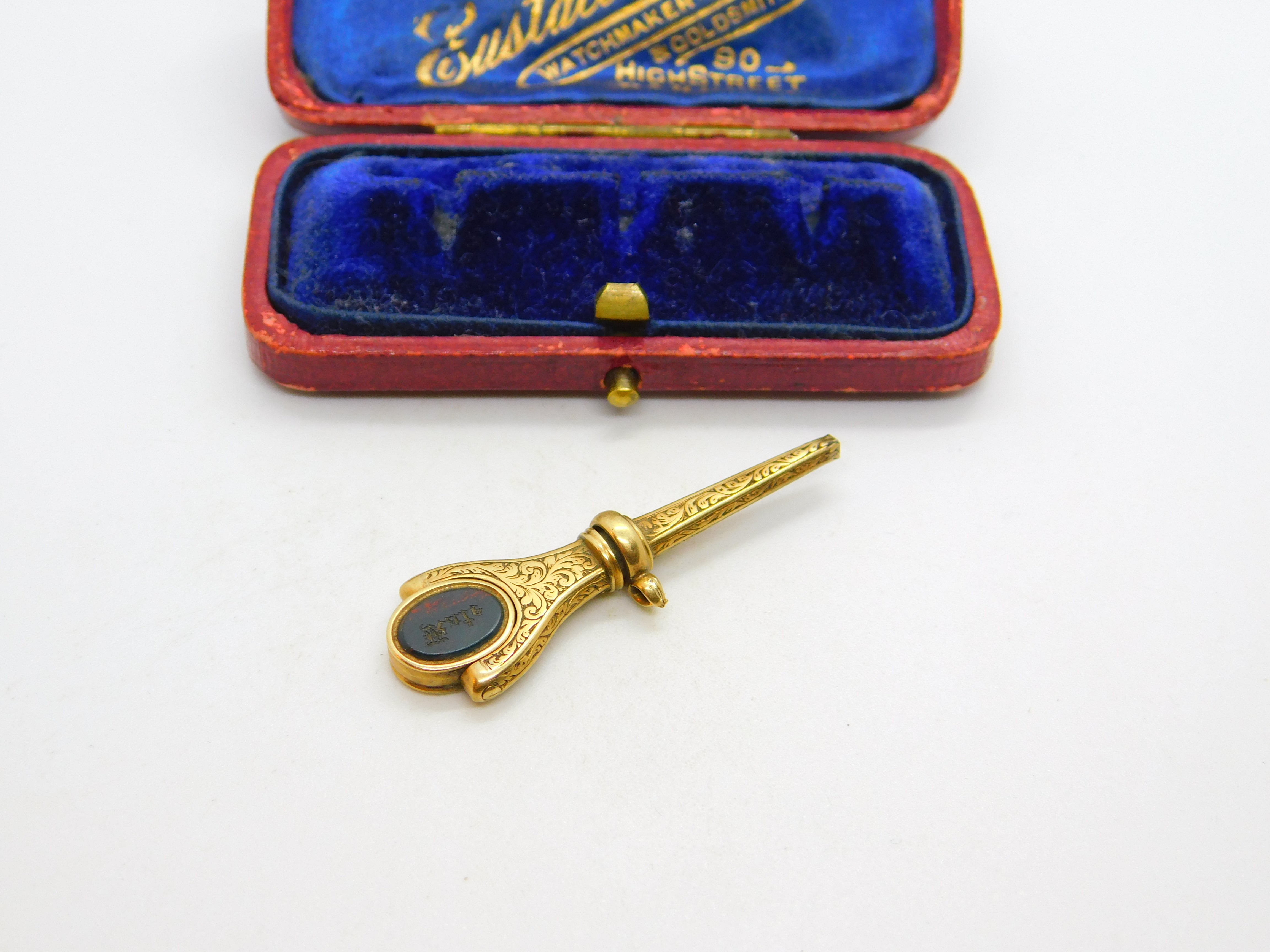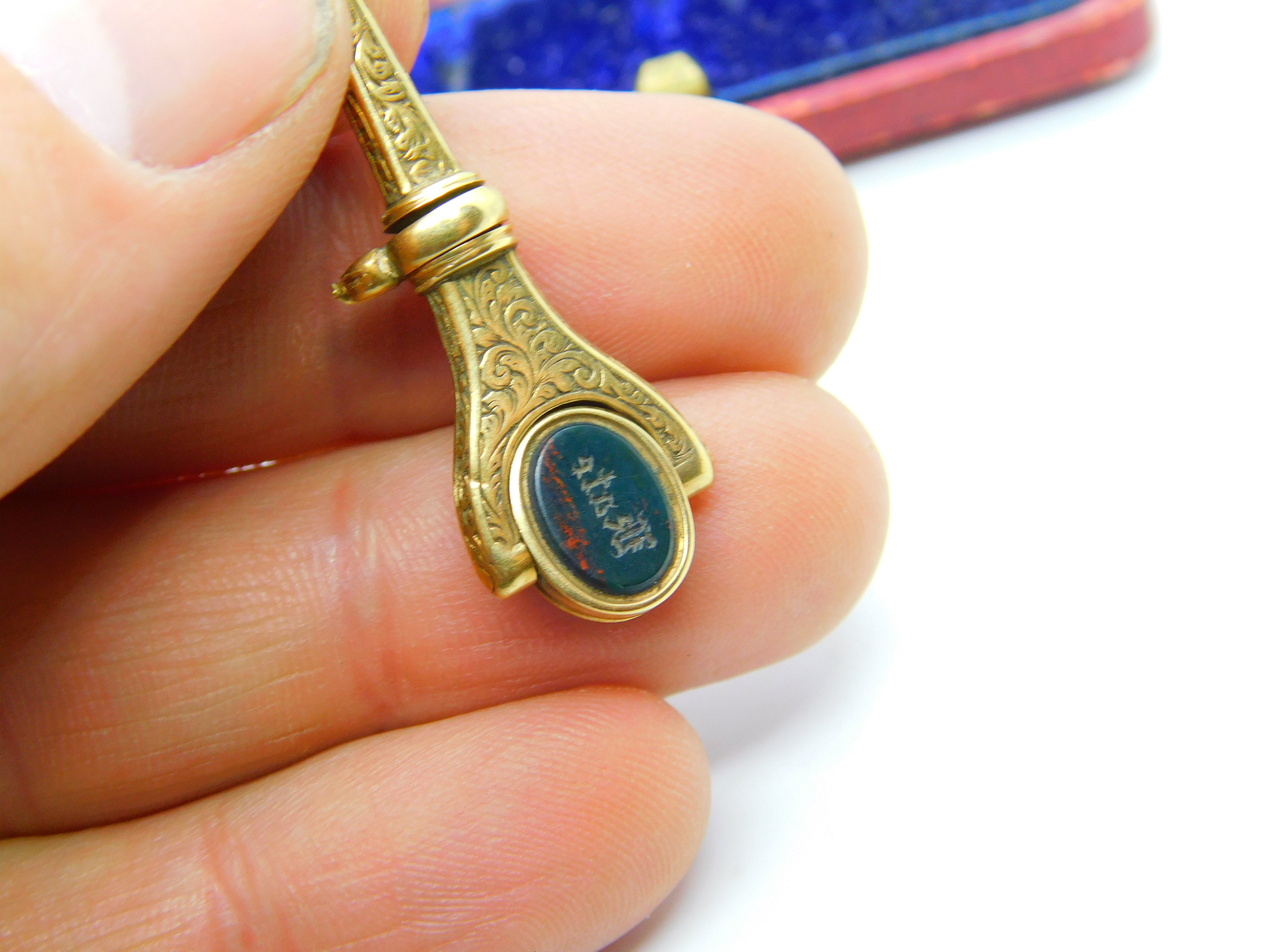 Details: A fantastic and wonderfully designed antique Victorian 15ct yellow gold spinning watch key fob set with carved bloodstone & sardonyx c1860. The bloodstone is carved with a name intaglio 'Kate' - the gold has been XRF tested. This is a wonderful item that would make a perfect gift or addition to any collection. The BOX pictured is for PRESENTATION ONLY and is NOT included in the listings but used to frame the pictures unless specifically stated otherwise.