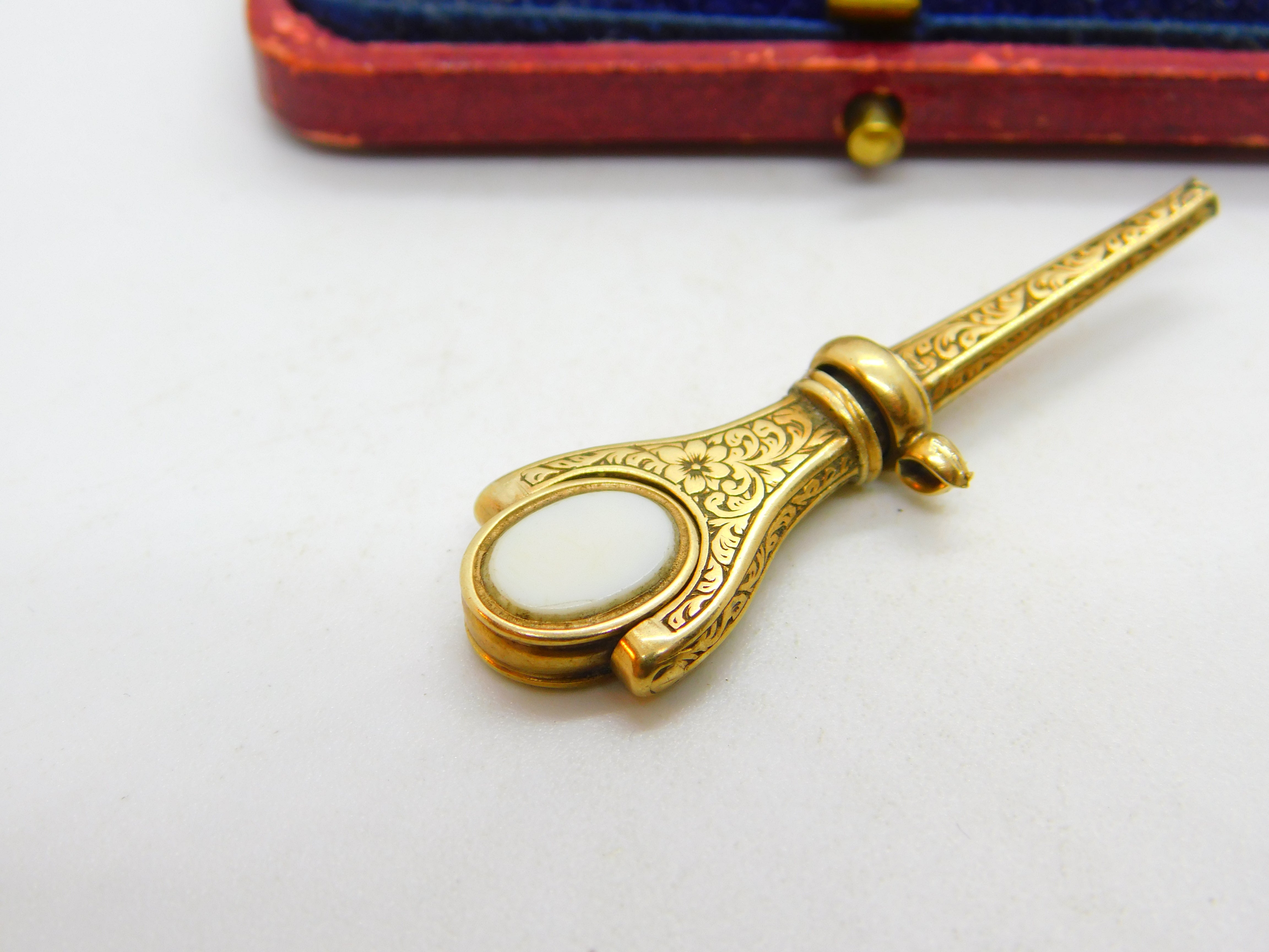 Victorian 15ct Gold, Carved Bloodstone & Sardonyx 'Kate' Watch Key c1860