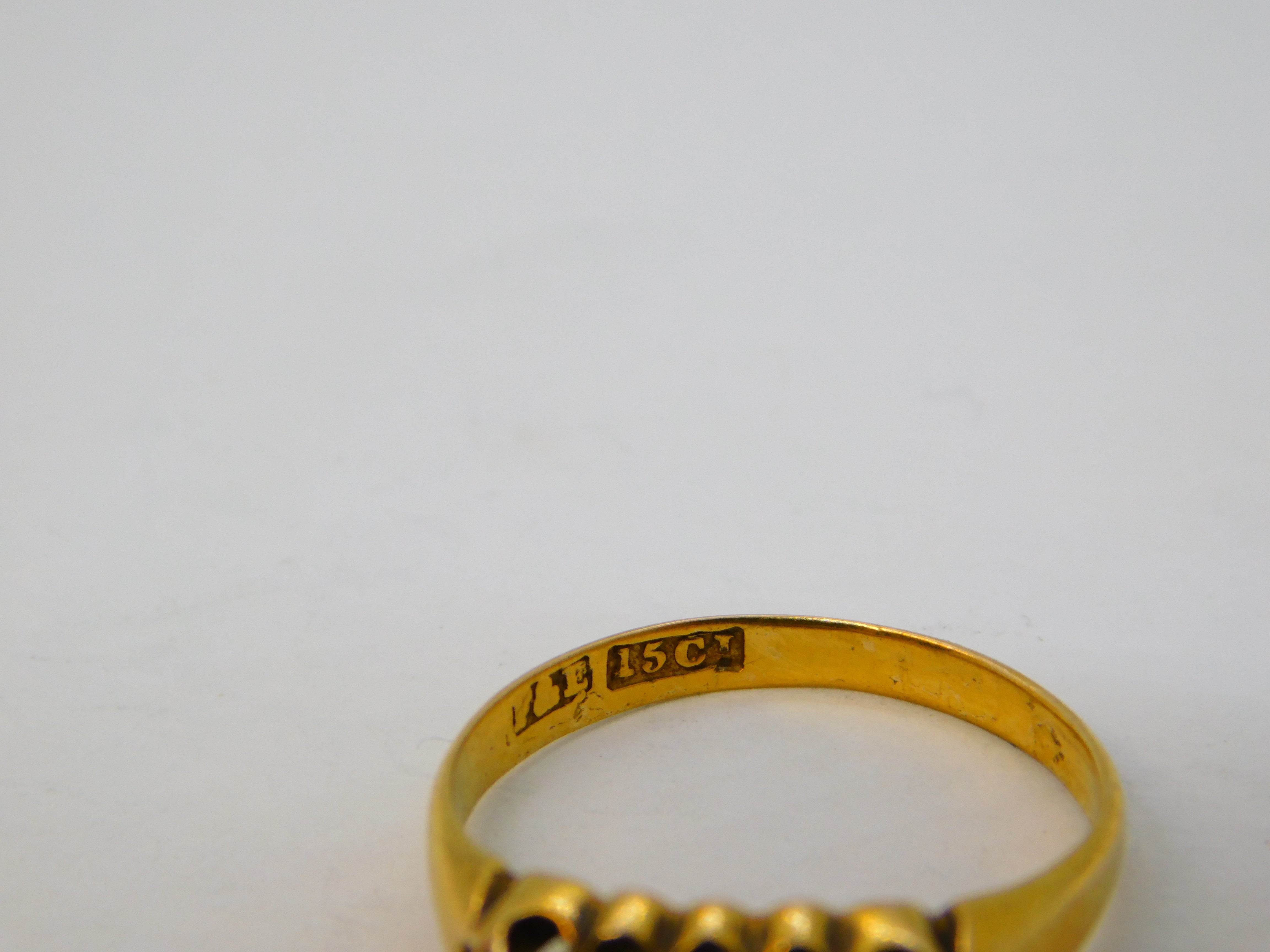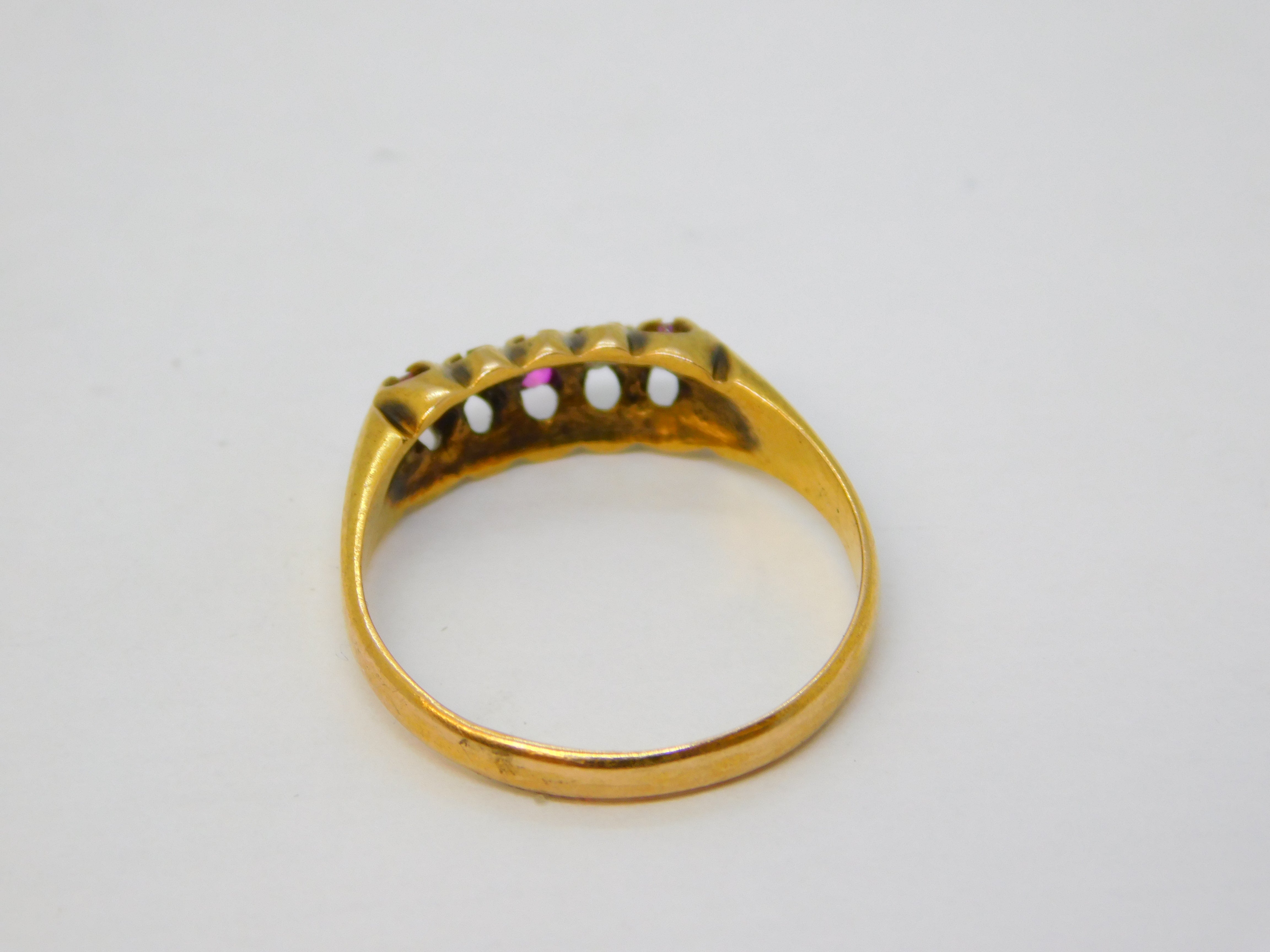 Victorian 15ct Gold, Diamond, Ruby Graduating Boat Ring Antique c1890