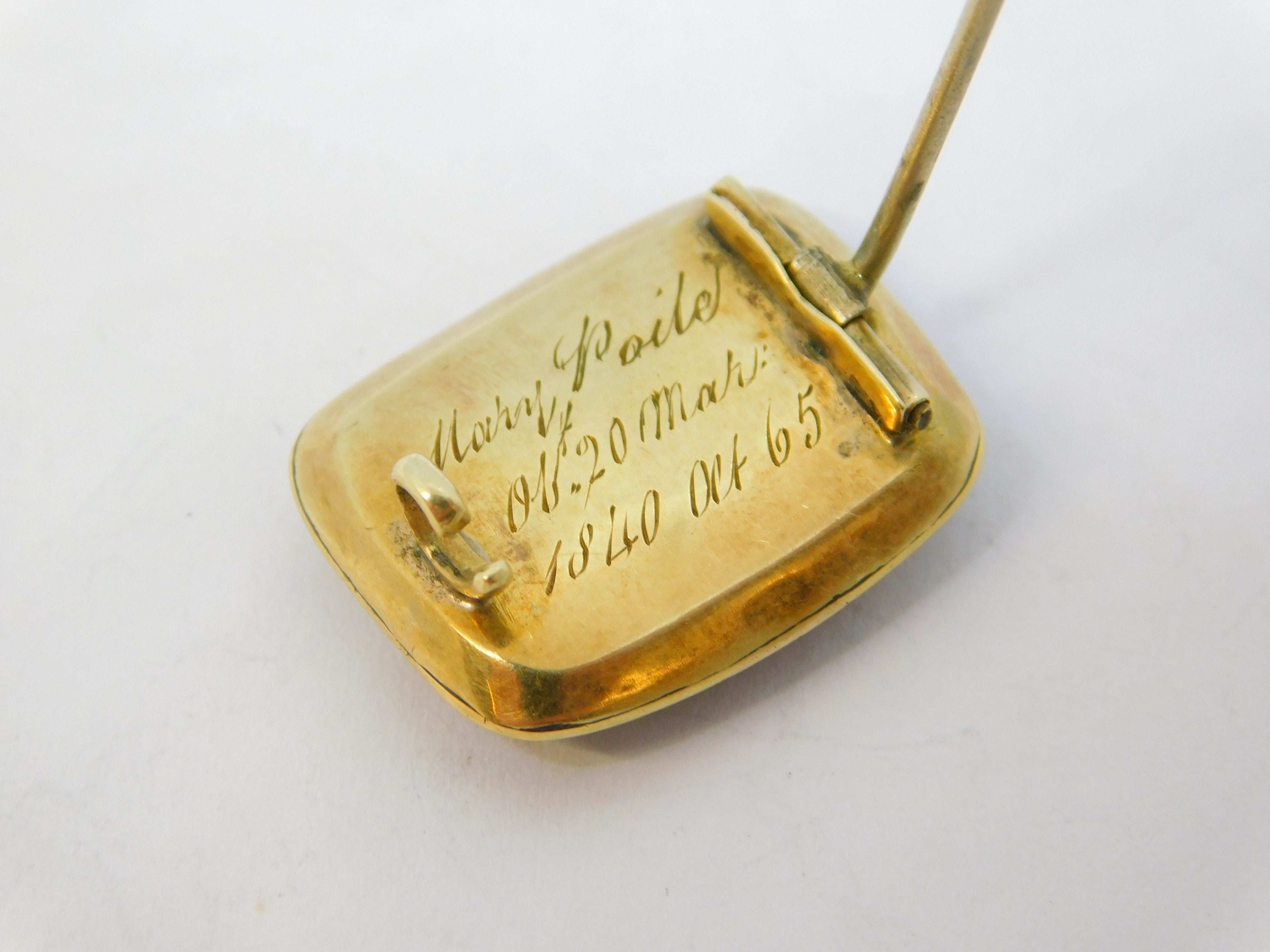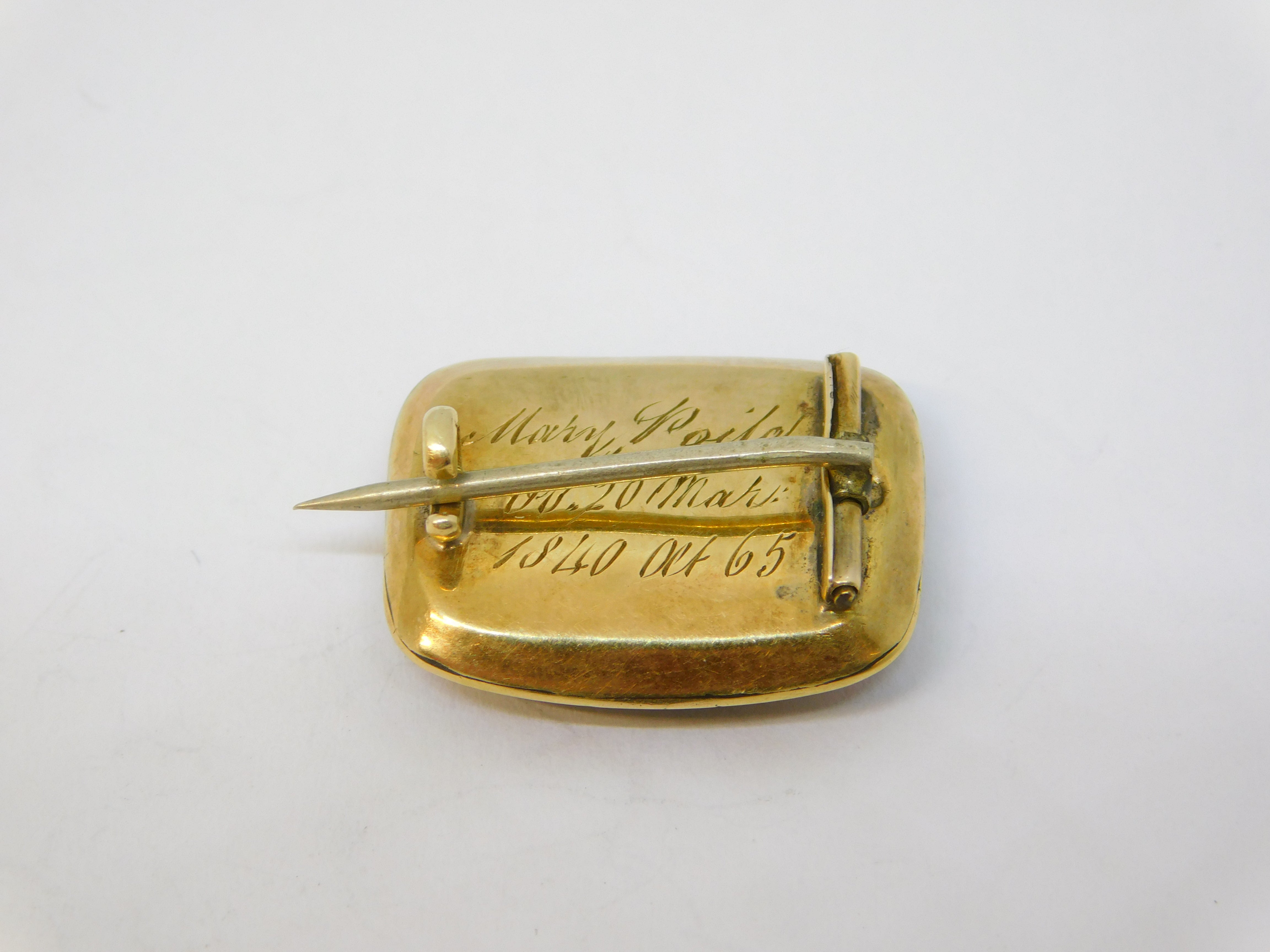 Victorian 15ct Gold, Enamel, Pearl Mourning Brooch 'Mary Poile, 1840' Antique