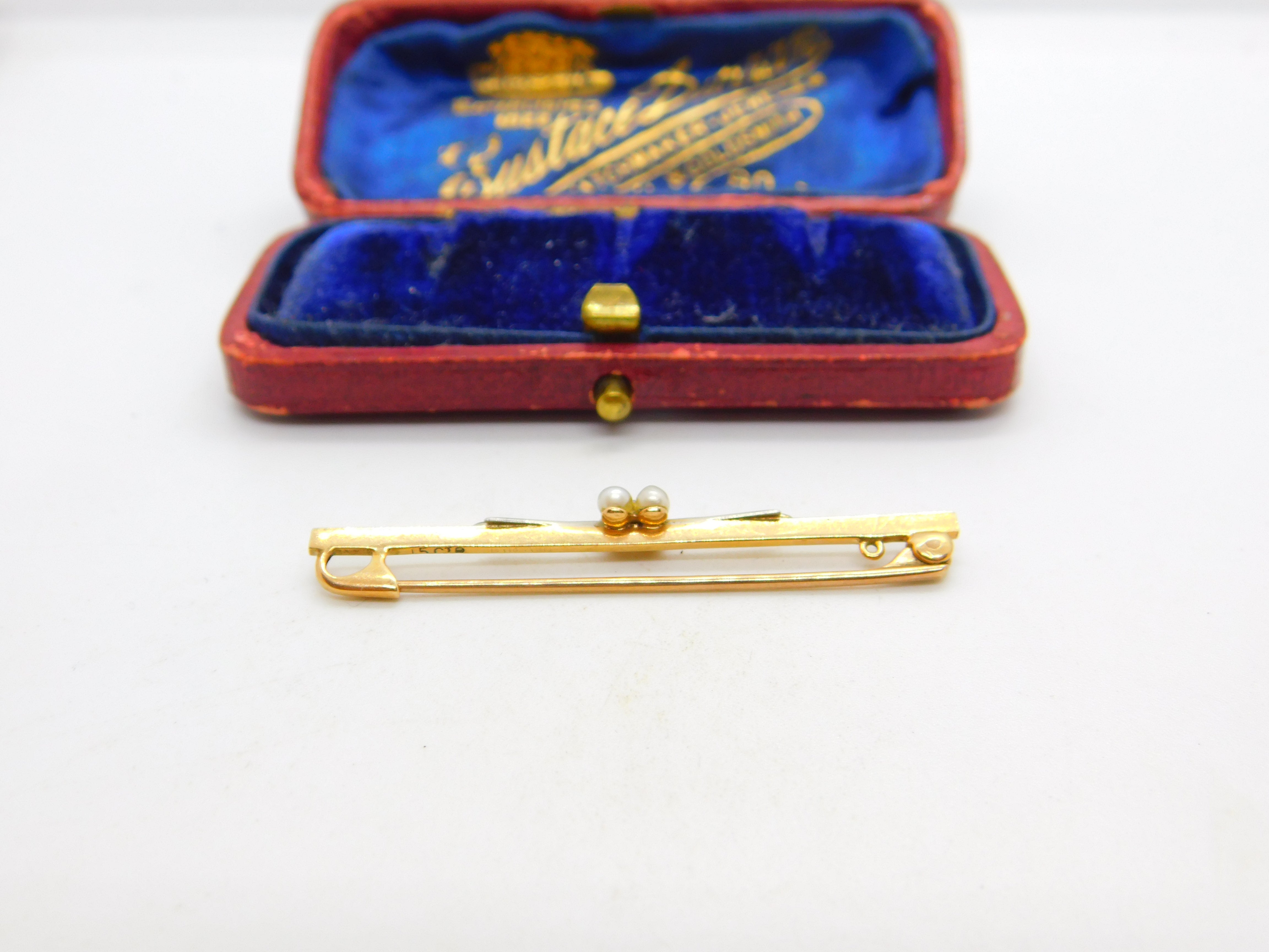 Details: A fantastic and wonderfully designed antique Victorian 15ct yellow gold bar brooch set with floral seed pearls adorned with platinum to the front c1890. Hallmarked to the reverse 15ct. This is a wonderful item that would make a perfect gift or addition to any collection. The BOX pictured is for PRESENTATION ONLY and is NOT included in the listings but used to frame the pictures unless specifically stated otherwise.
