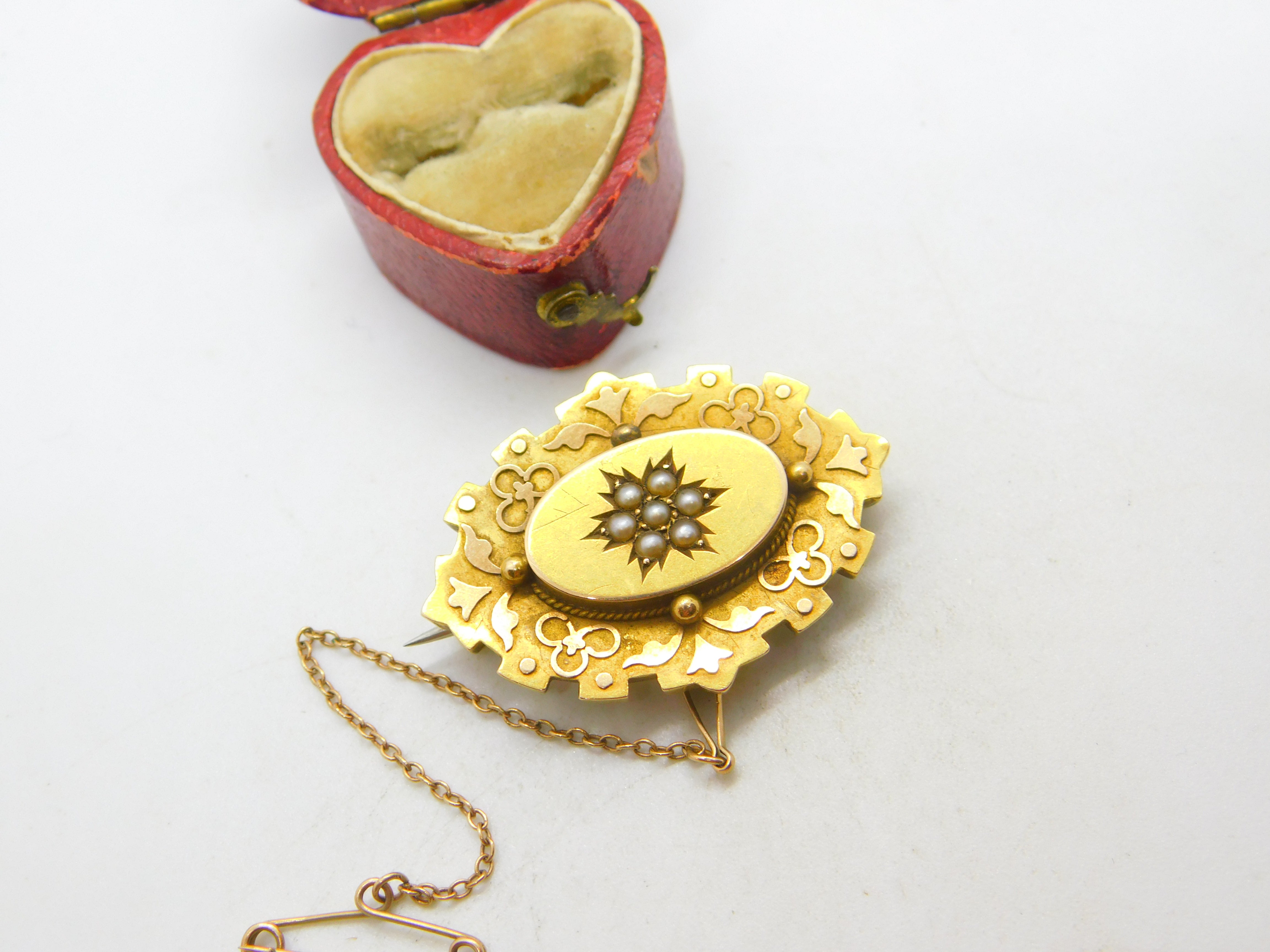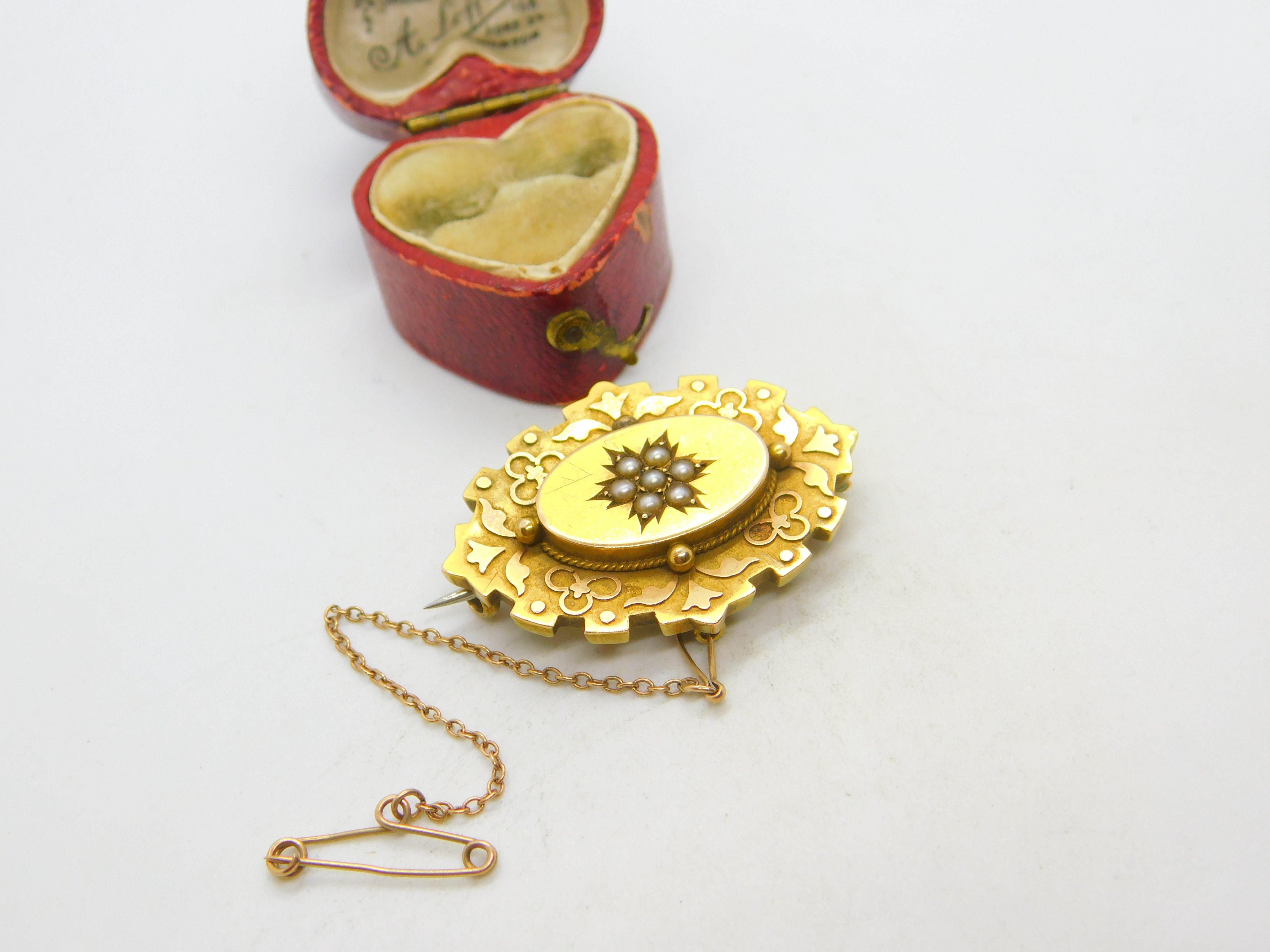 Victorian 15ct Gold & Seed Pearl Mourning Brooch 1864 Birmingham Antique