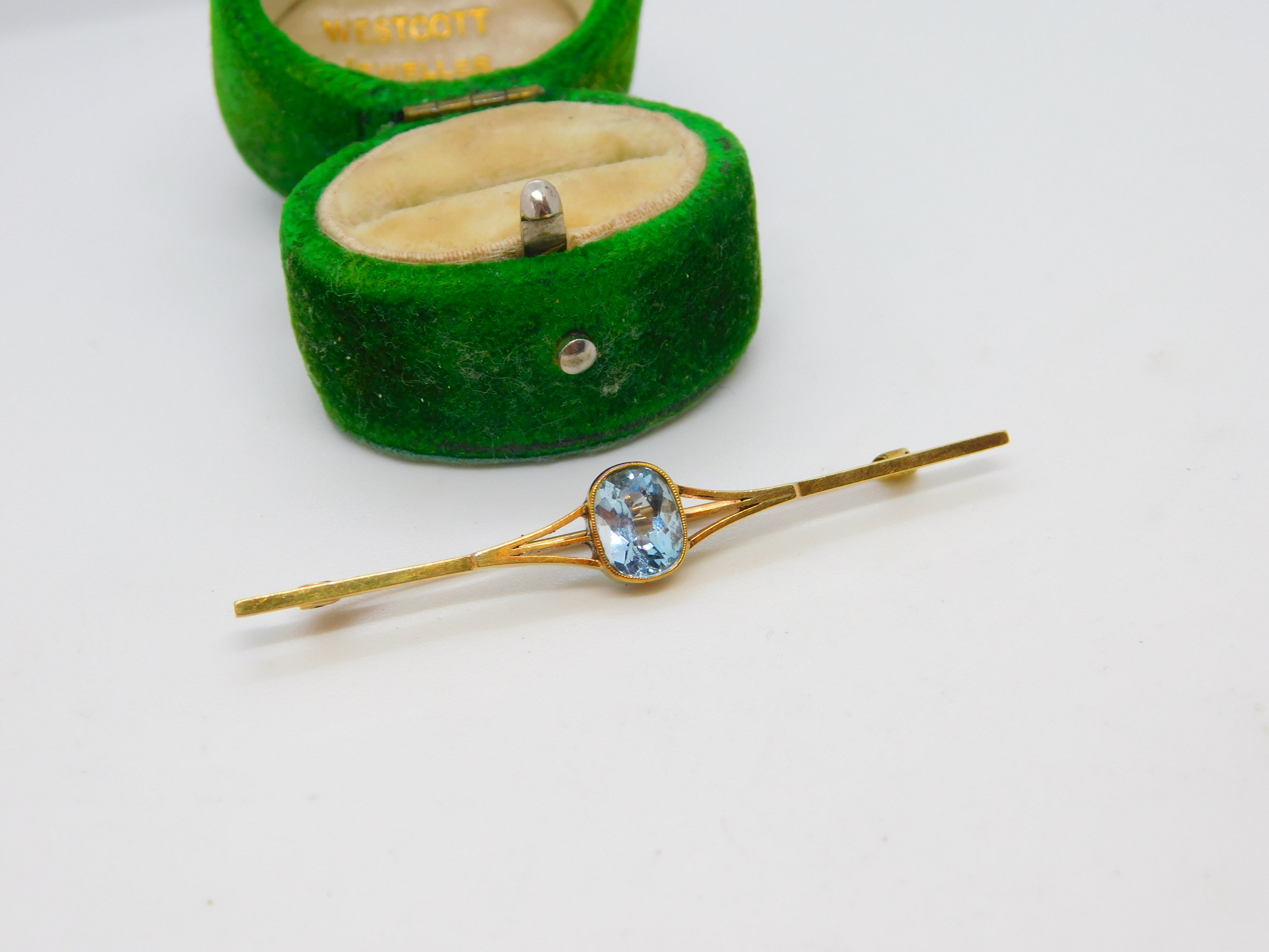 Victorian 15ct Yellow Gold & 1ct Aquamarine Bar Brooch Antique c1890