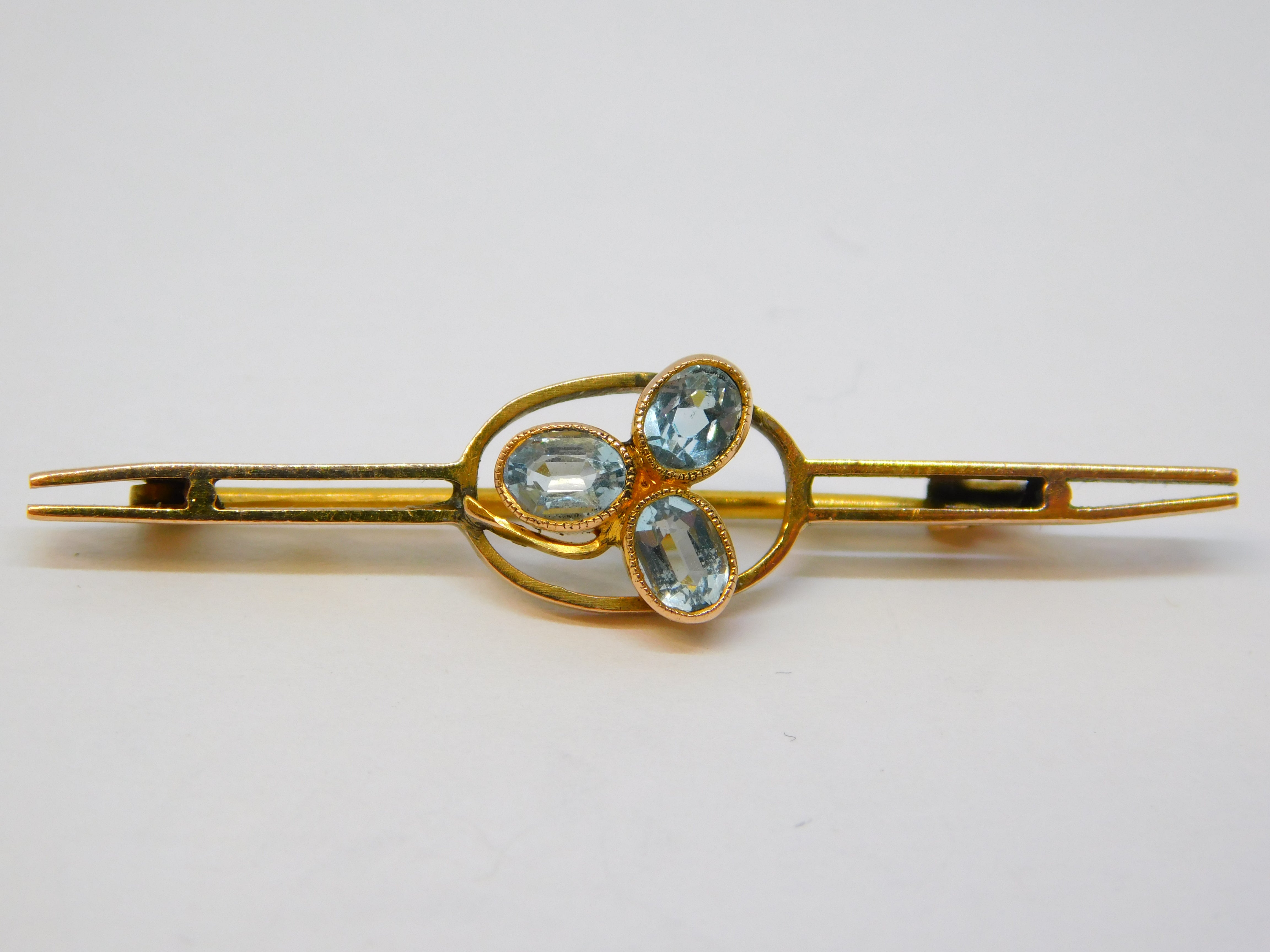 Details: A fantastic and wonderfully designed antique Victorian 15ct yellow gold & blue aquamarine set shamrock floral brooch pin c1890, the gold has been XRF tested as it is unmarked, the stones have been tested. This is a wonderful item that would make a perfect gift or addition to any collection.