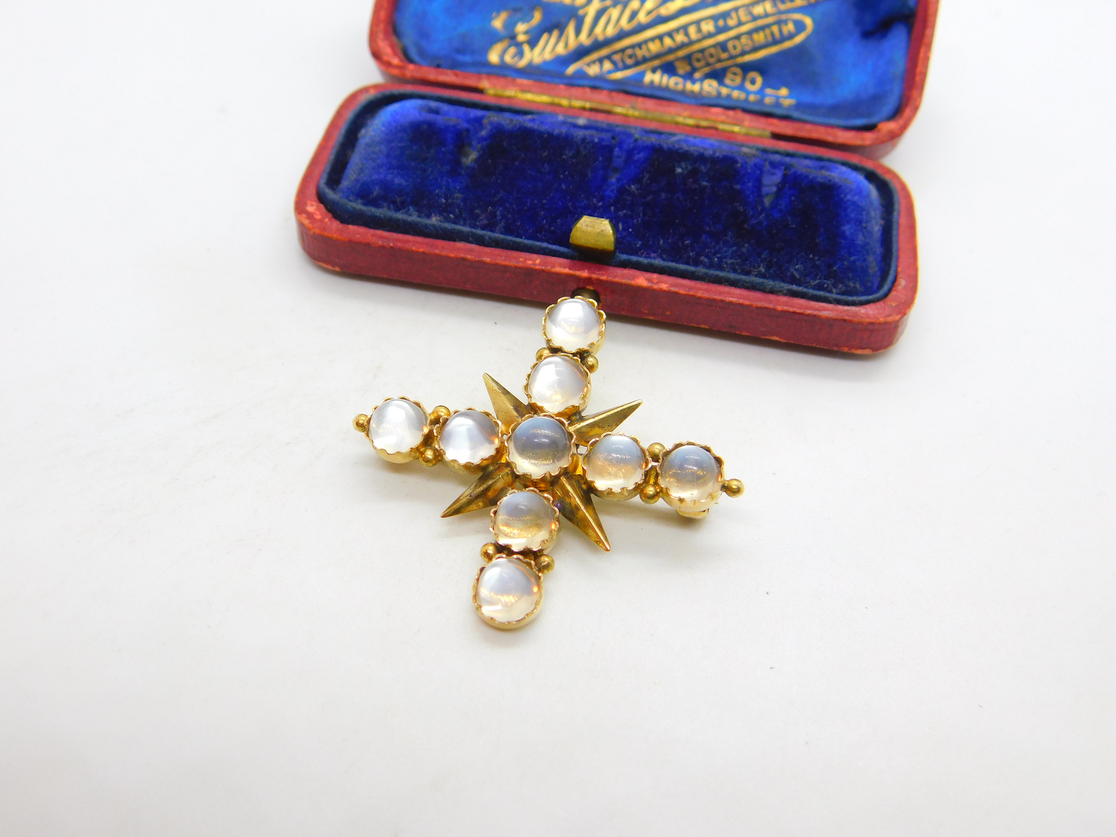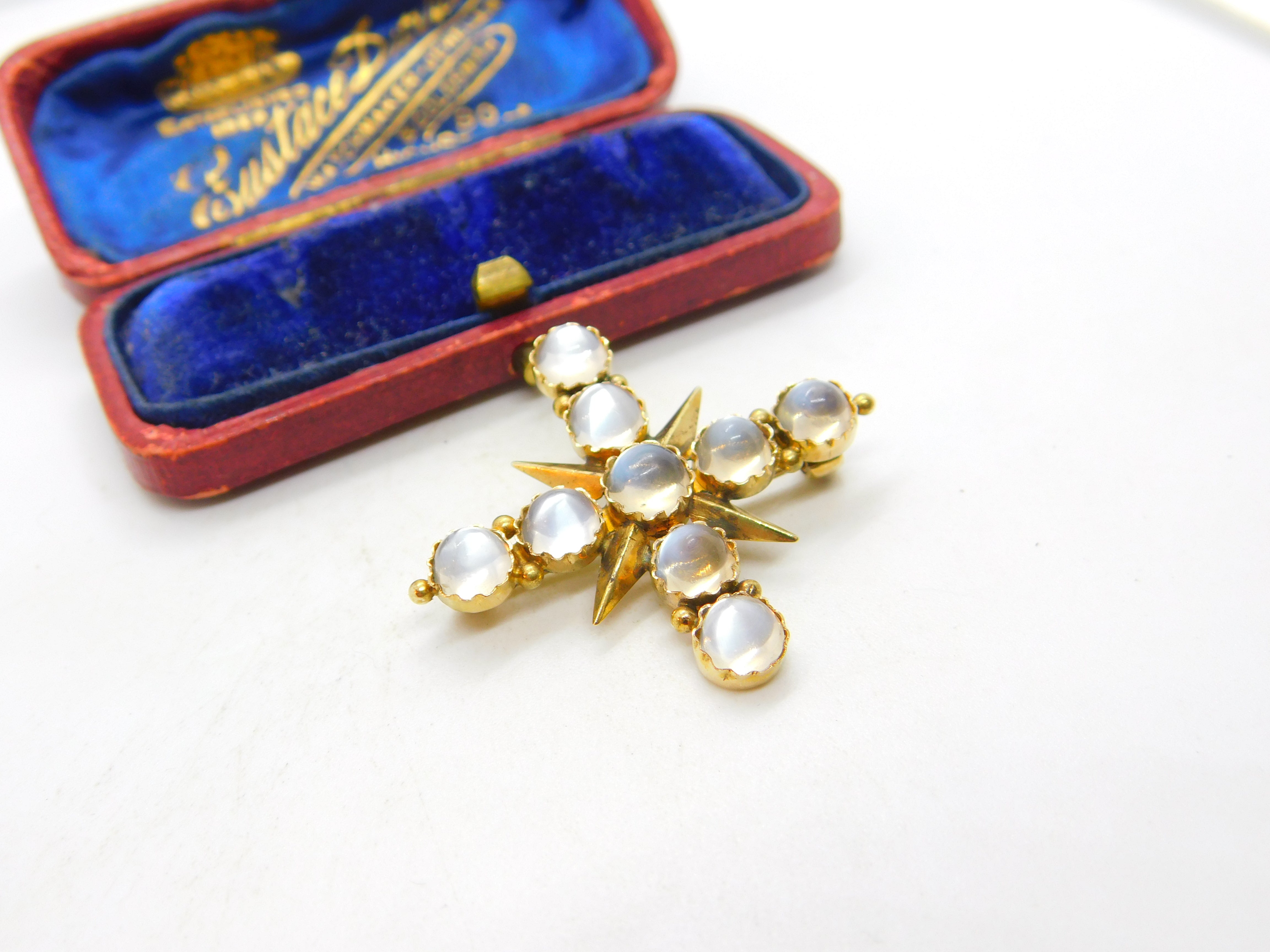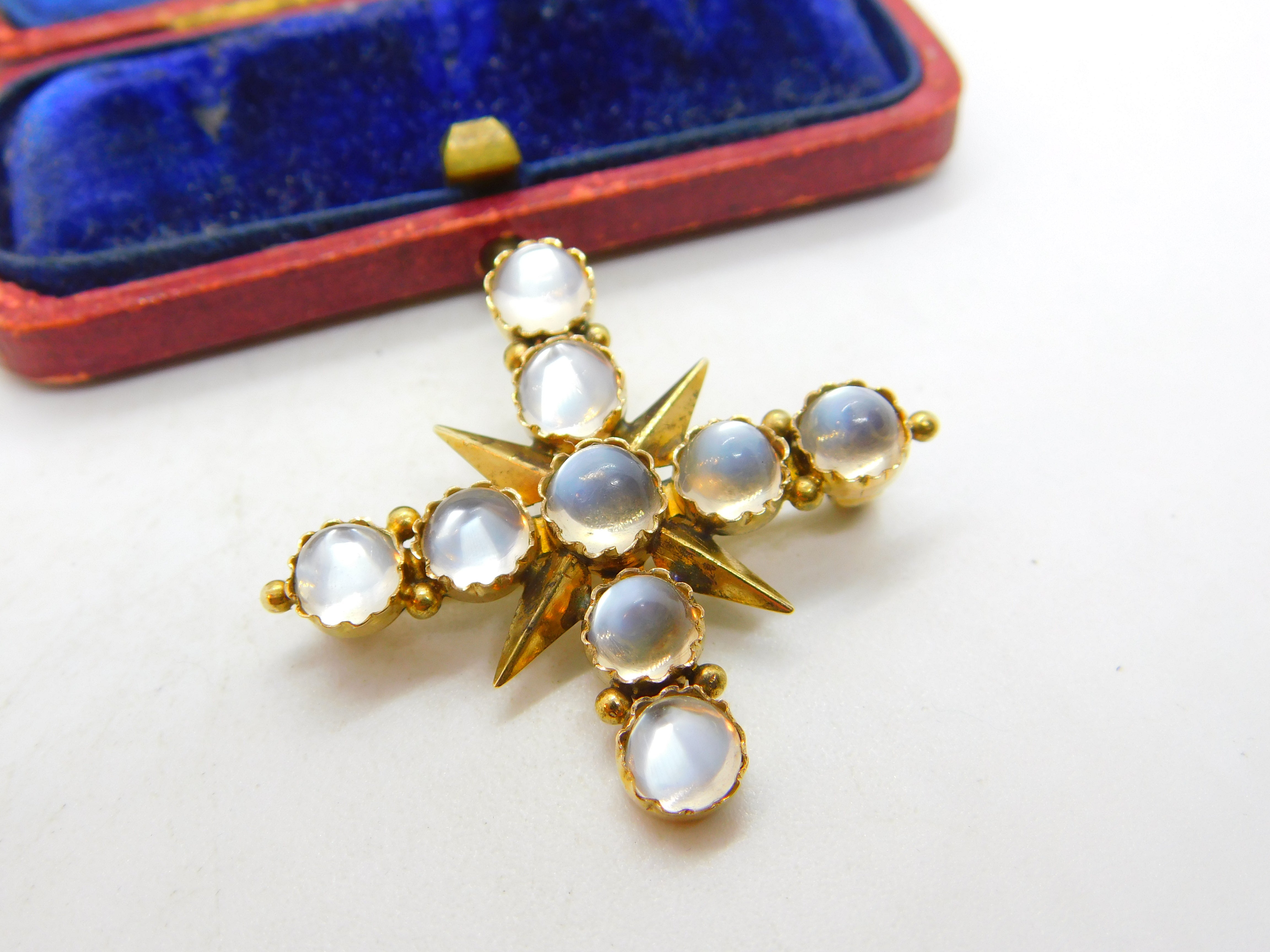 Details: A fantastic and wonderfully designed antique Victorian 15ct yellow gold star form statement brooch set with multiple cabochon cut moonstones c1880, the gold has been XRF tested, a superb example. This is a wonderful item that would make a perfect gift or addition to any collection. The BOX pictured is for PRESENTATION ONLY and is NOT included in the listings but used to frame the pictures unless specifically stated otherwise.