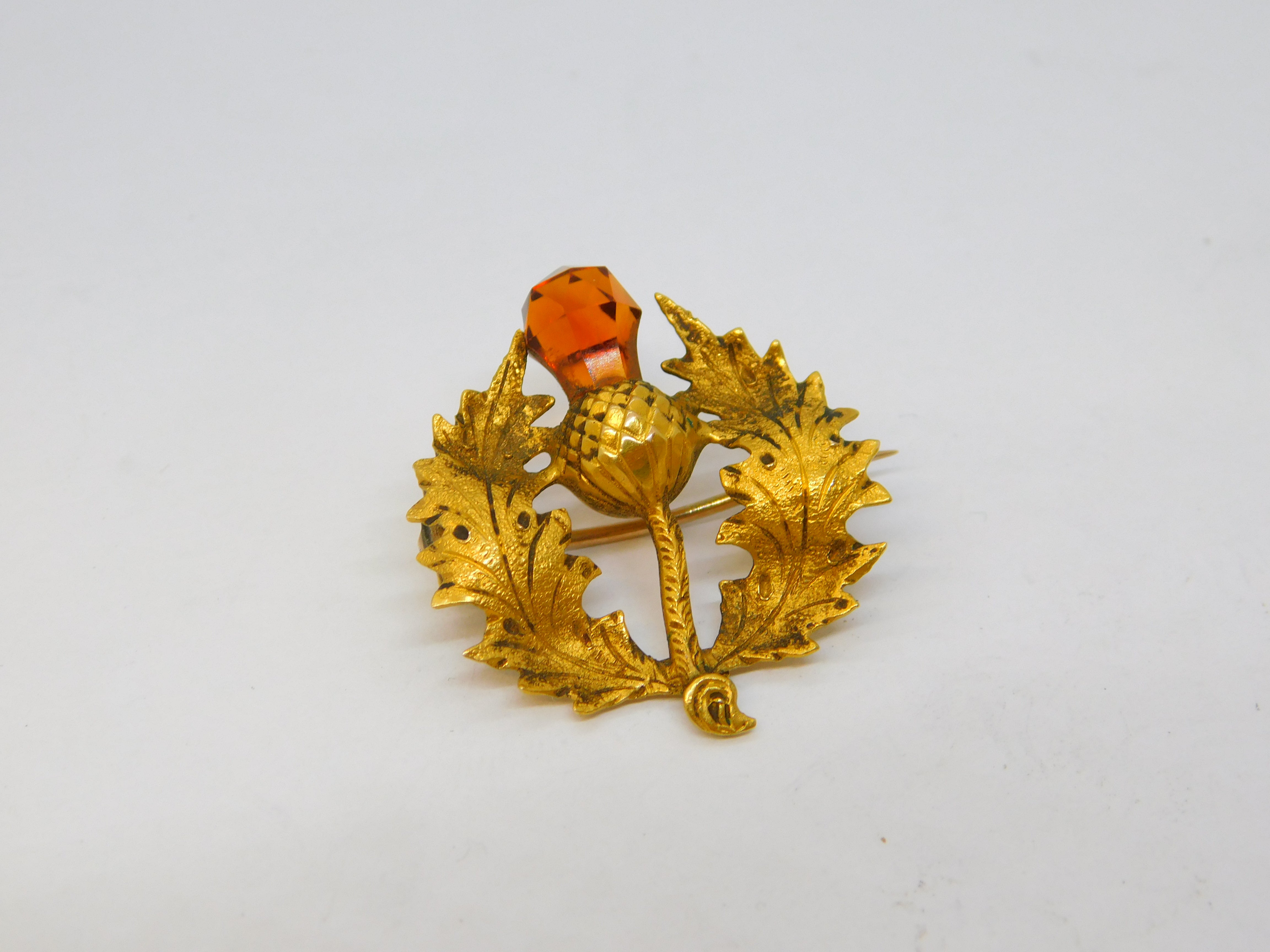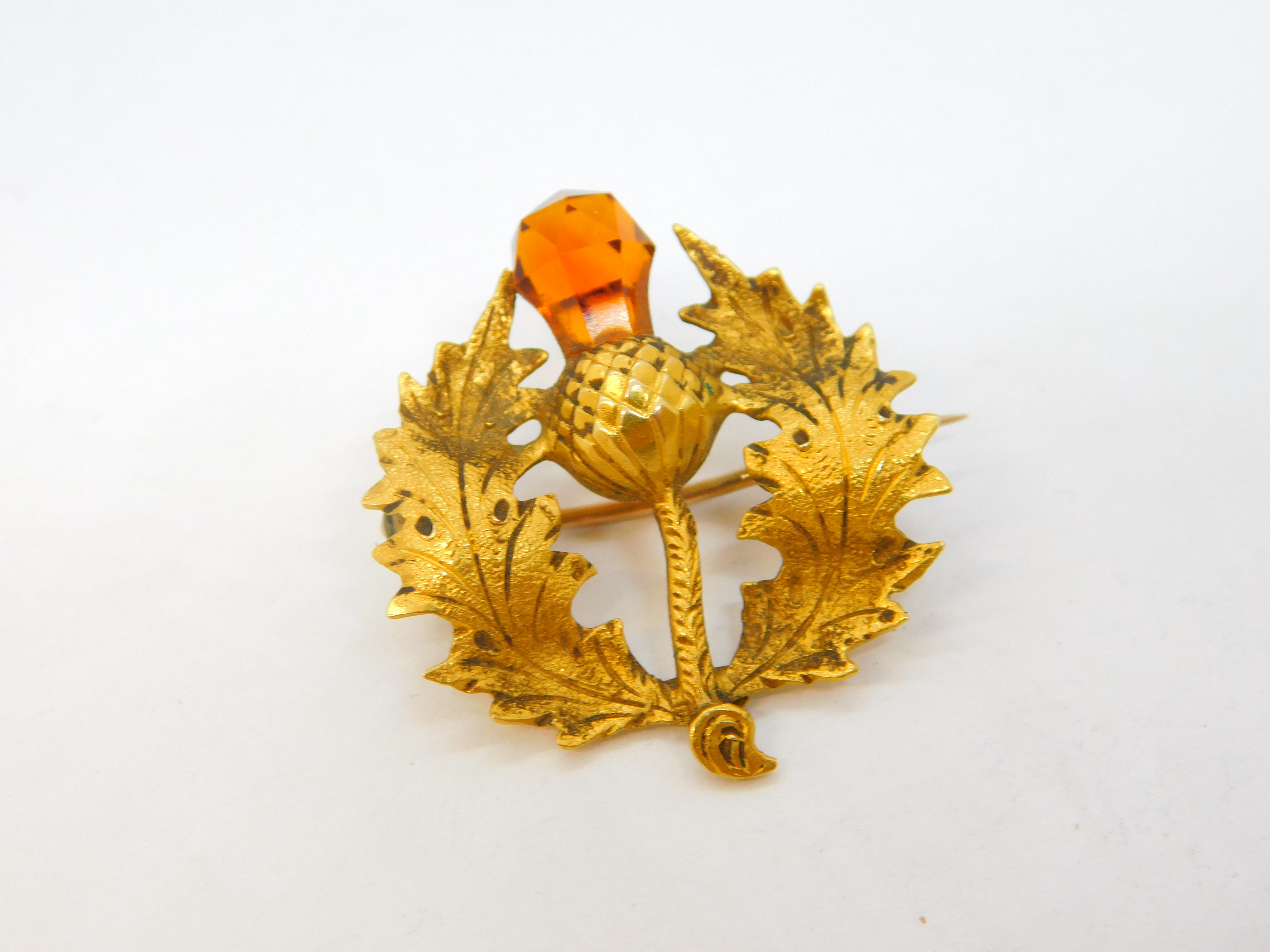 Details: A fantastic and wonderfully designed antique Victorian 15ct yellow gold Scottish thistle brooch pin set with citrine stone hallmarked '15ct' to the reverse c1890. This is a wonderful item that would make a perfect gift or addition to any collection.