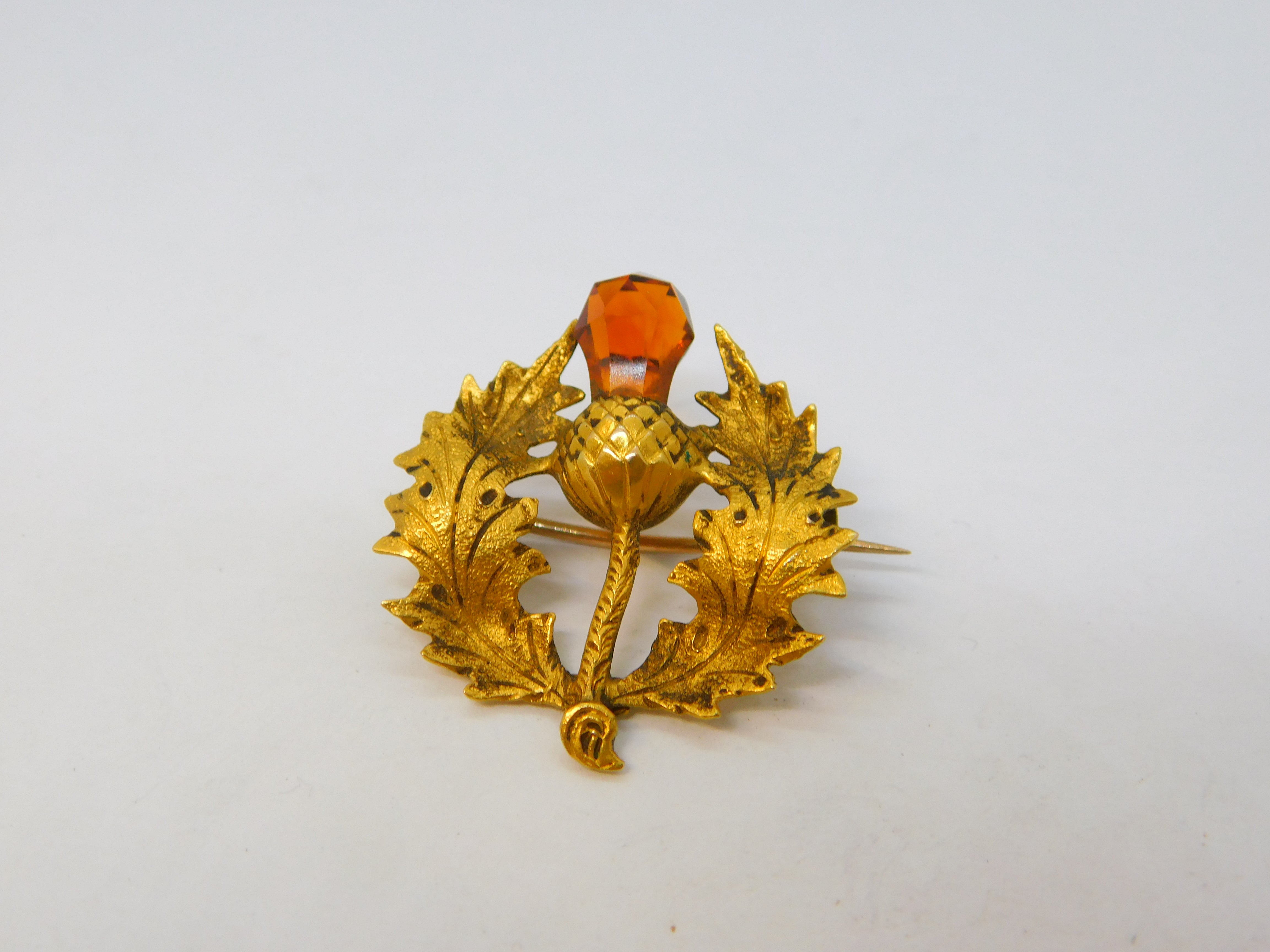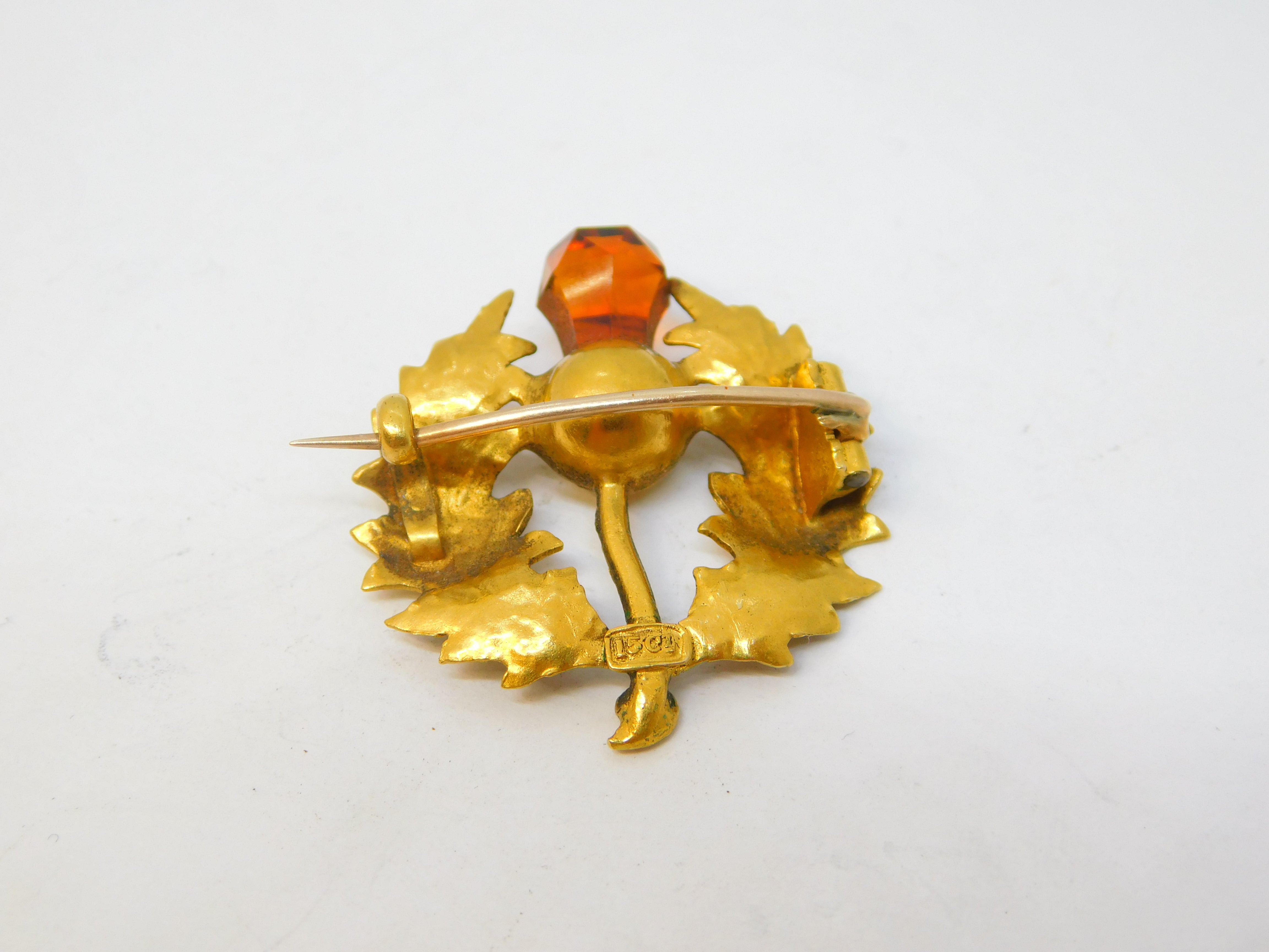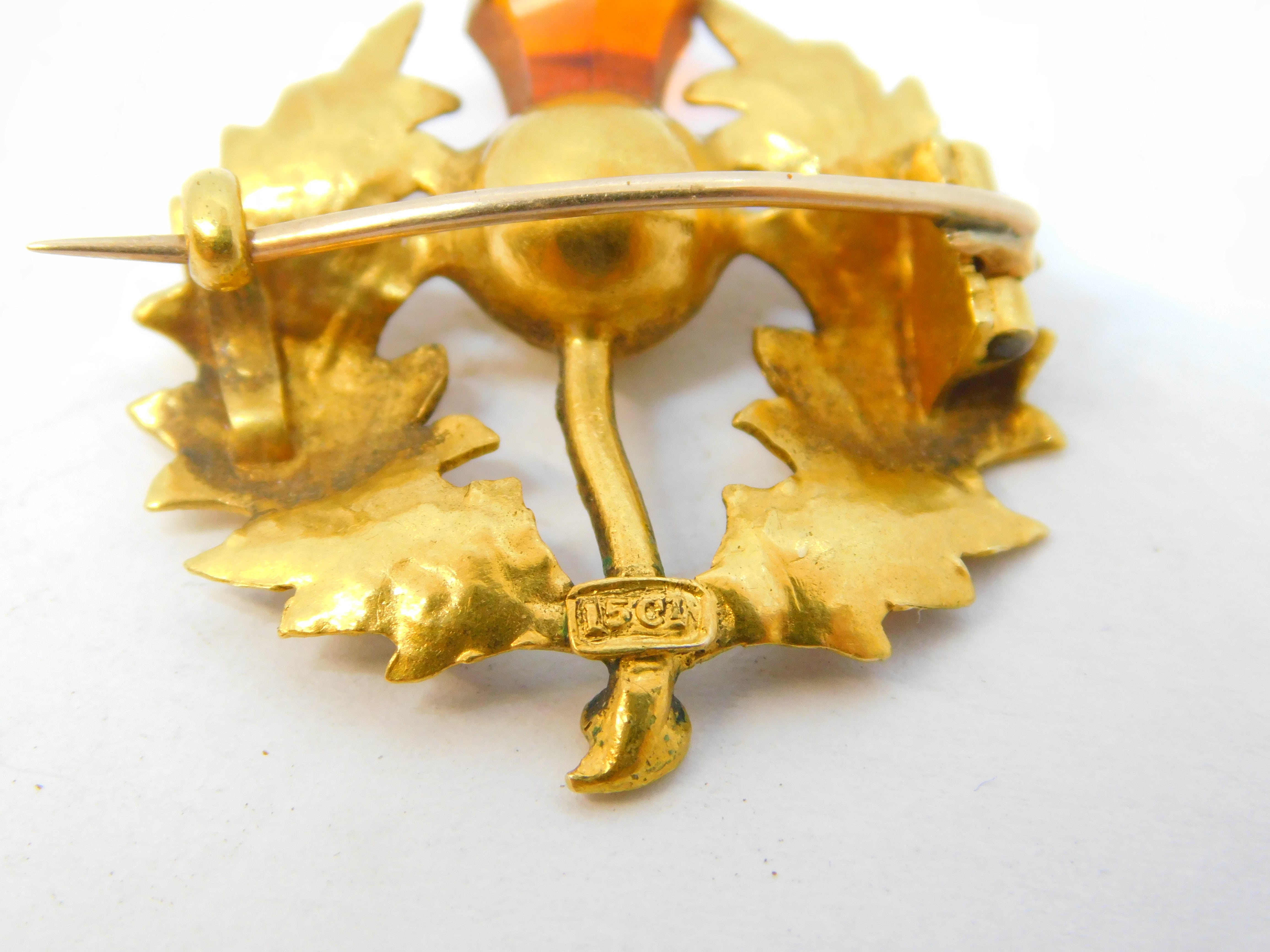 Victorian 15ct Yellow Gold Citrine Set Scottish Thistle Brooch Antique c1890