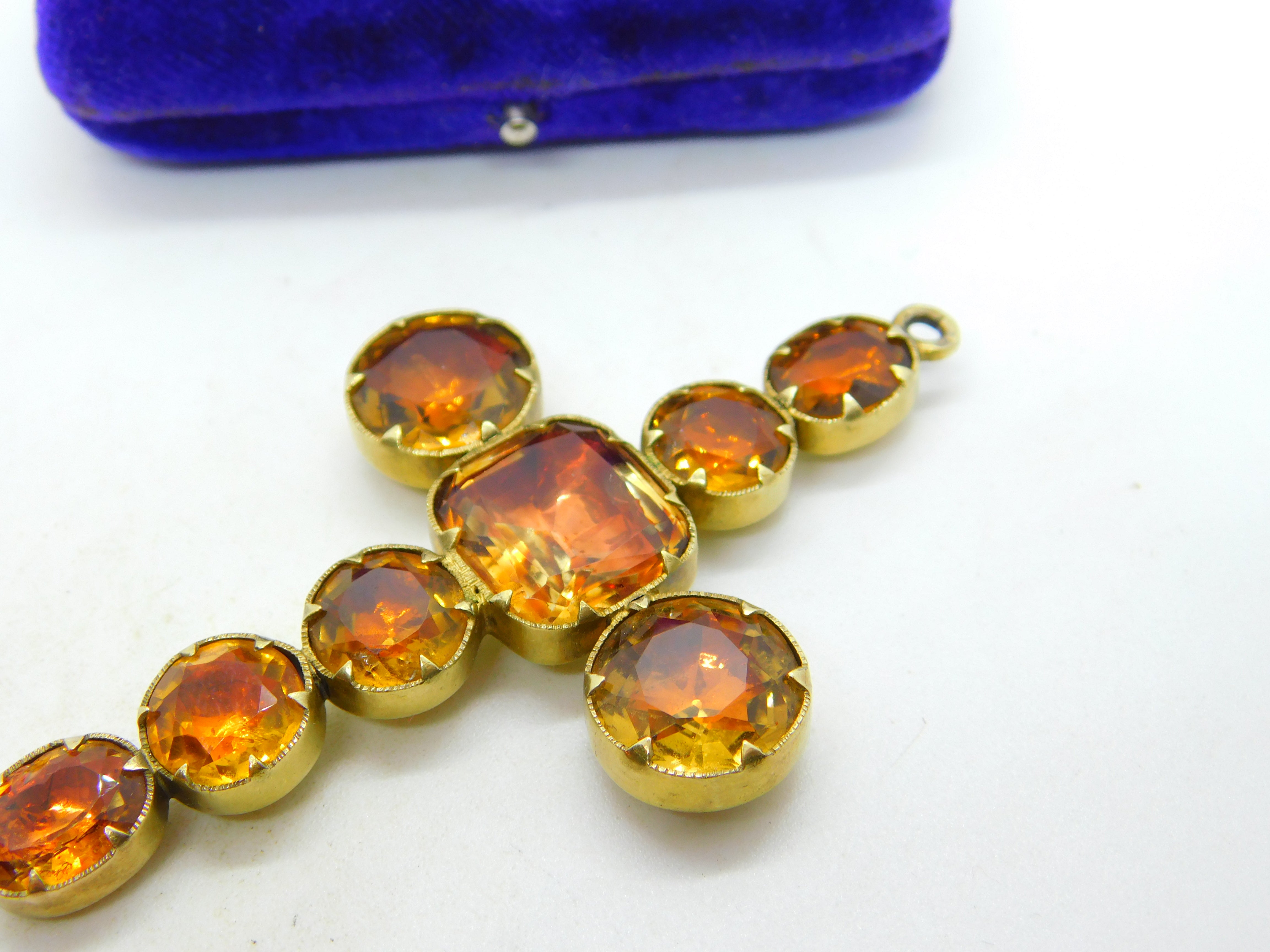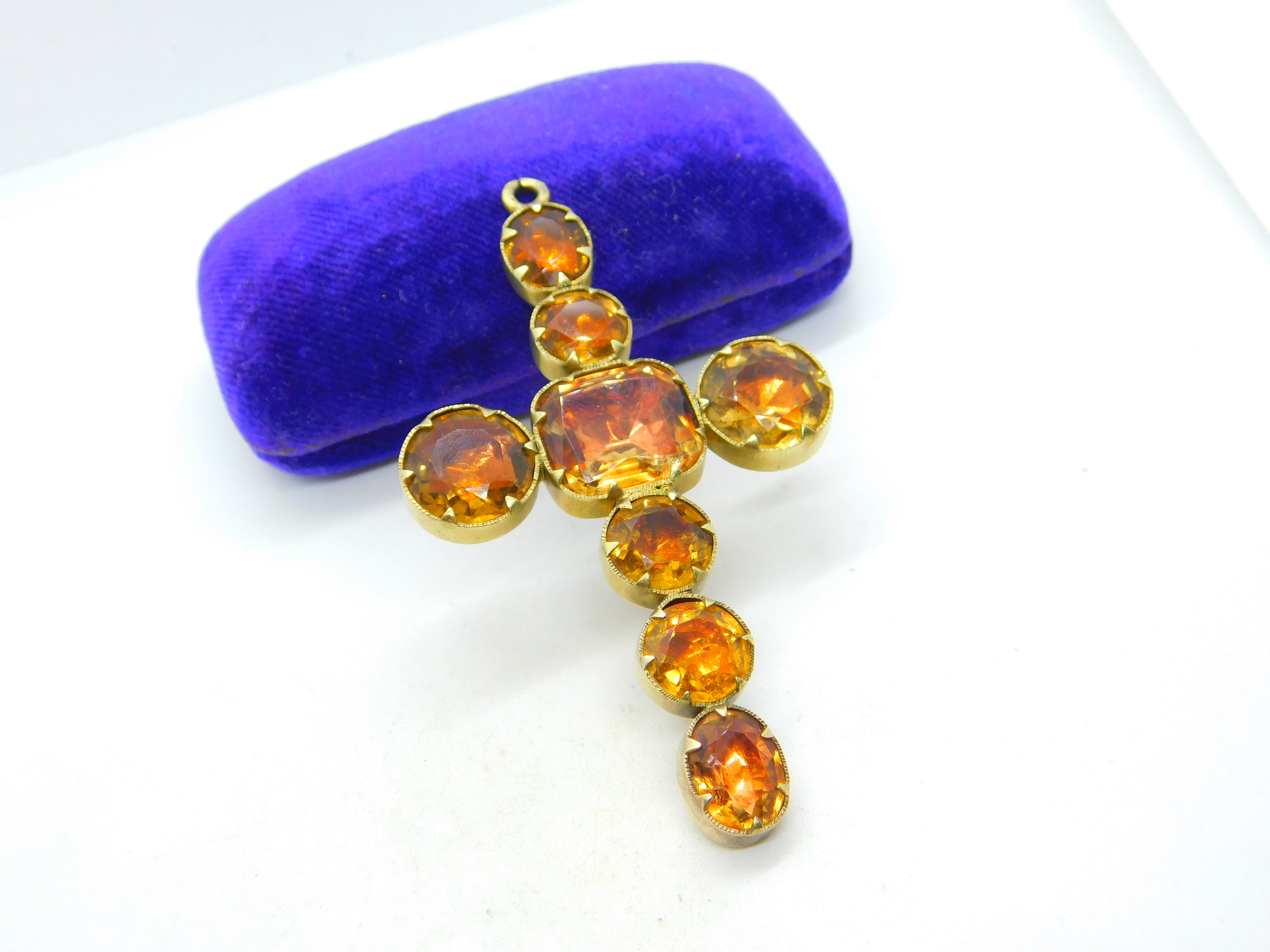 Details: A fantastic and wonderfully designed antique early Victorian large 15ct yellow gold cross pendant set with facated citrine stones c1840, the gold has been XRF tested as it is unmarked. This is a wonderful item that would make a perfect gift or addition to any collection. The BOX pictured is for PRESENTATION ONLY and is NOT included in the listings but used to frame the pictures unless specifically stated otherwise.