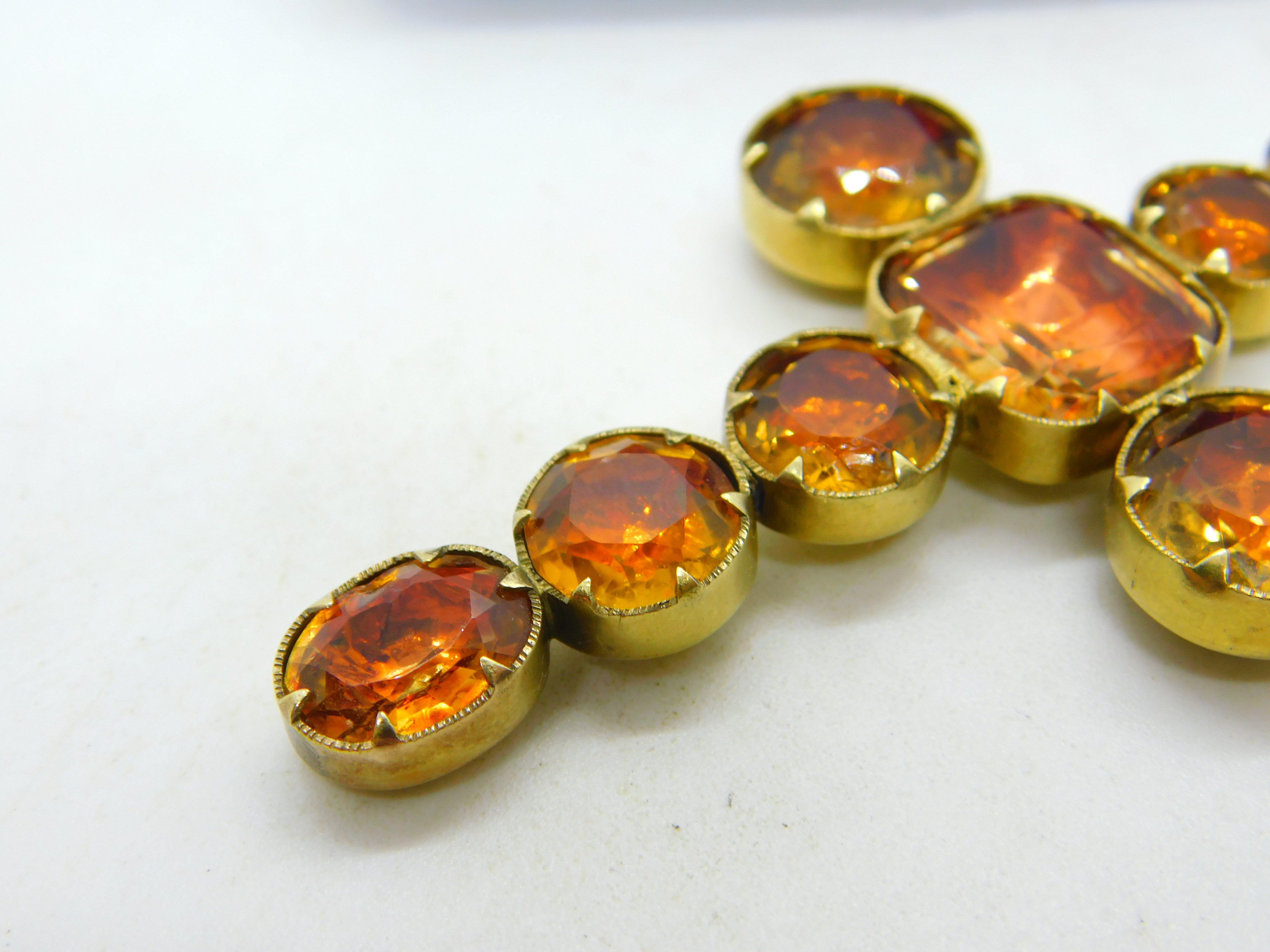 Victorian 15ct Yellow Gold Faceted Citrine Large Cross Pendant Antique c1840