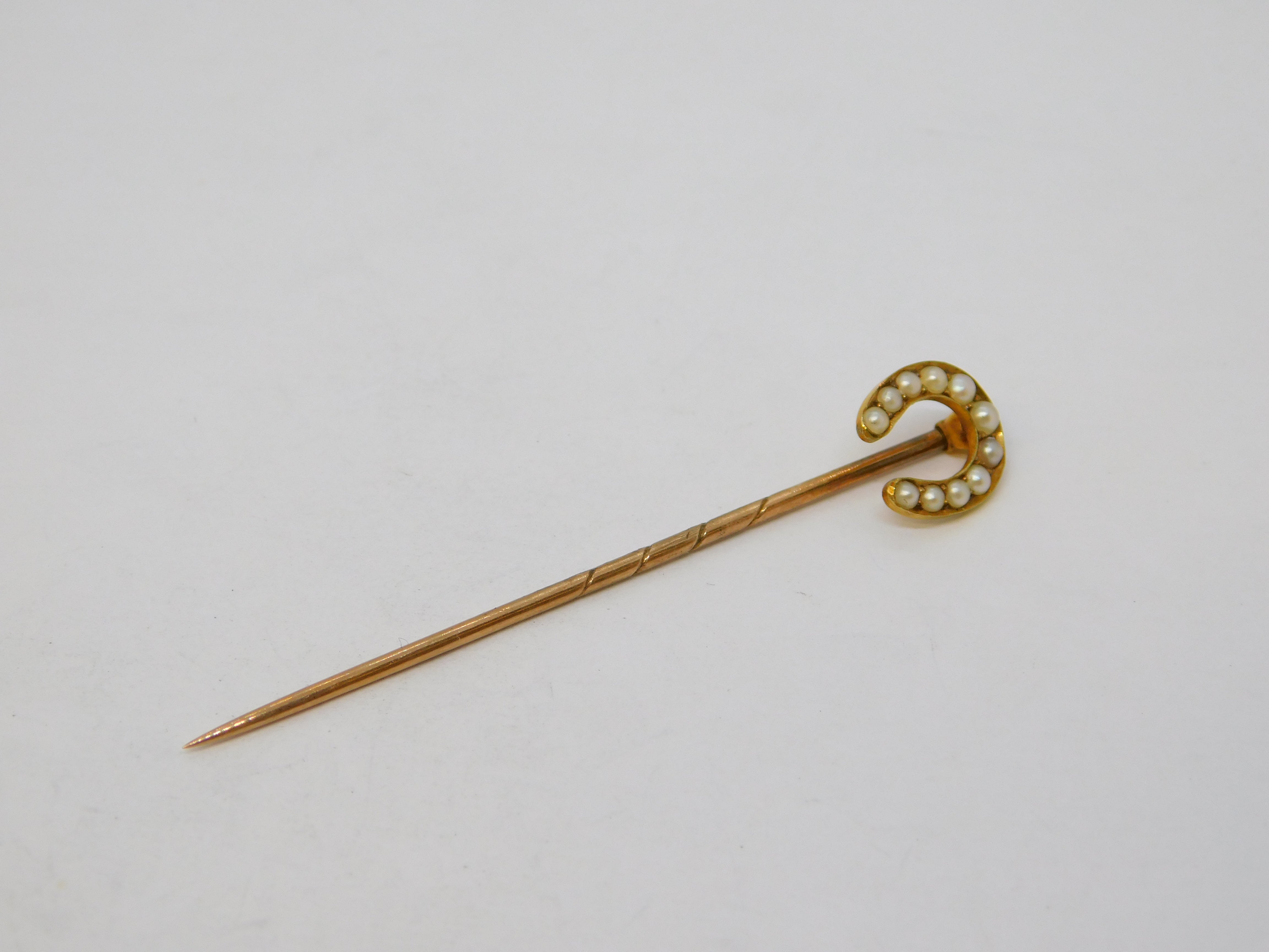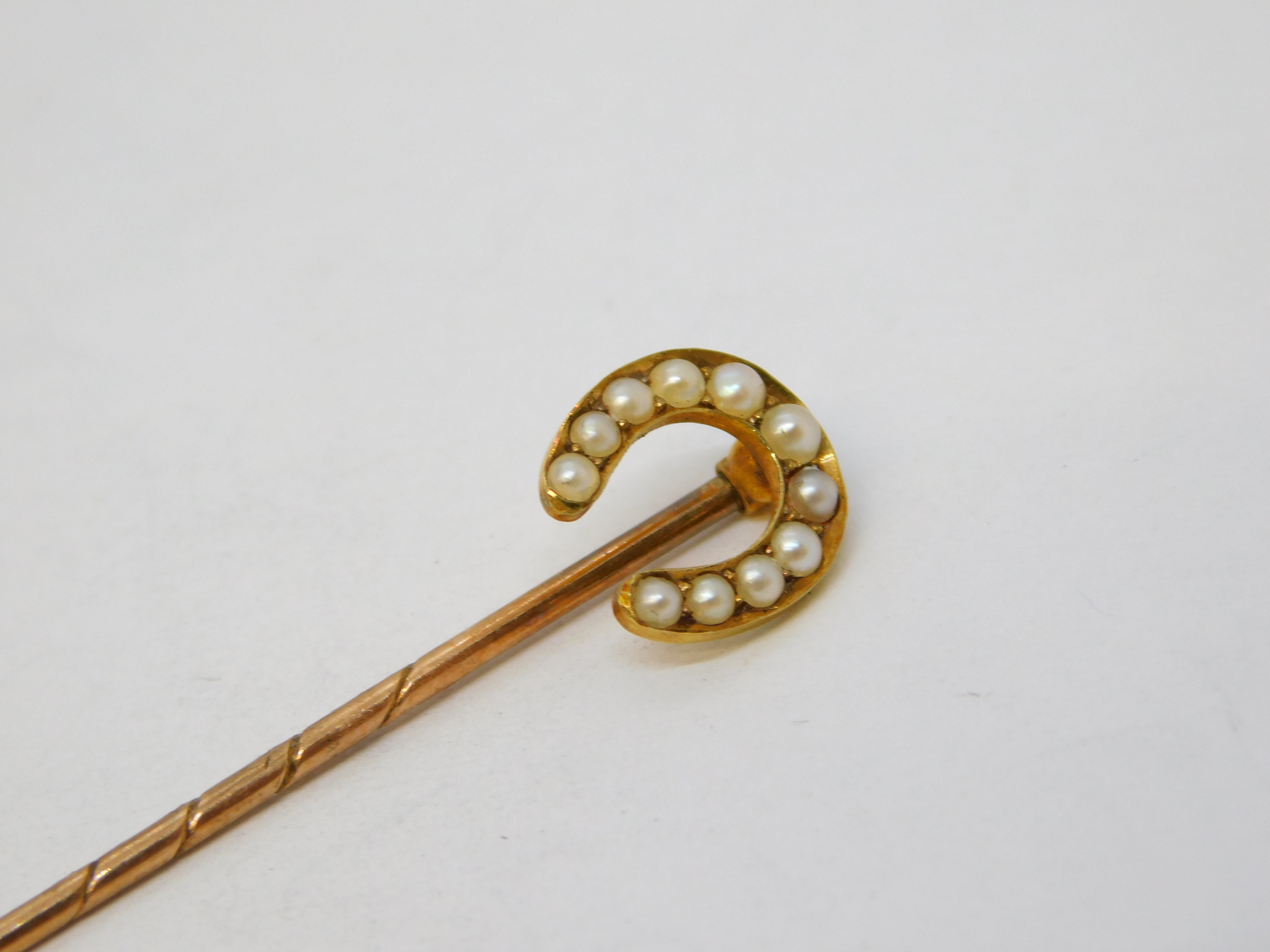 Victorian 15ct Yellow Gold Seed Pearl Set Horseshoe Stick Pin Antique c1860