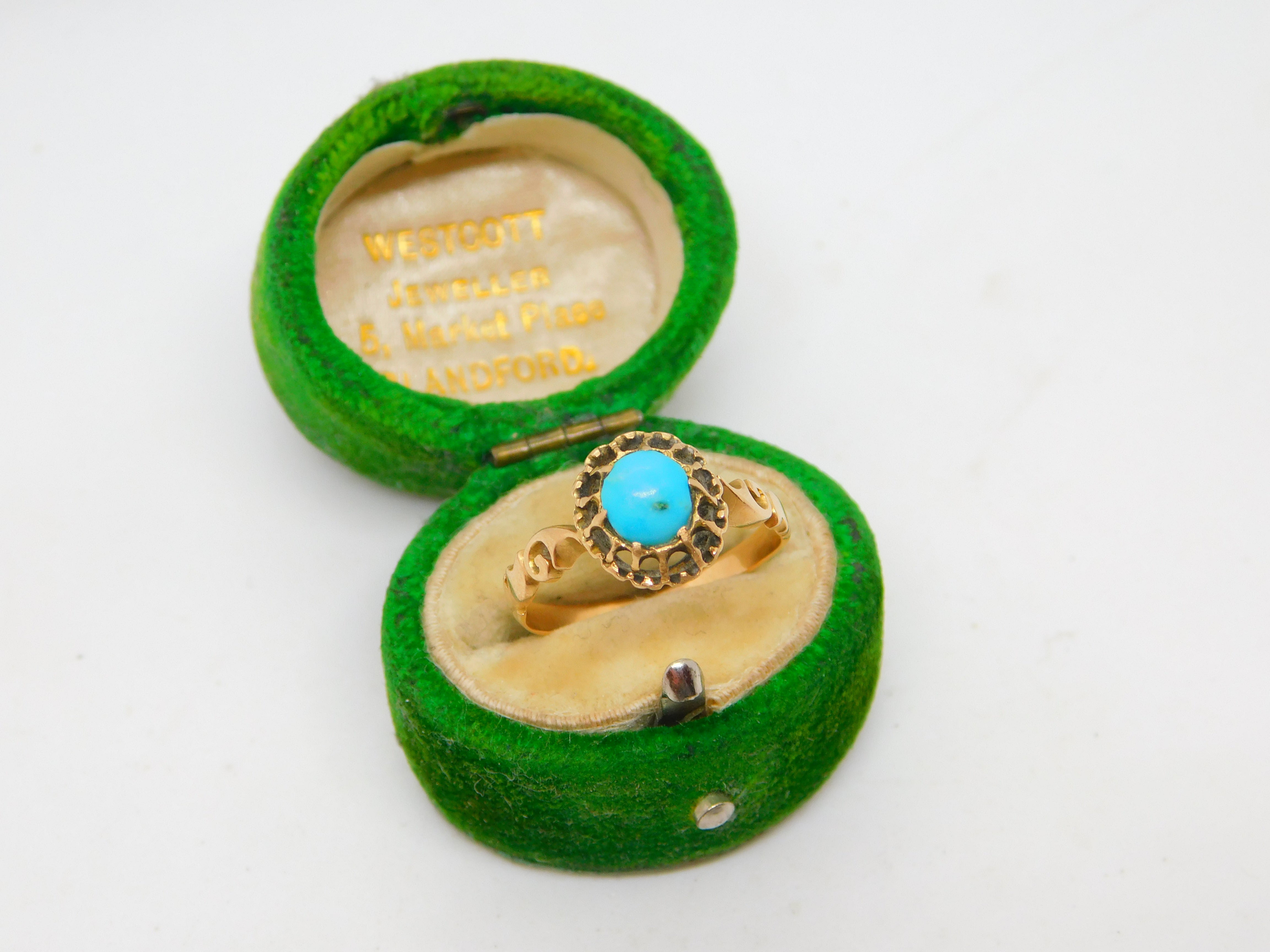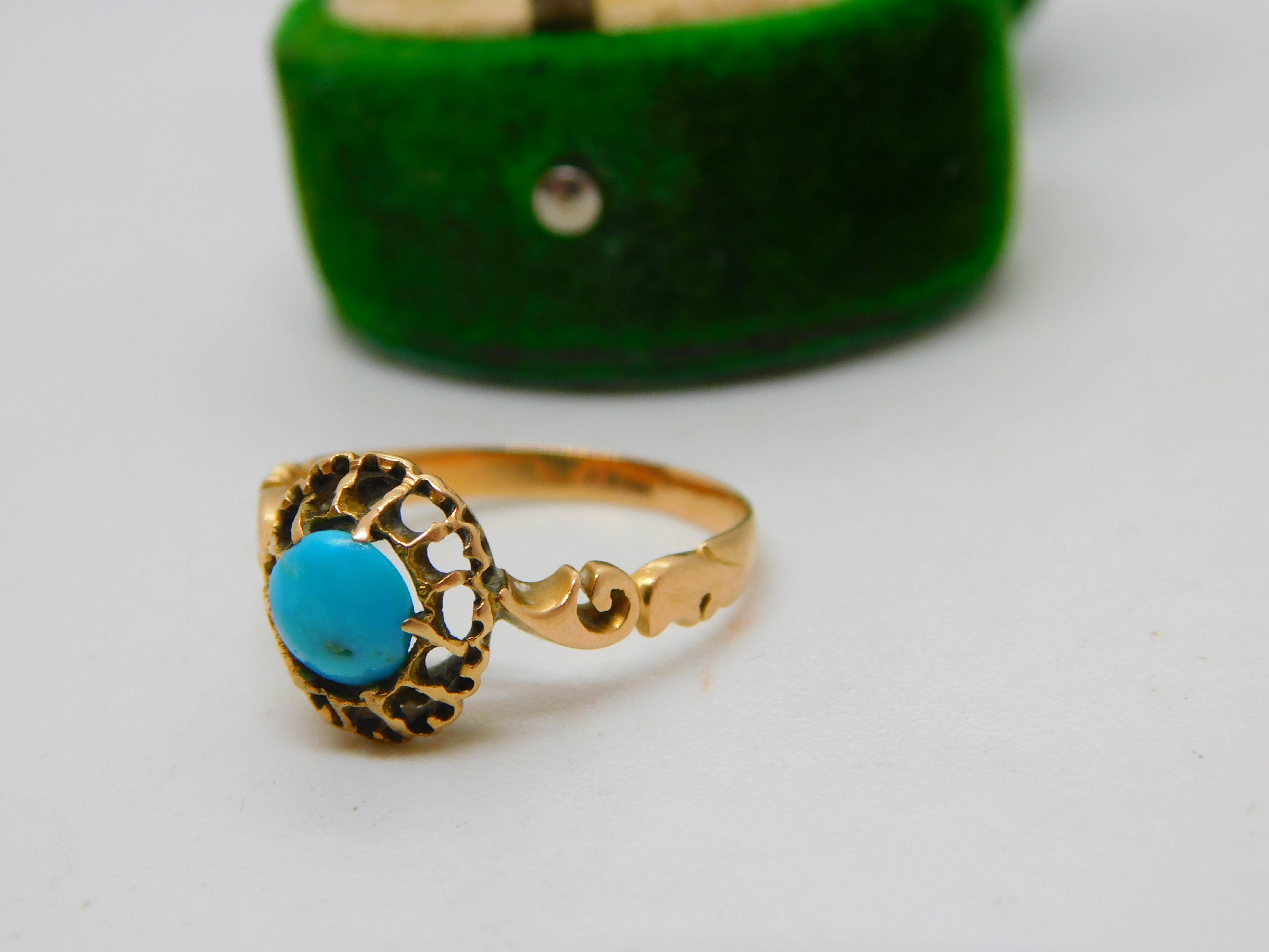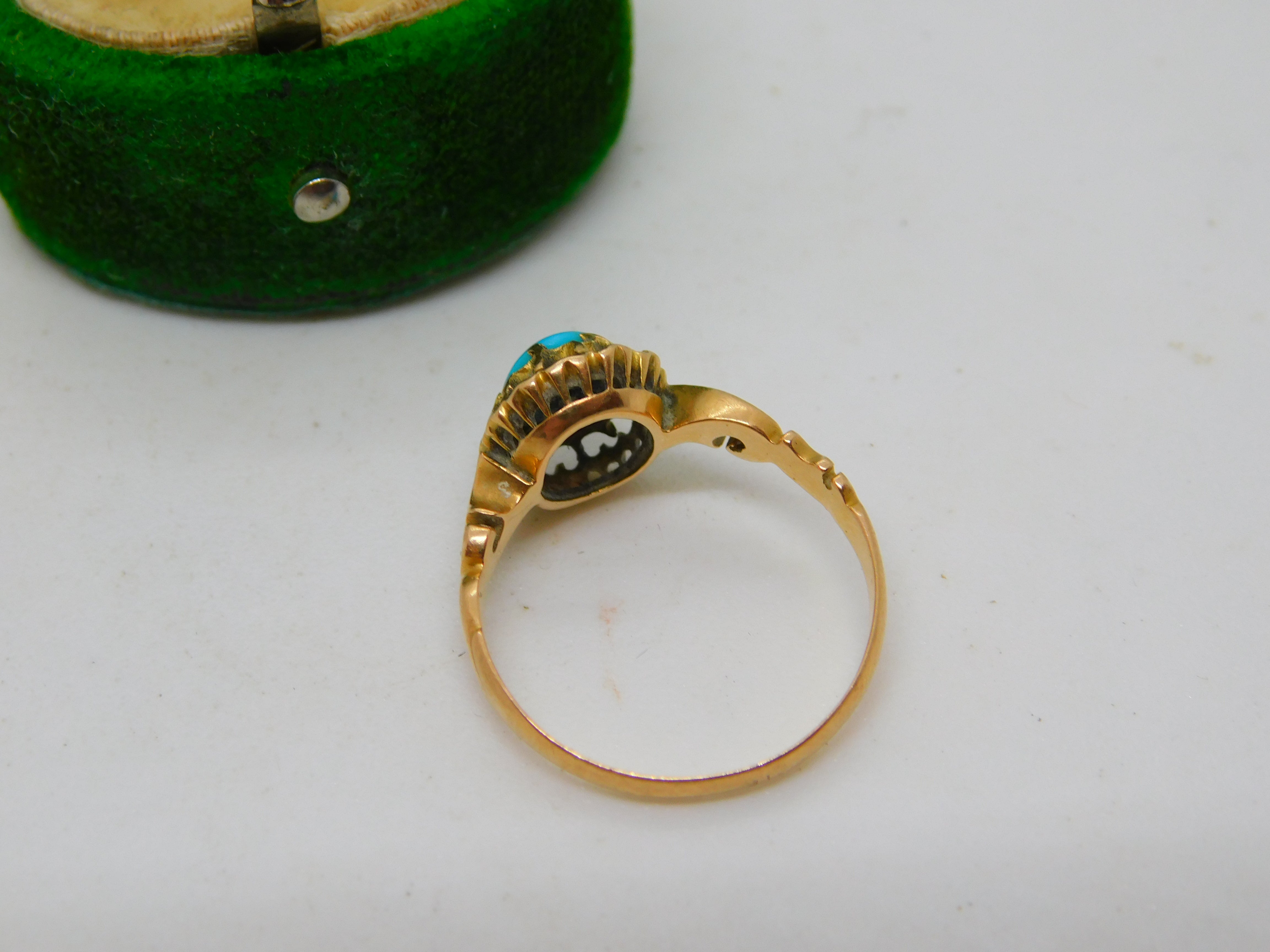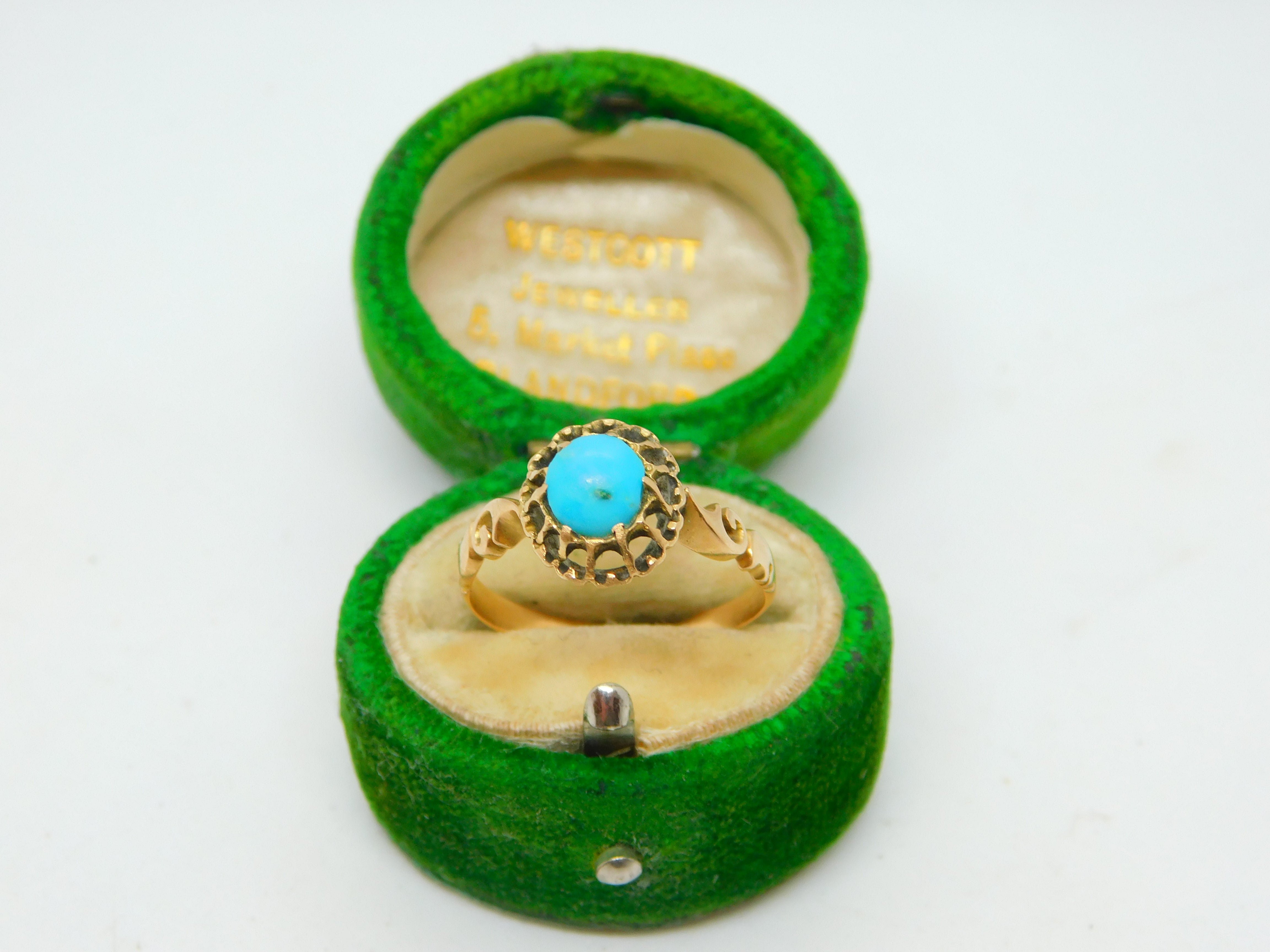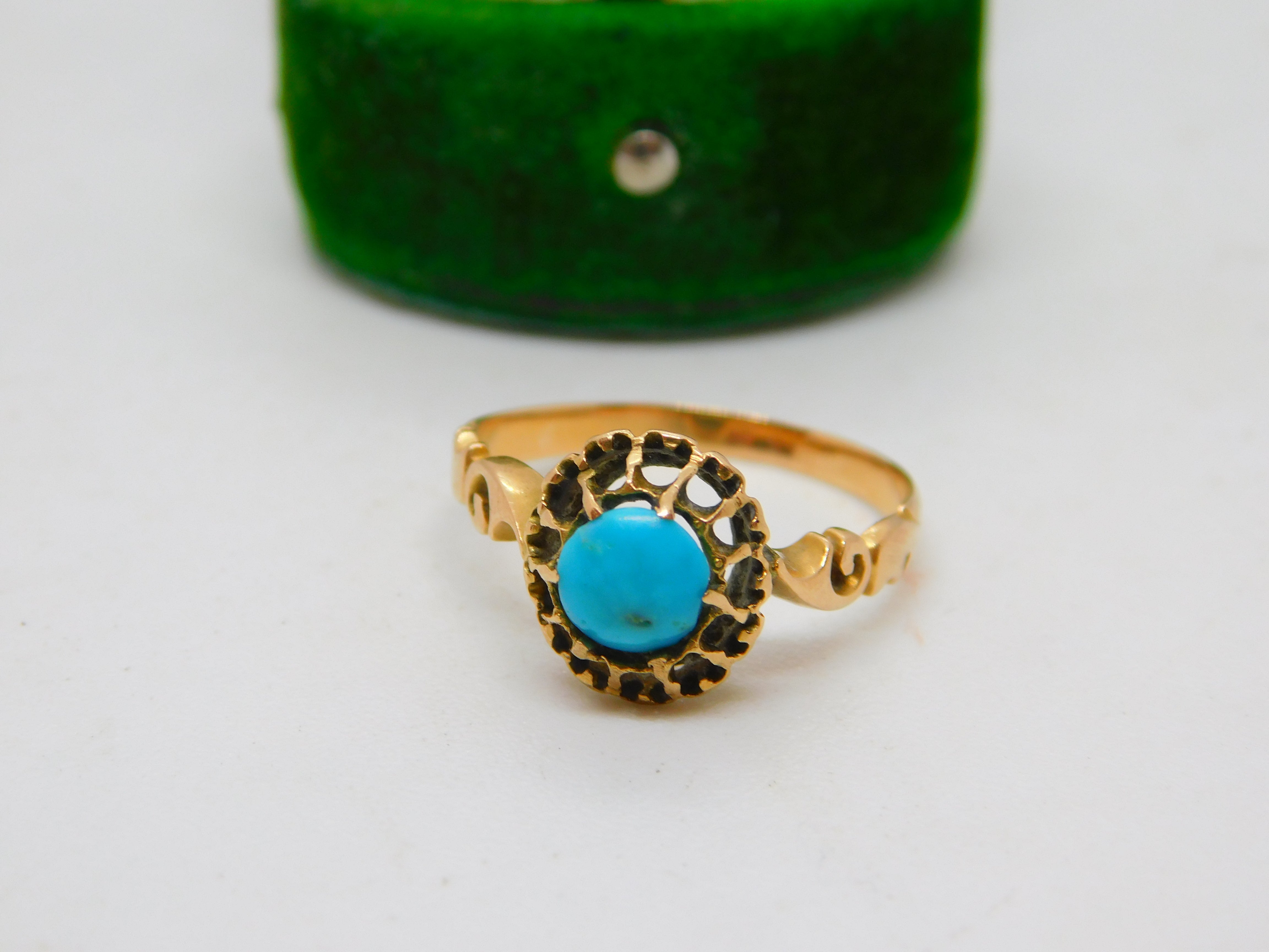 Victorian 15ct Yellow Gold Turquoise Set Floral Dress Ring Antique c1860