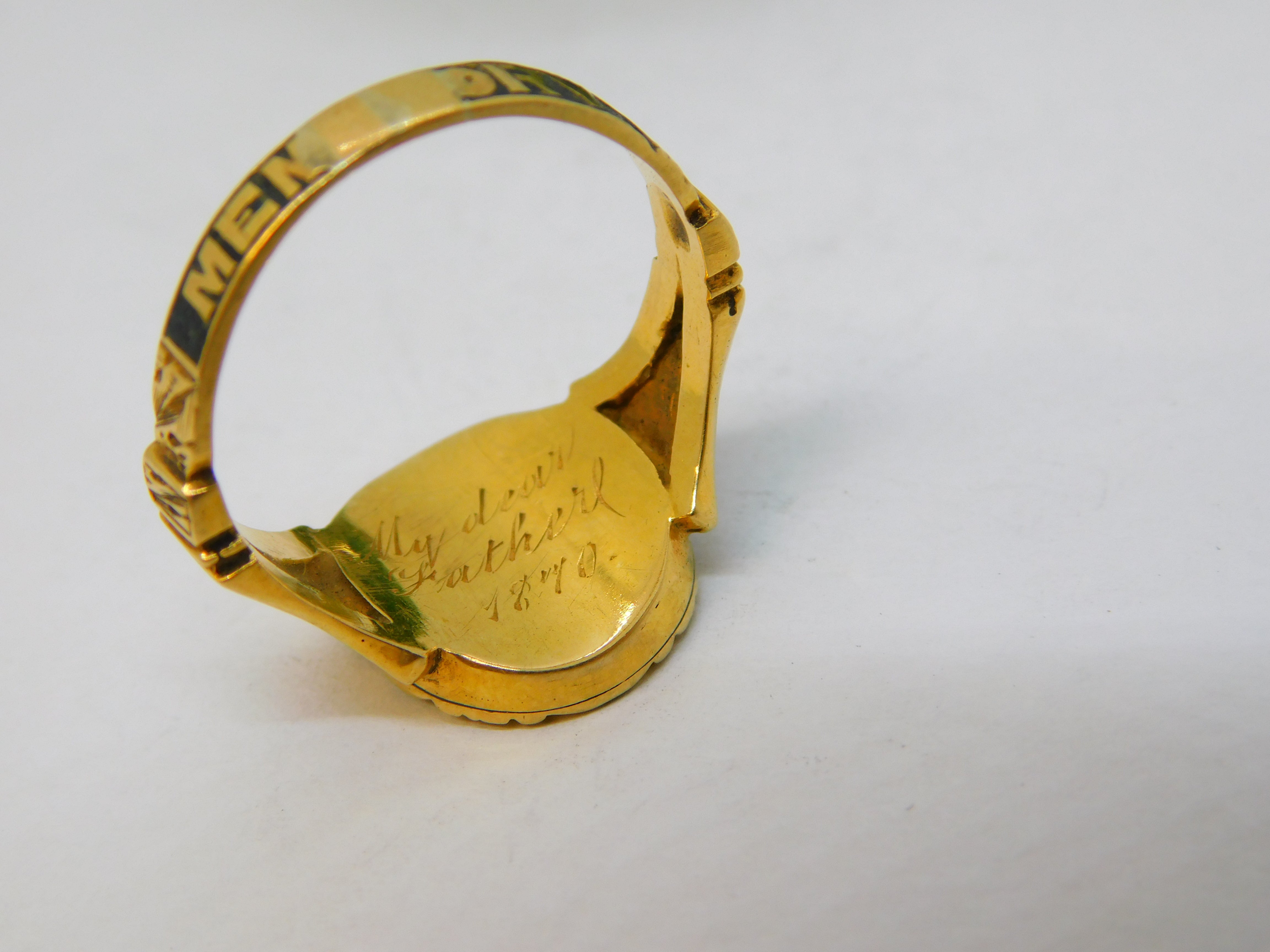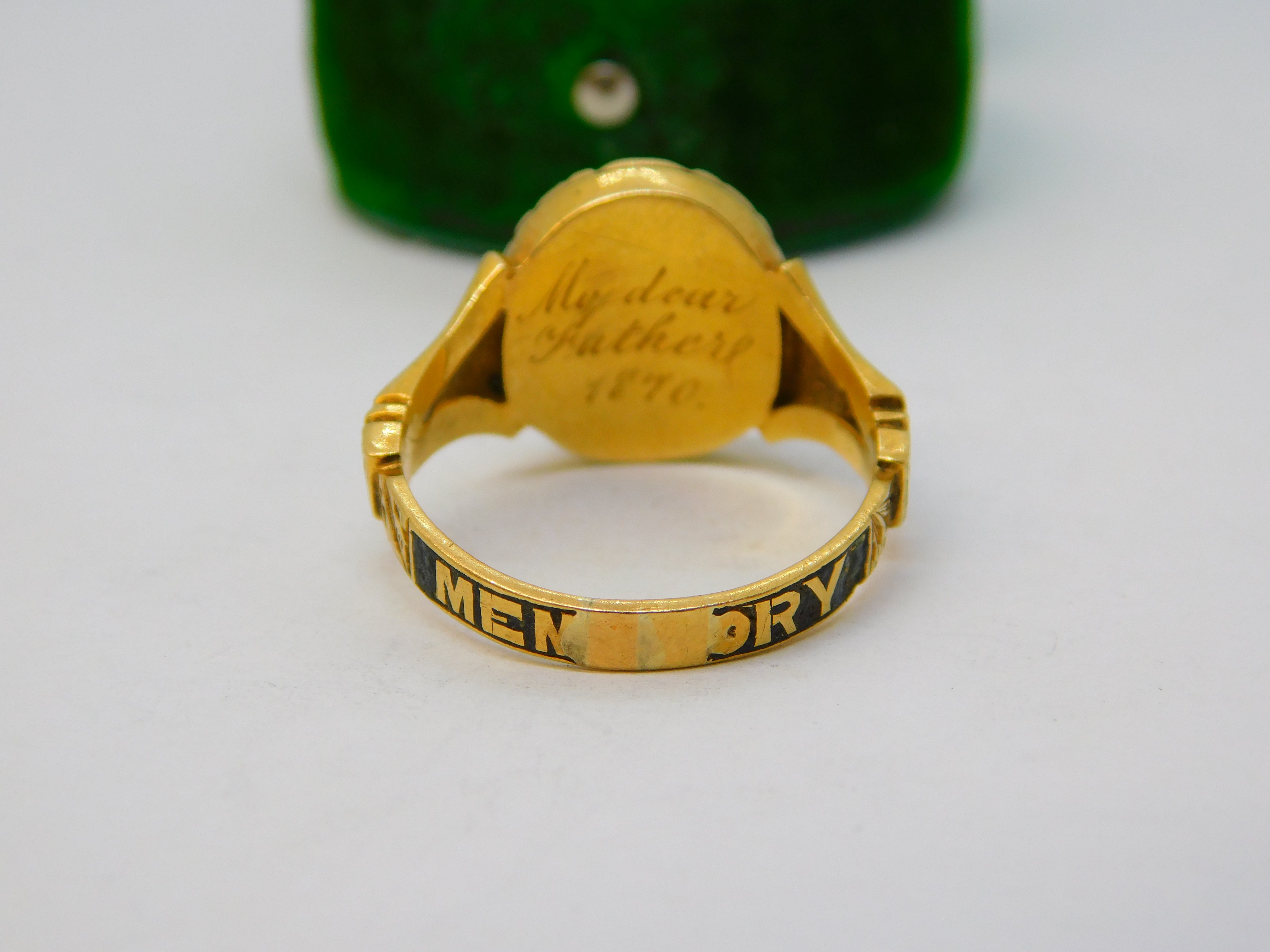Victorian 18ct Gold Black Enamel In Memory Of Mourning Ring Antique 1856 London