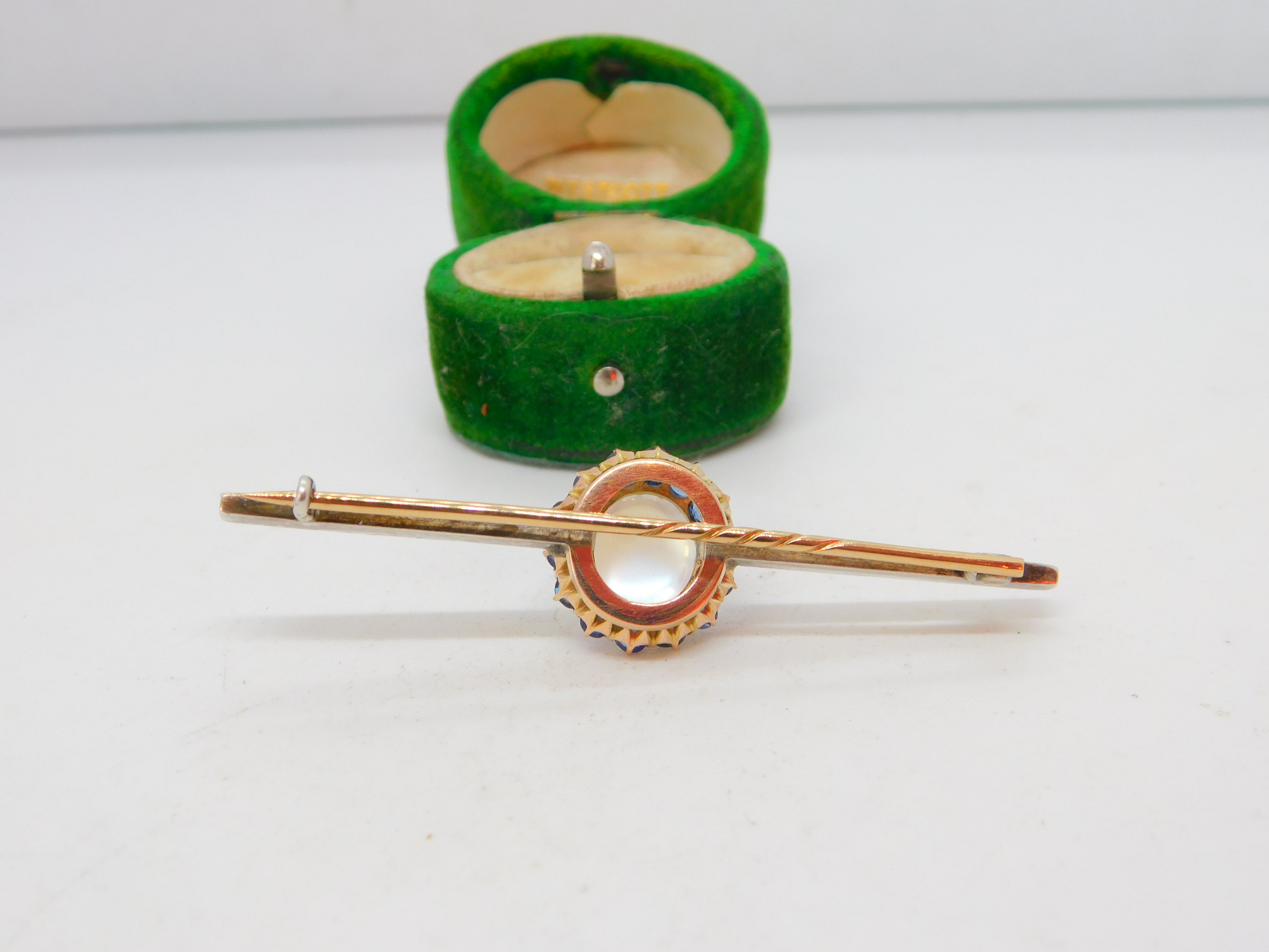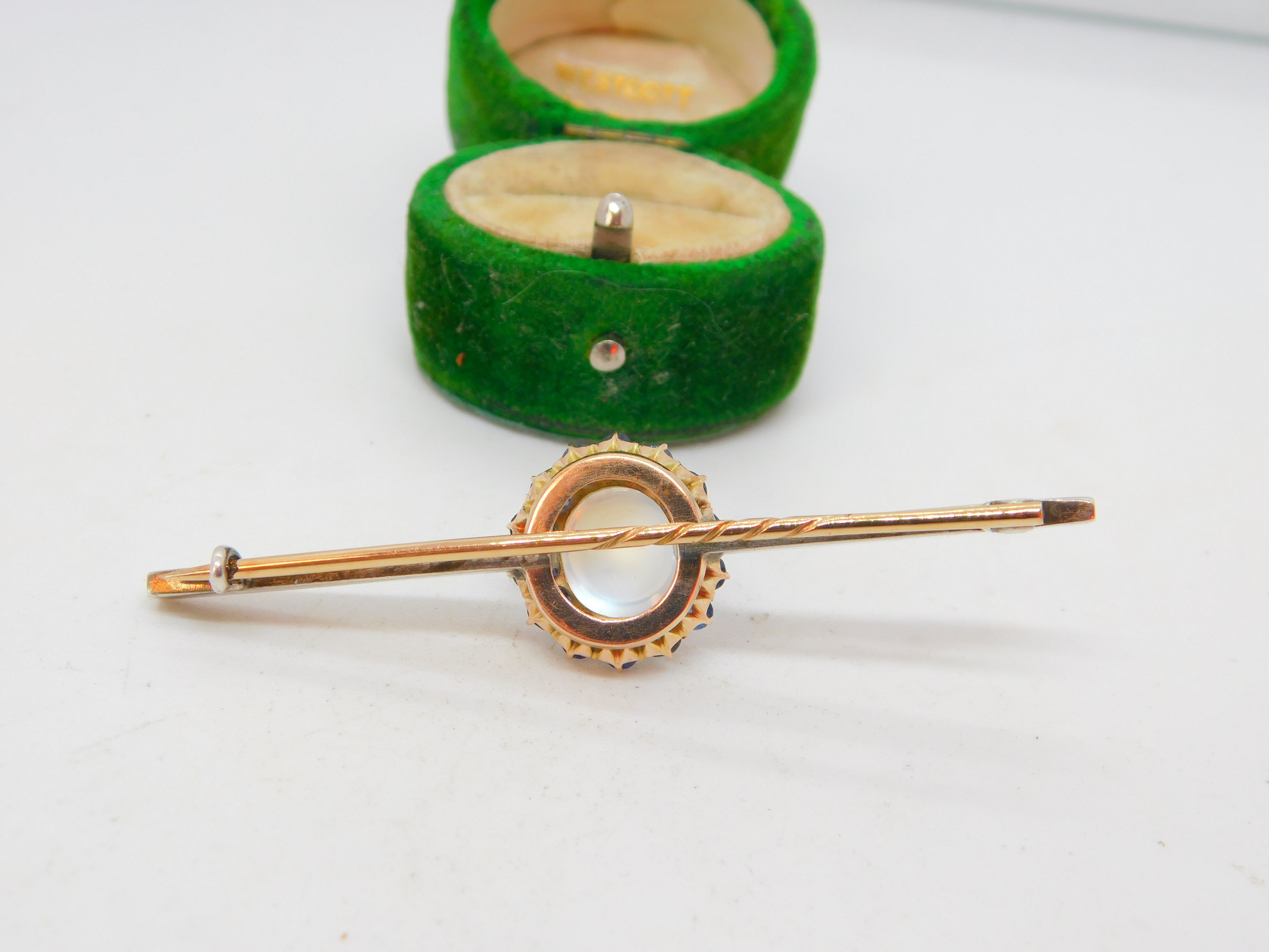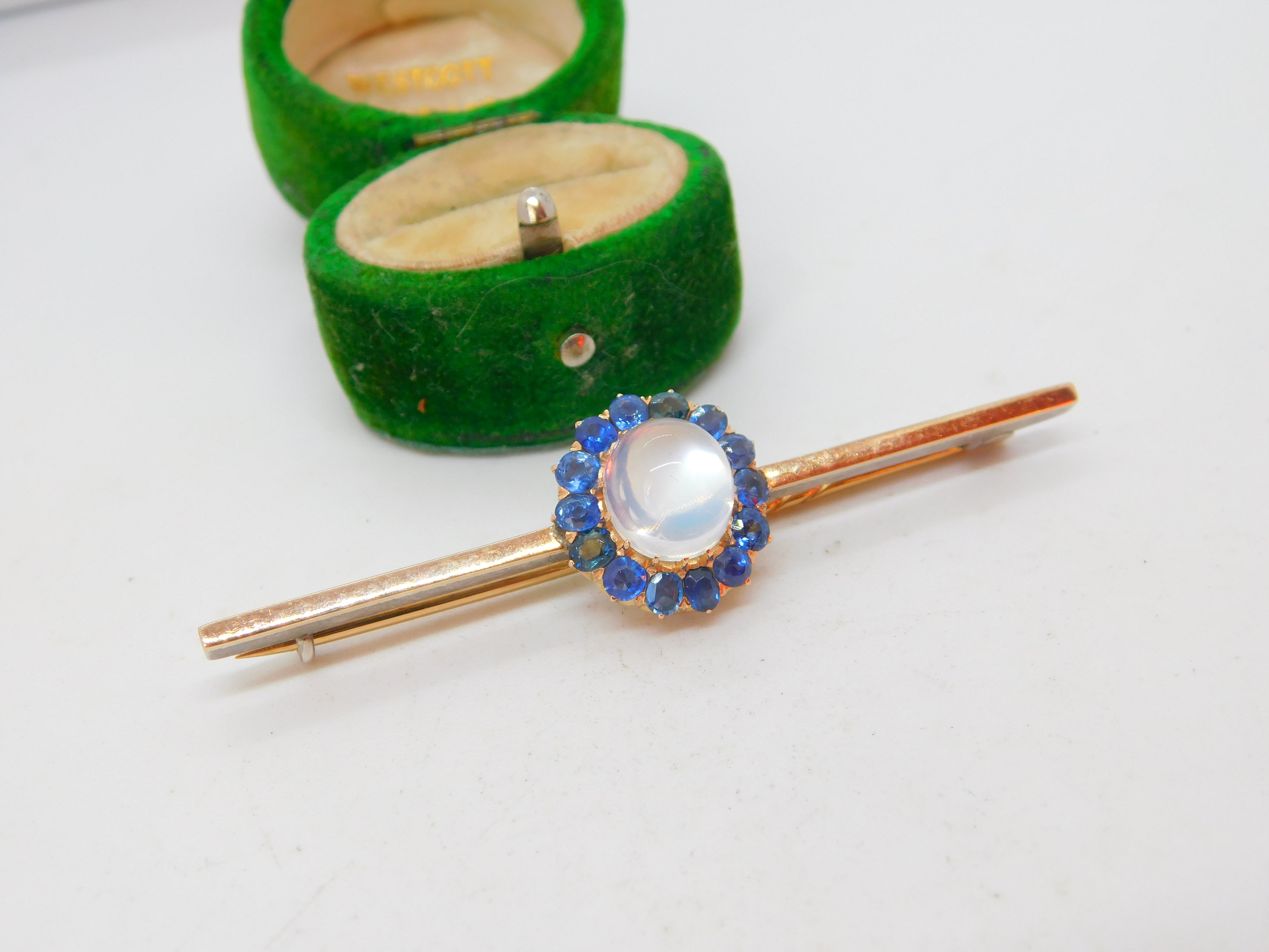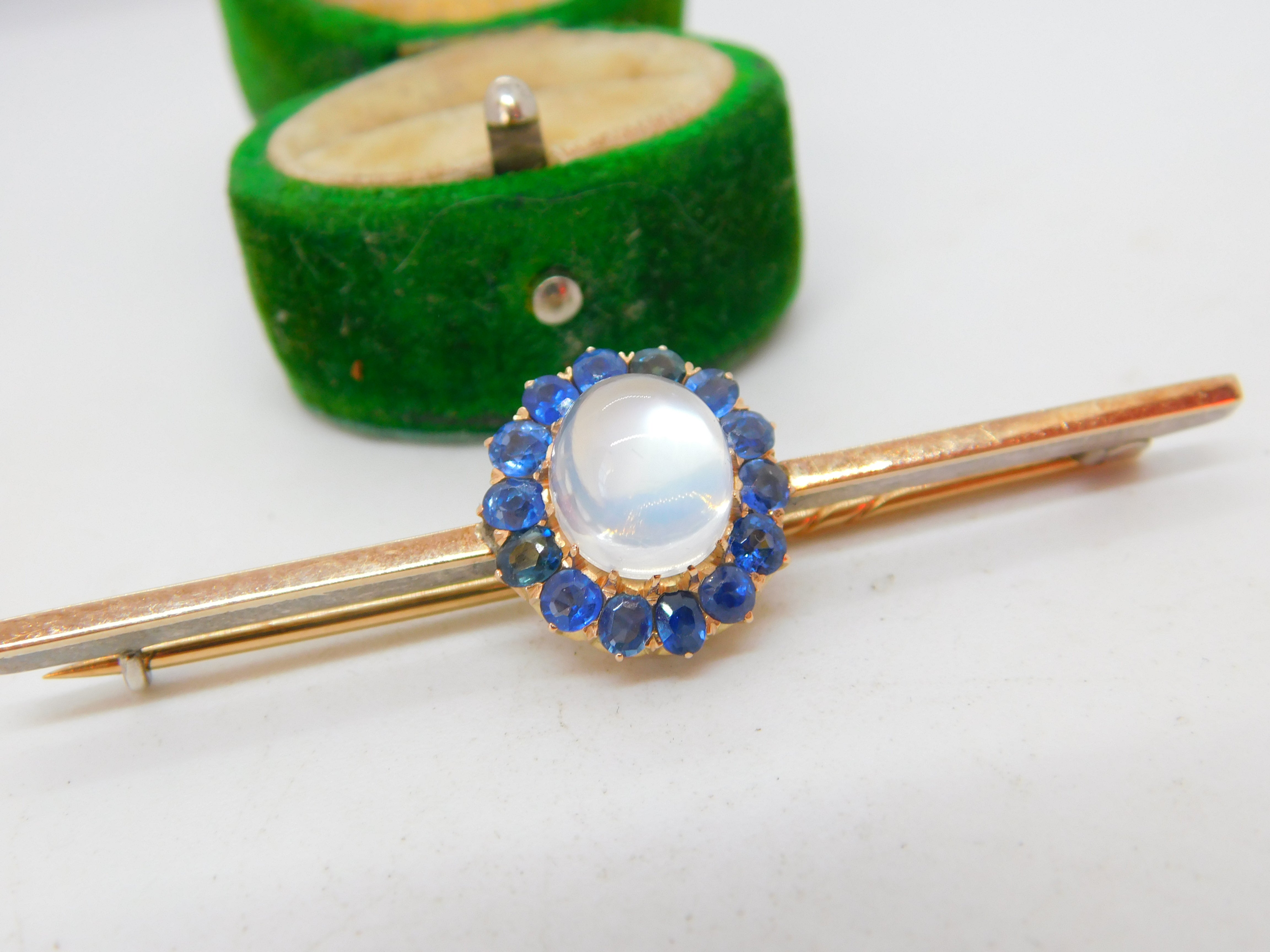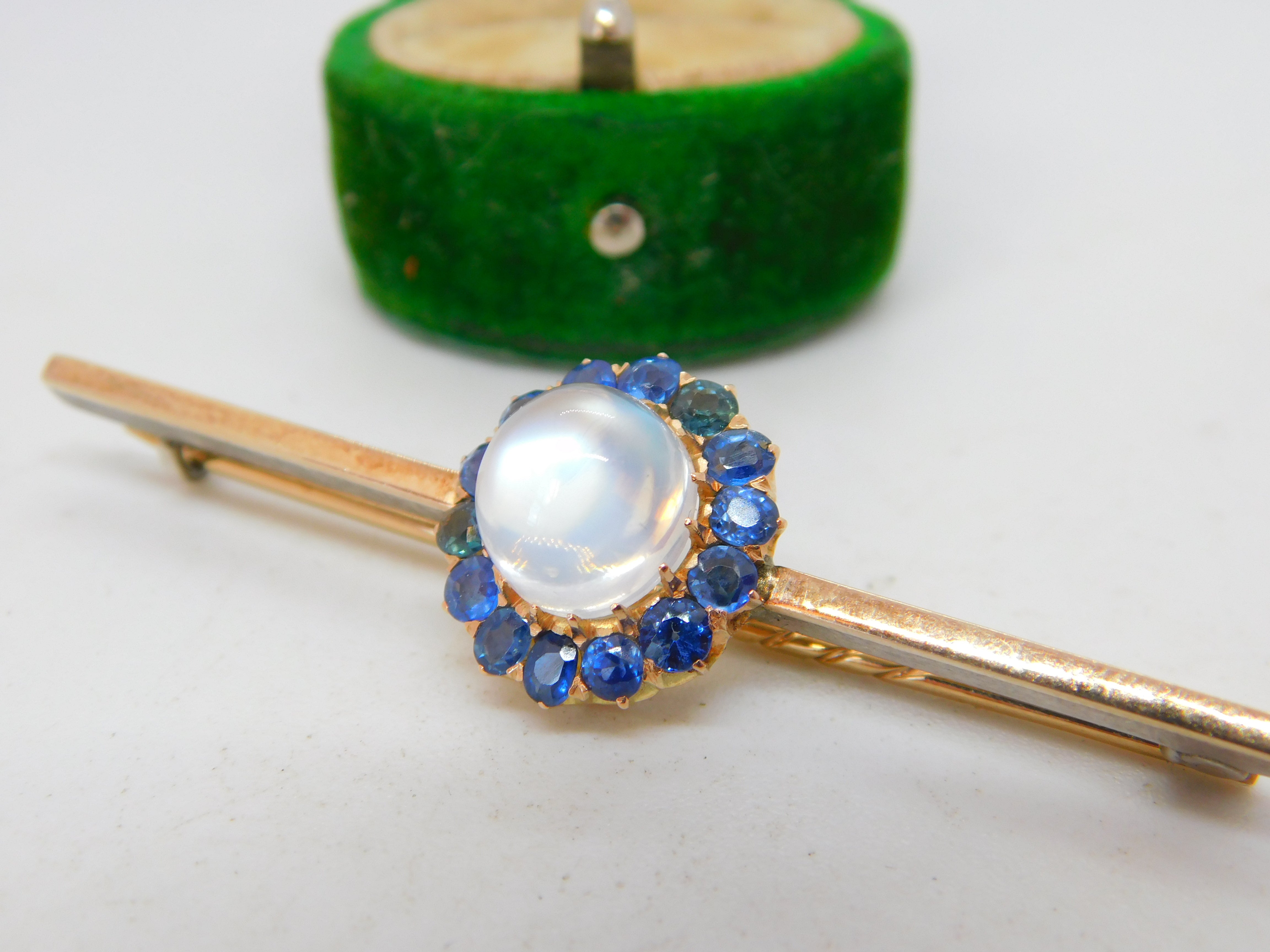 Victorian 18ct Gold, Cabochon Moonstone & Sapphire Brooch Antique c1890