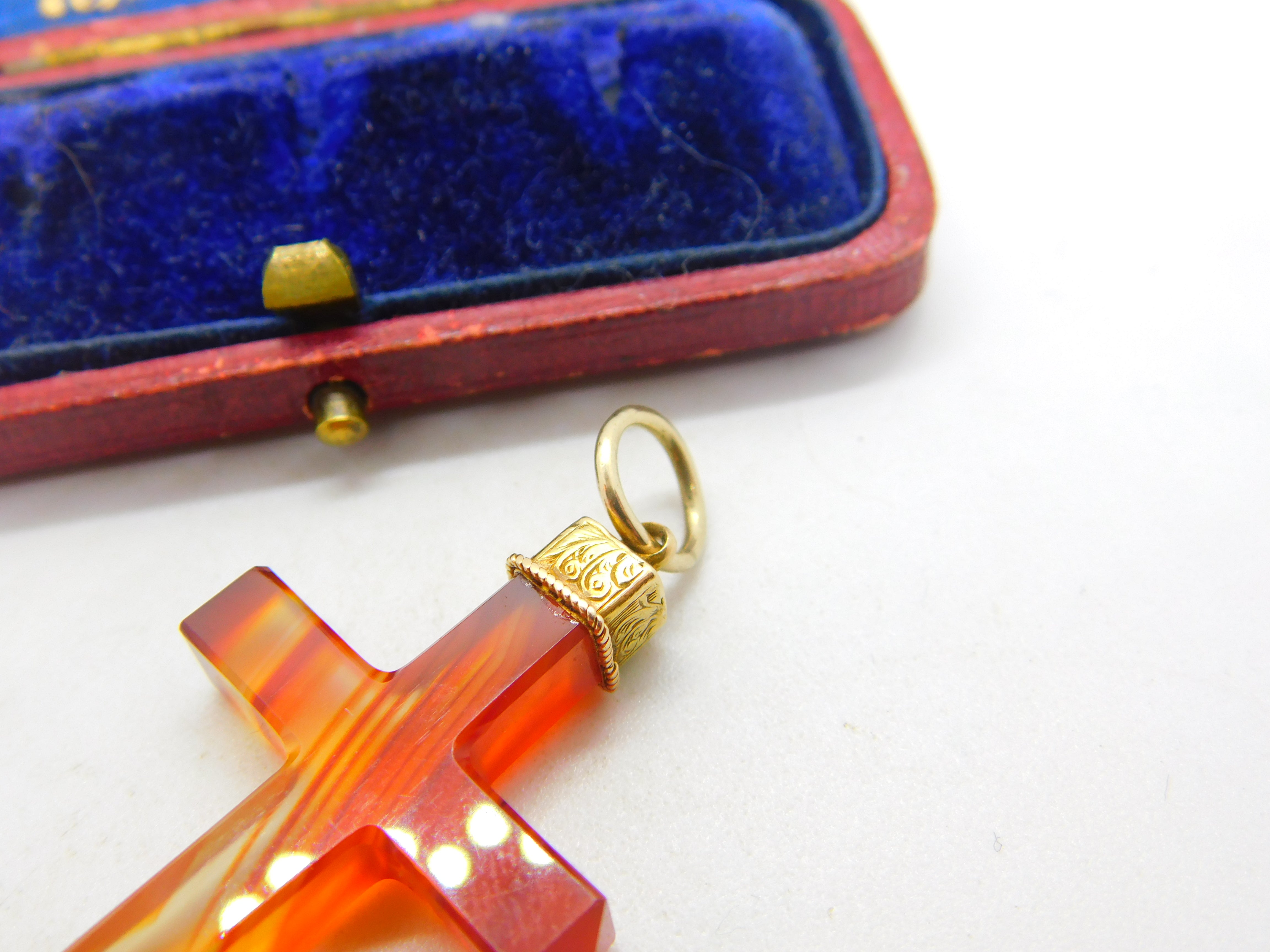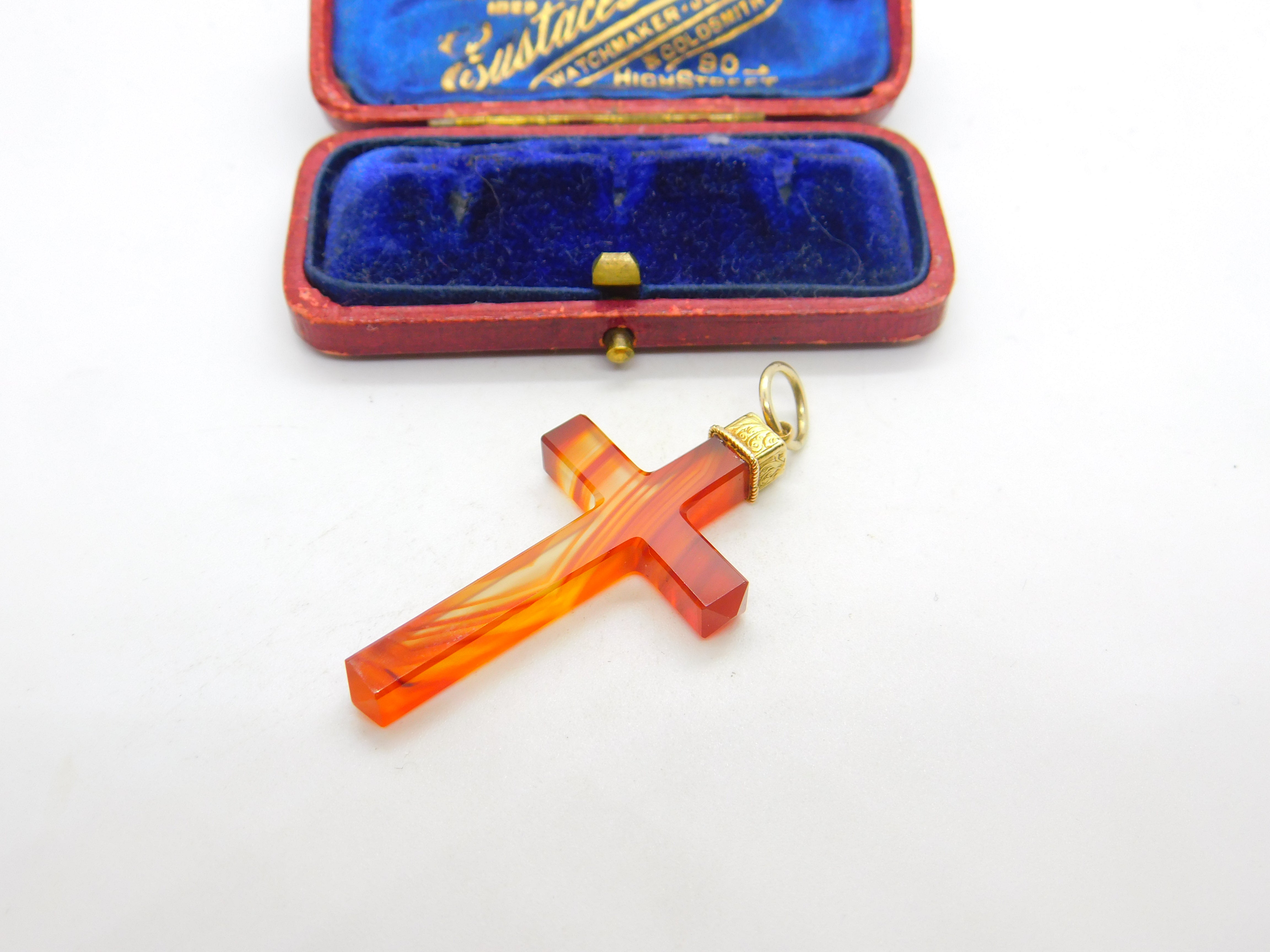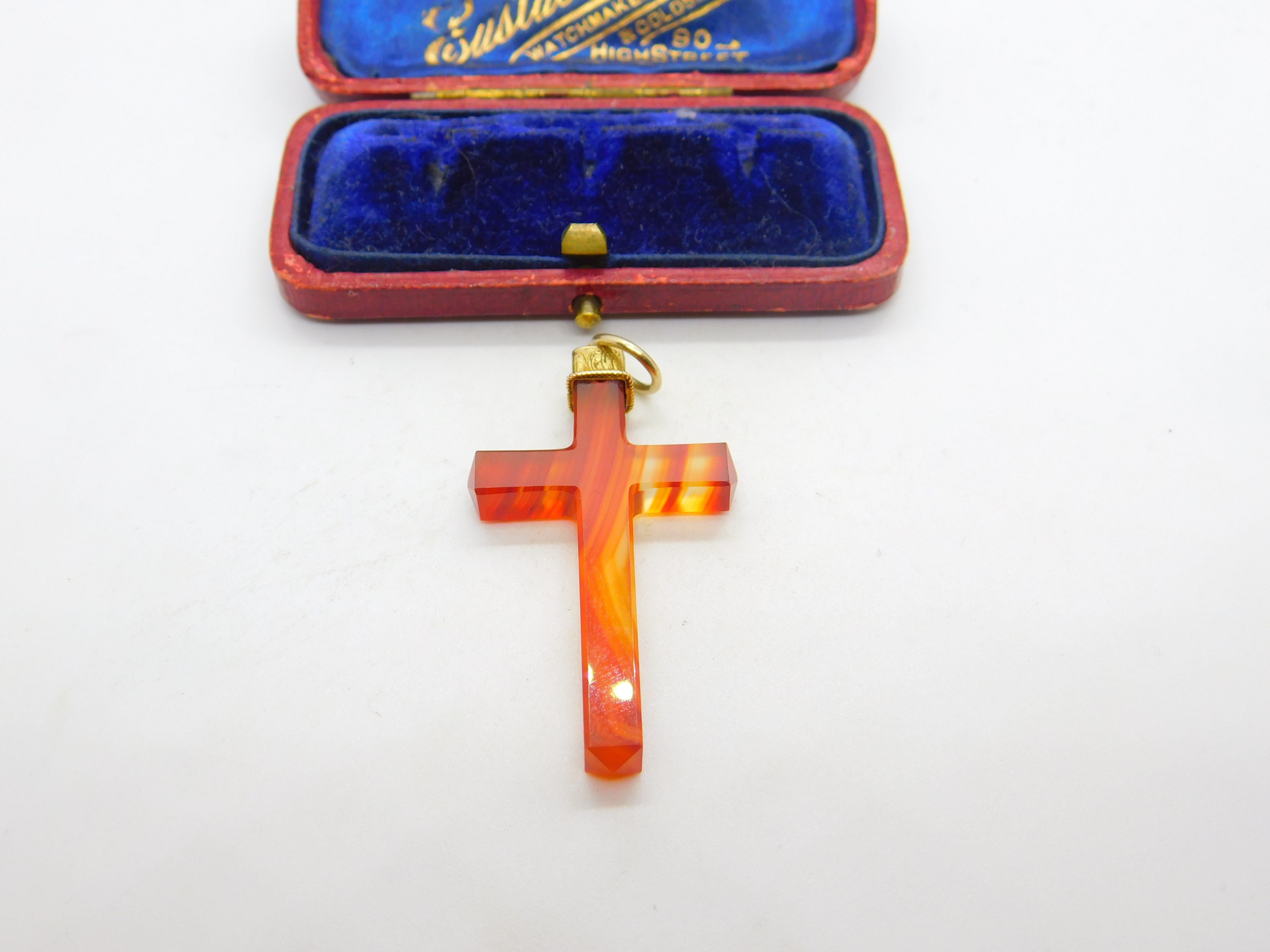 Details: A fantastic and wonderfully designed antique Victorian possibly Scottish 18ct yellow gold and carved red agate cross with lovely detailing c1860. The gold has been XRF tested. This is a wonderful item that would make a perfect gift or addition to any collection. The BOX pictured is for PRESENTATION ONLY and is NOT included in the listings but used to frame the pictures unless specifically stated otherwise.