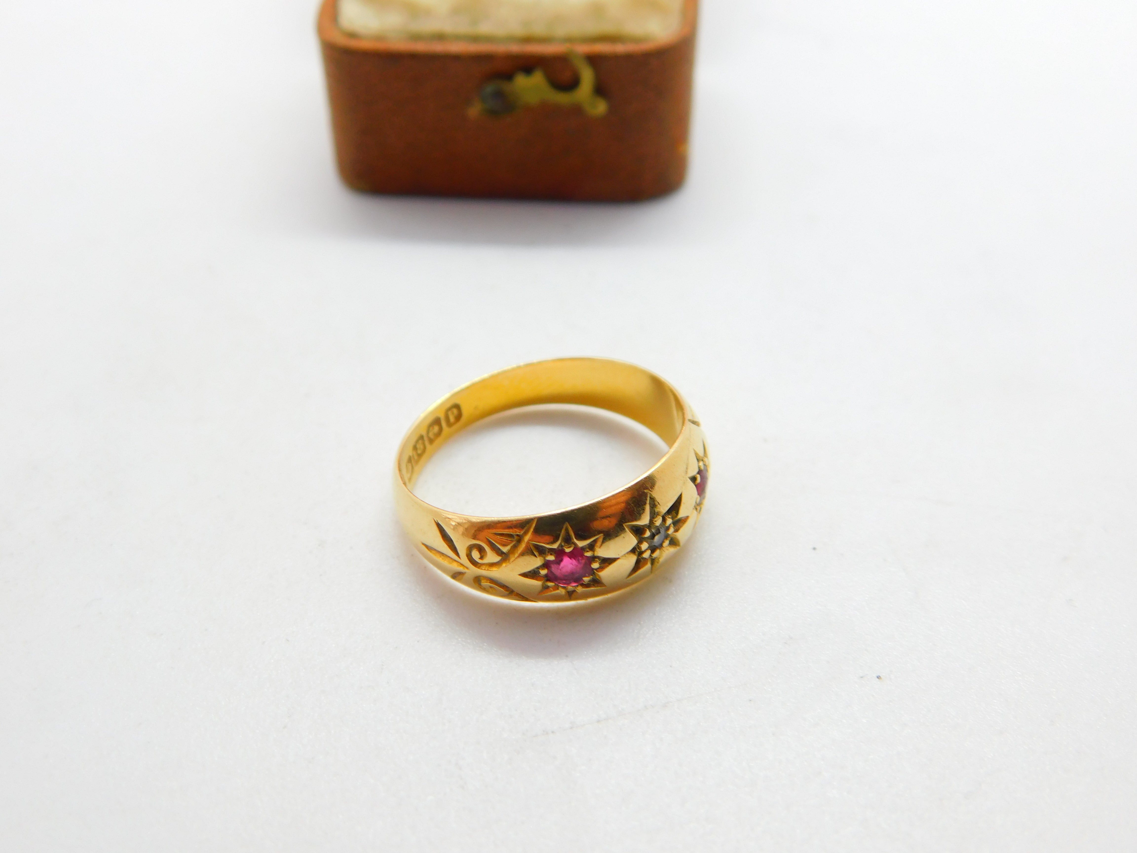 Details: A fantastic and wonderfully designed antique Victorian 18ct yellow gold boat ring or gypsy ring with lovely detailing hallmarked Birmingham 1889 to the interior band. The stones have all been tested. This is a wonderful item that would make a perfect gift or addition to any collection. The BOX pictured is for PRESENTATION ONLY and is NOT included in the listings but used to frame the pictures unless specifically stated otherwise.