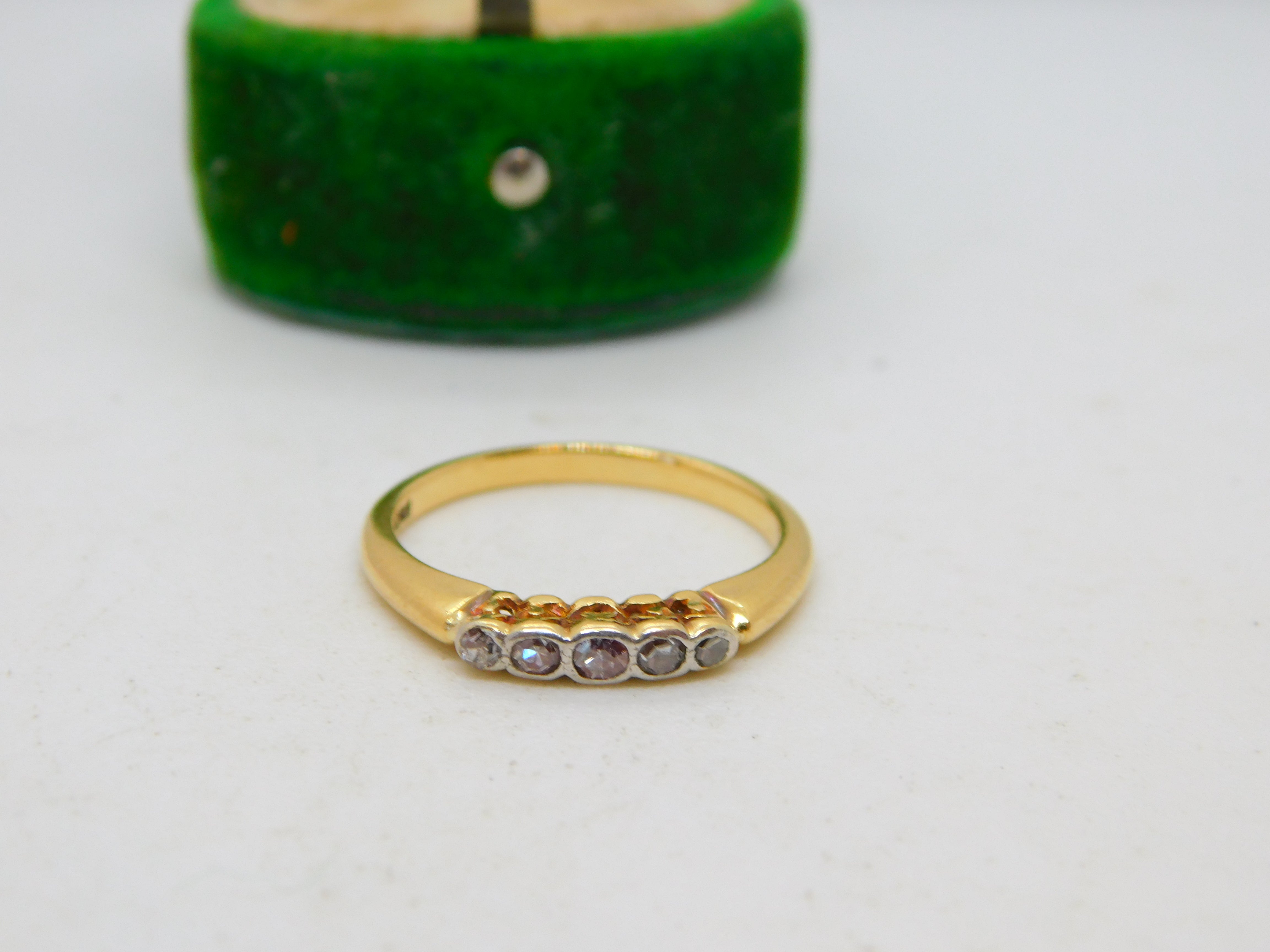 Victorian 18ct Gold & Five-Stone Diamond Band Ring Antique c1890