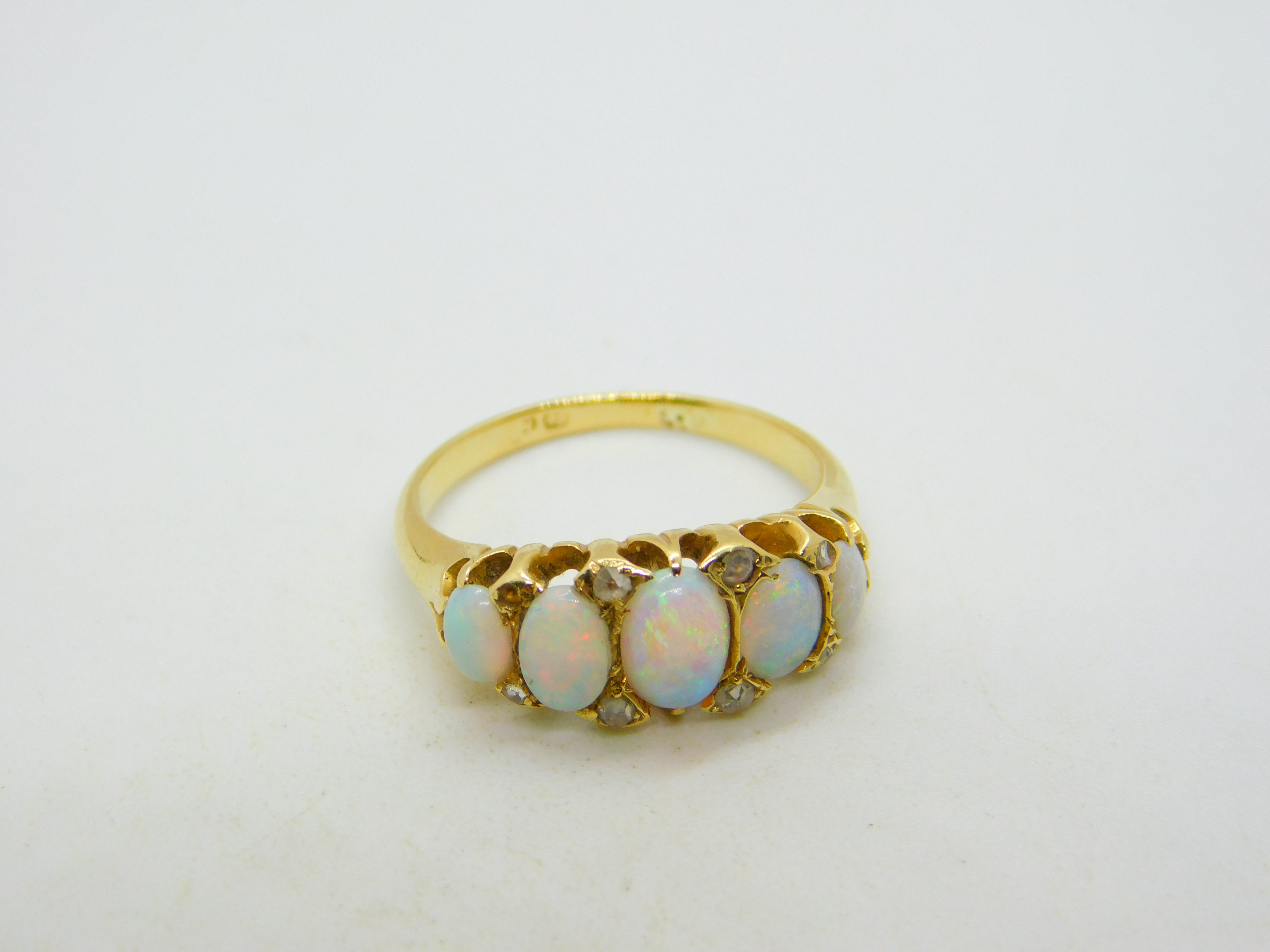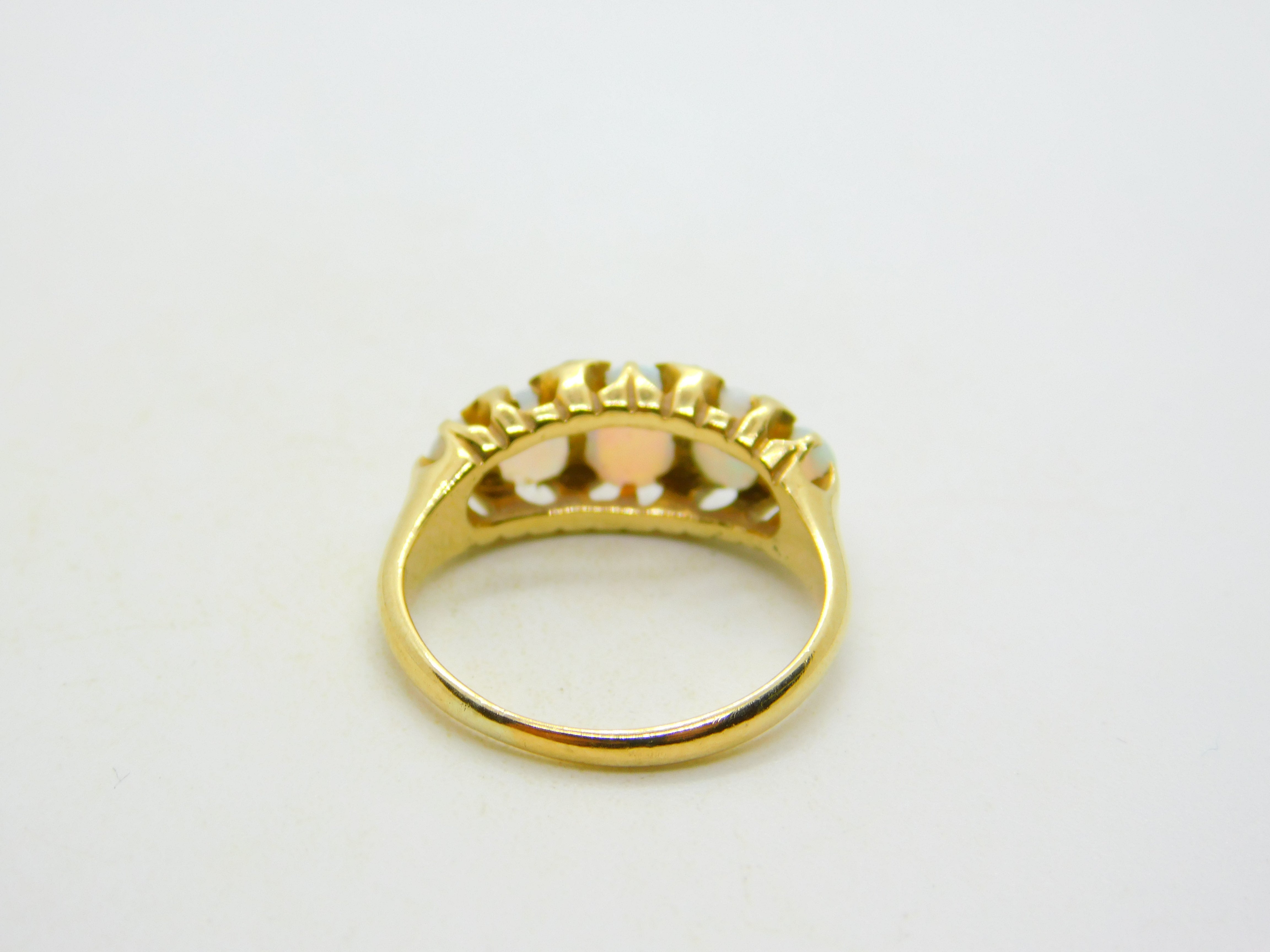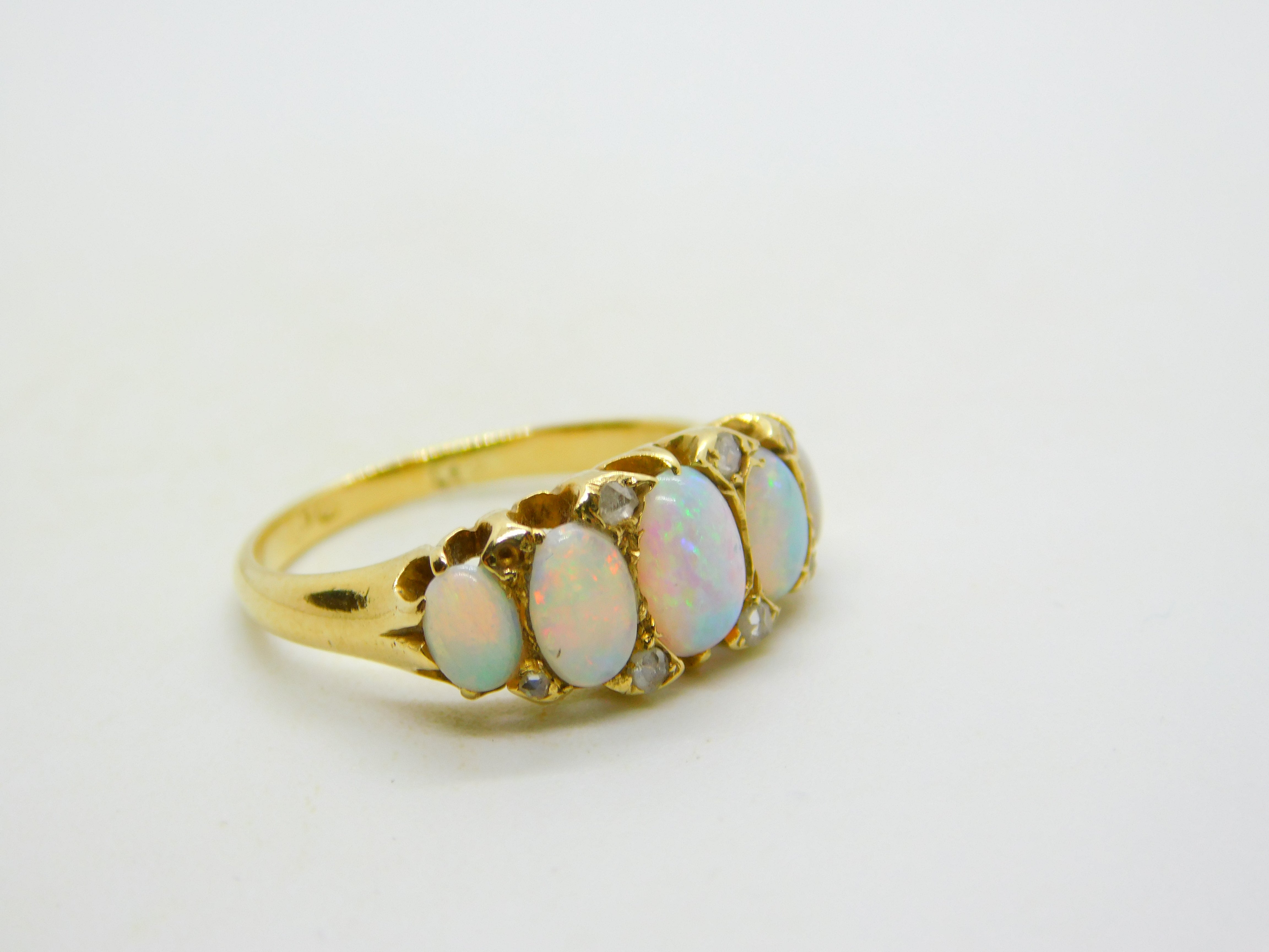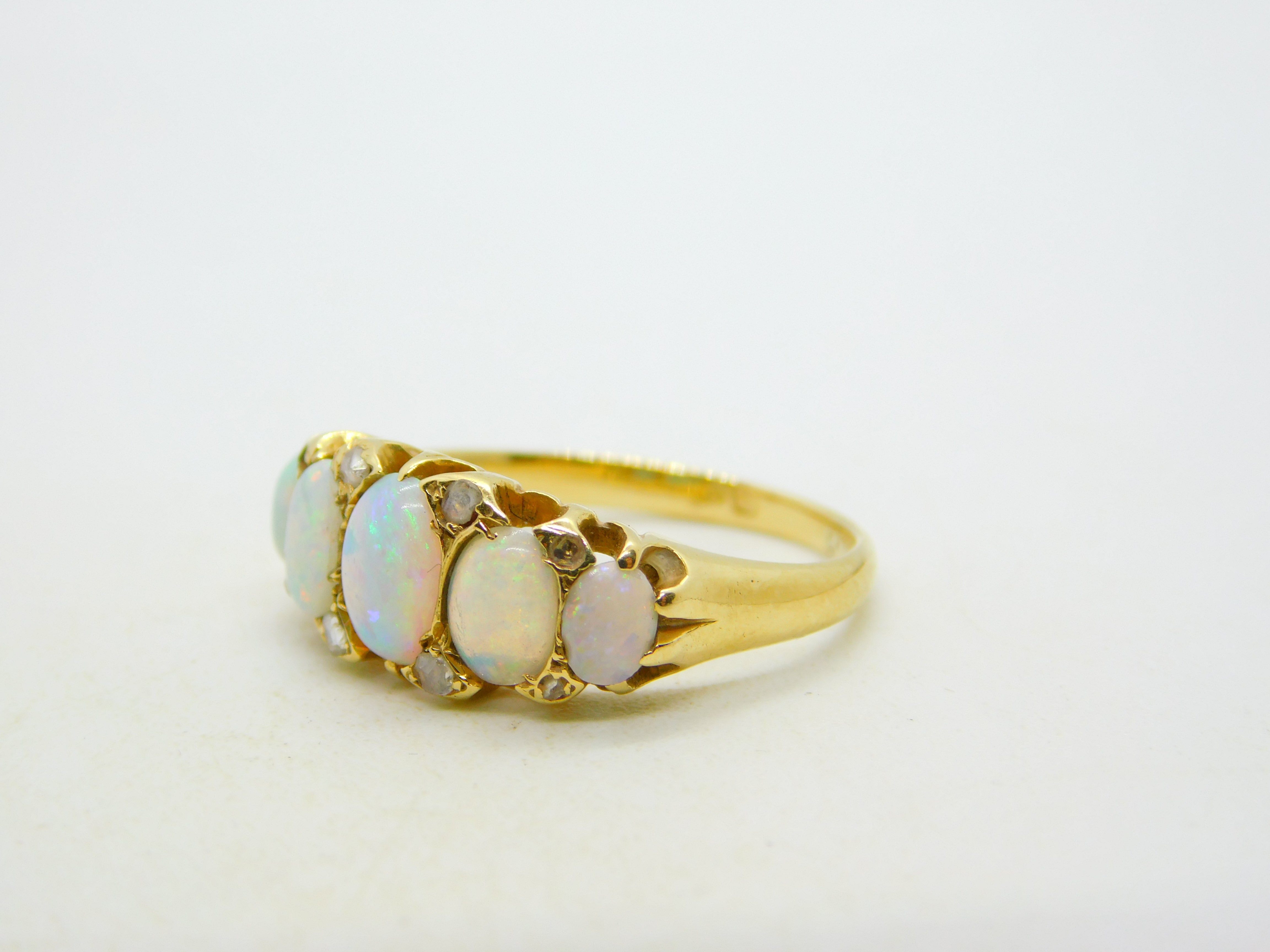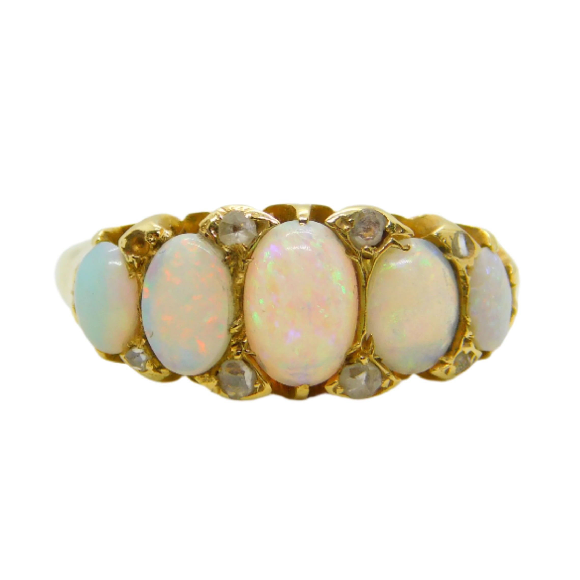 Victorian 18ct Gold Graduating Five-Stone Opal & Diamond Boat Ring Antique c1880