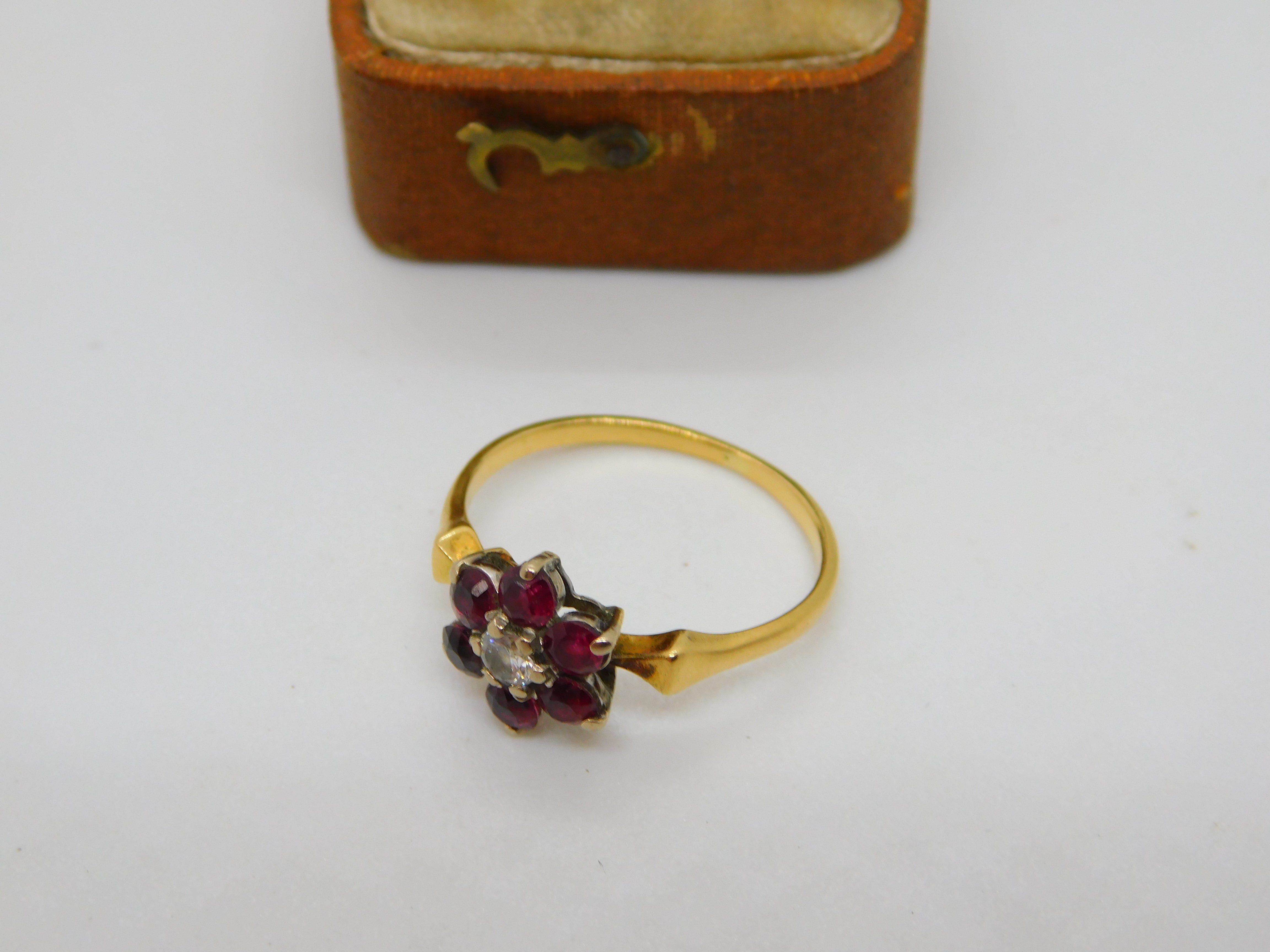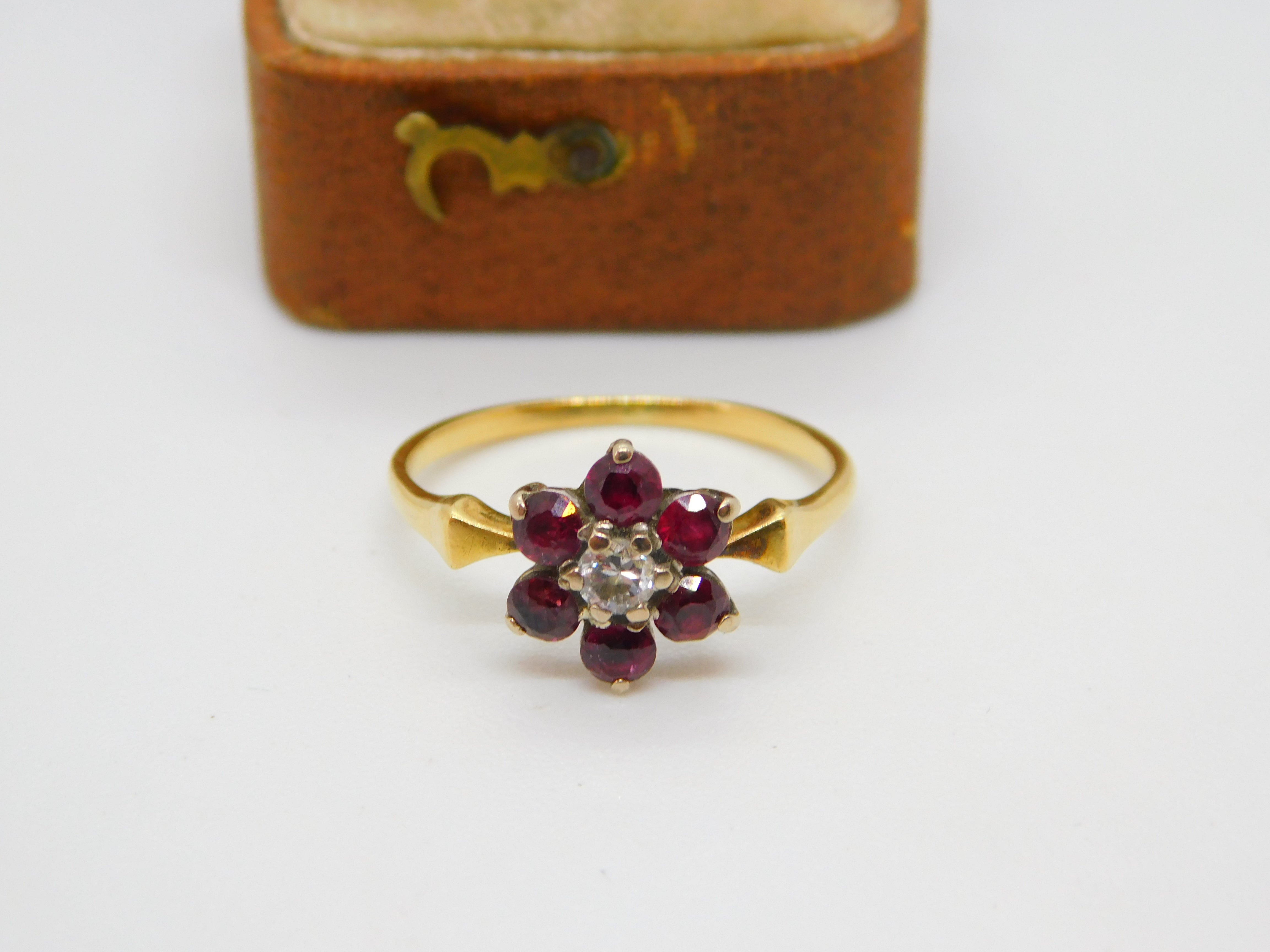 Details: A fantastic and wonderfully designed antique Victorian 18ct yellow gold daisy flower cluster ring set with rubies around a 0.1ct rose cut diamond c1860, the gold has been XRF tested and all the stones have been tested. This is a wonderful item that would make a perfect gift or addition to any collection. The BOX pictured is for PRESENTATION ONLY and is NOT included in the listings but used to frame the pictures unless specifically stated otherwise.