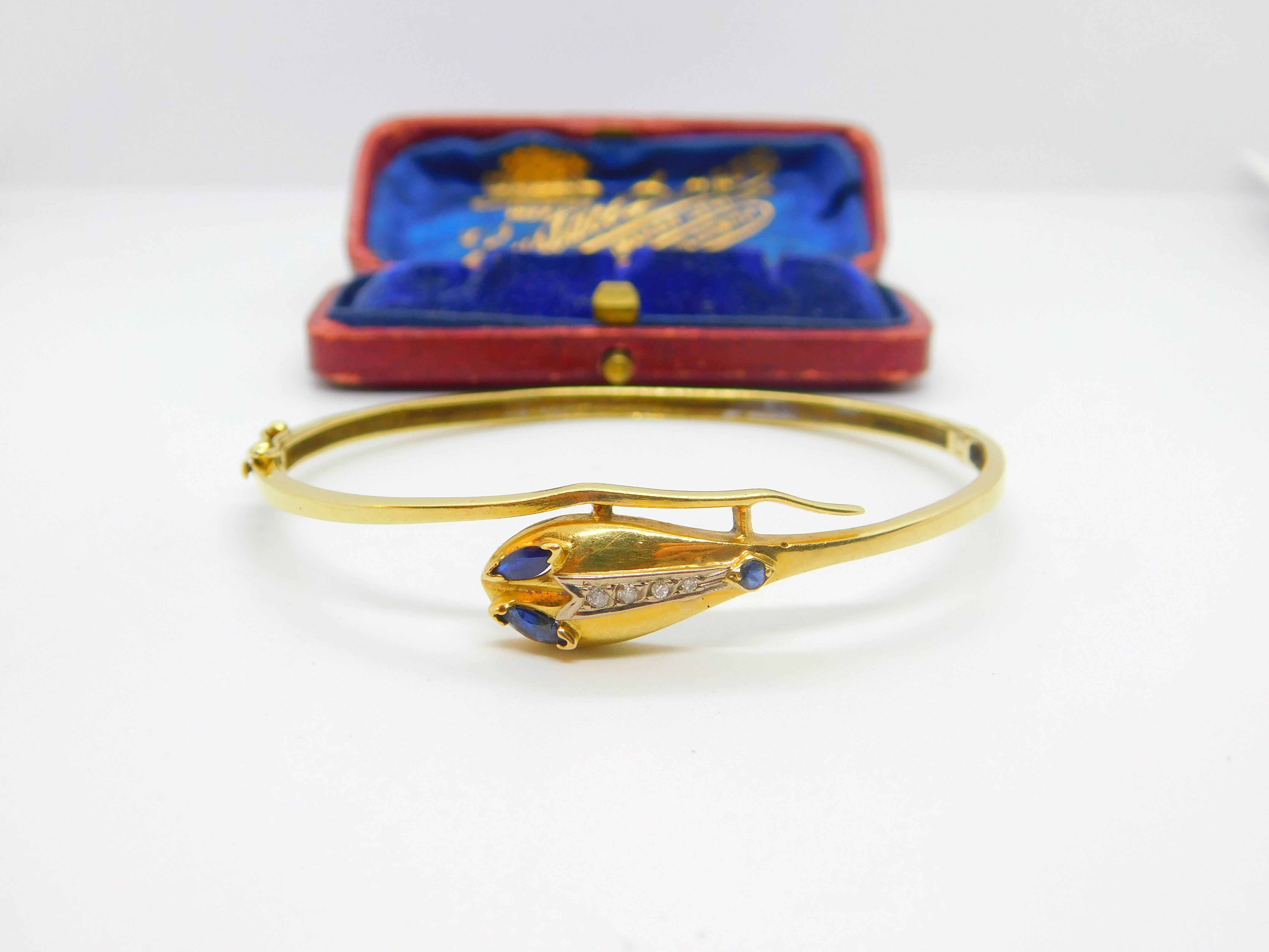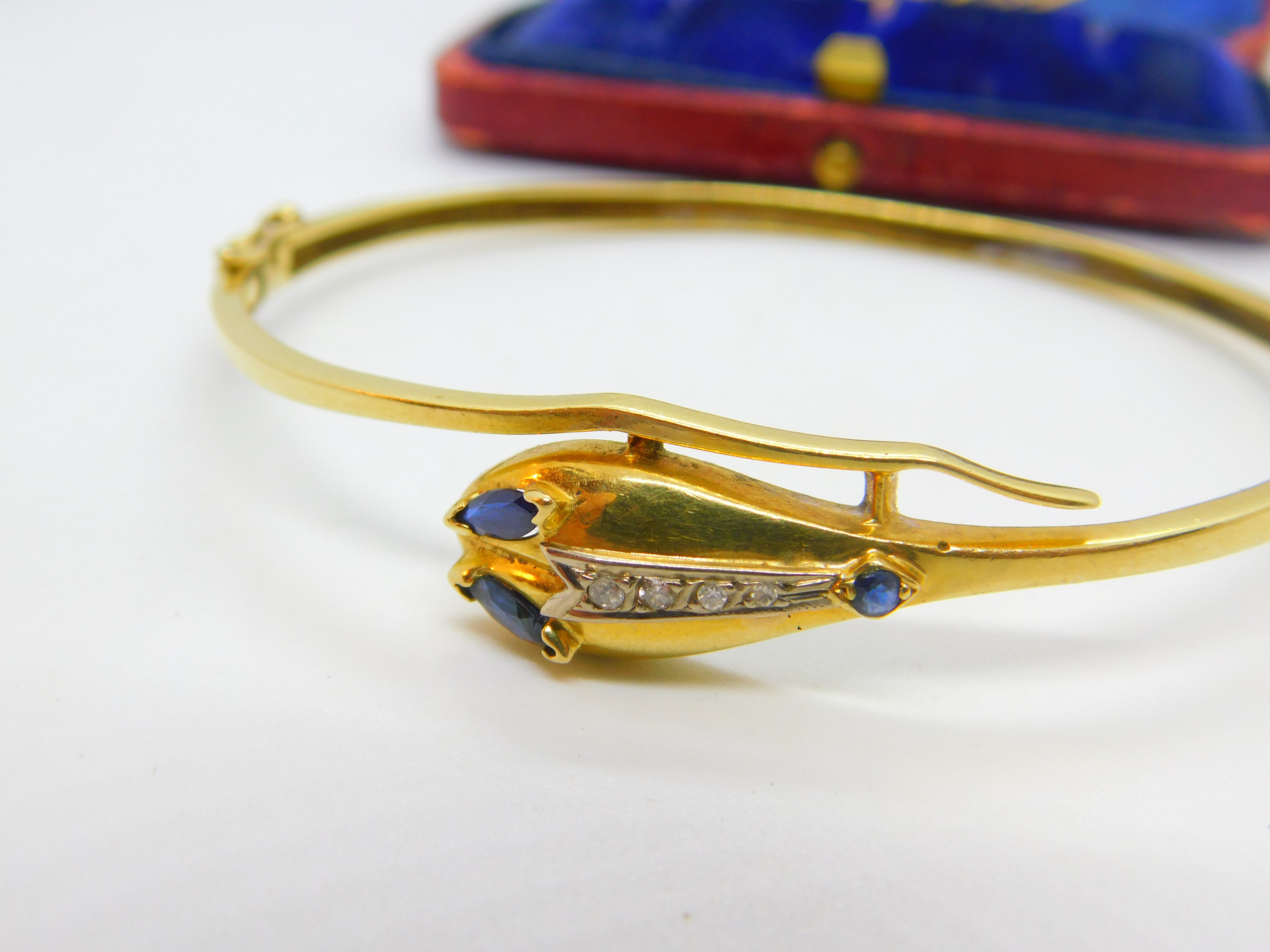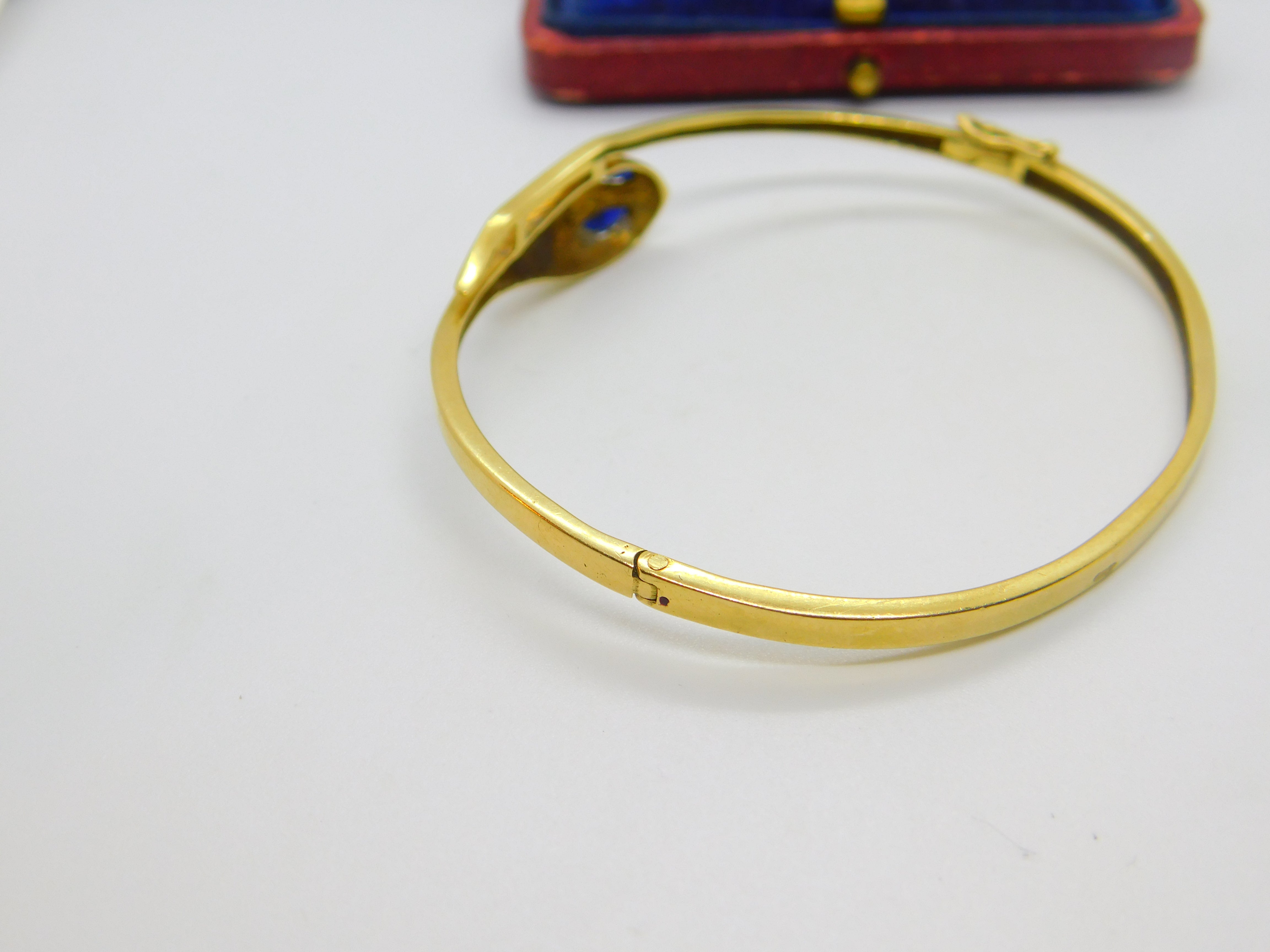 Victorian 18ct Gold, Sapphire & Diamond Serpent Snake Bangle Bracelet c1890