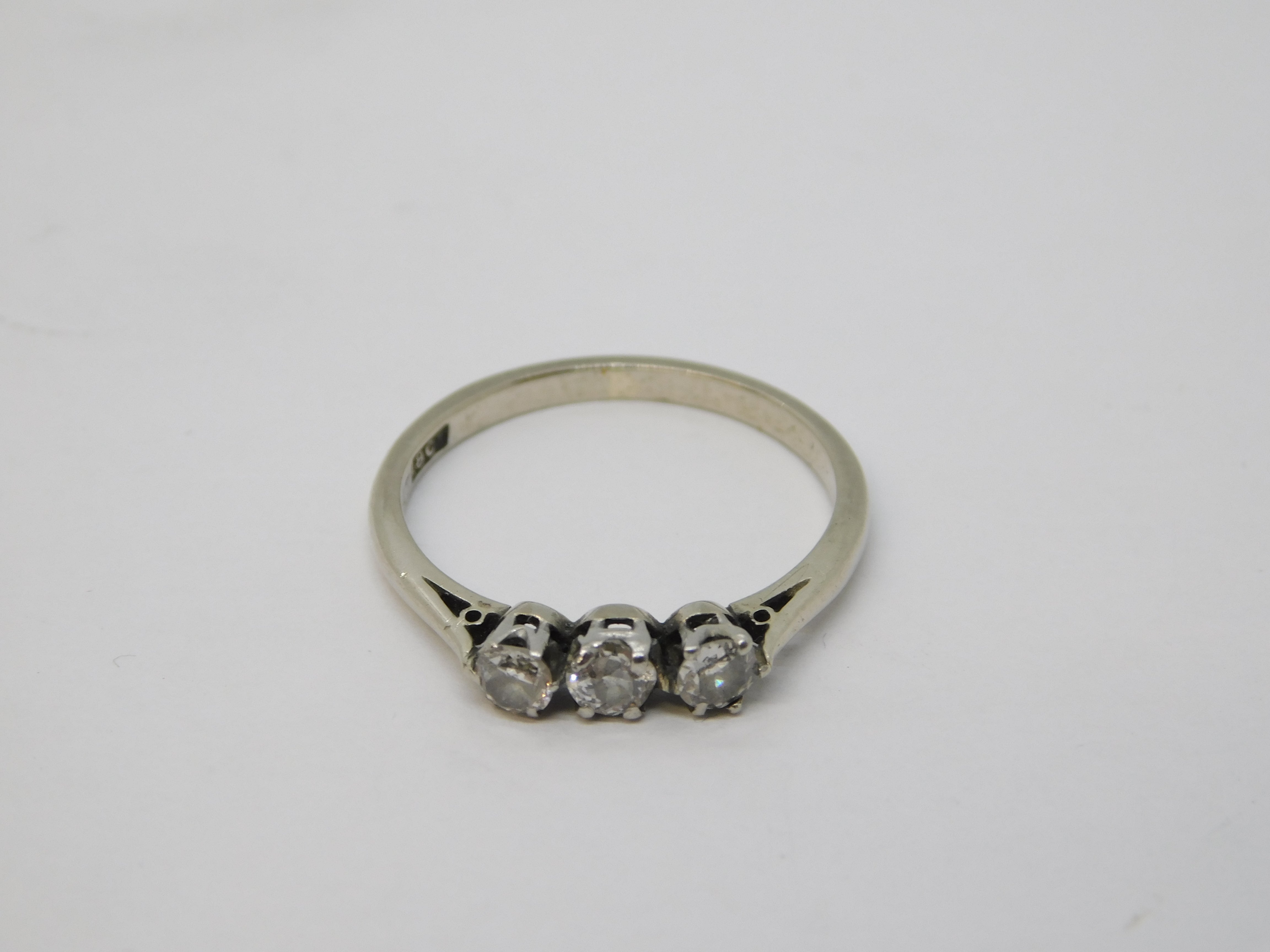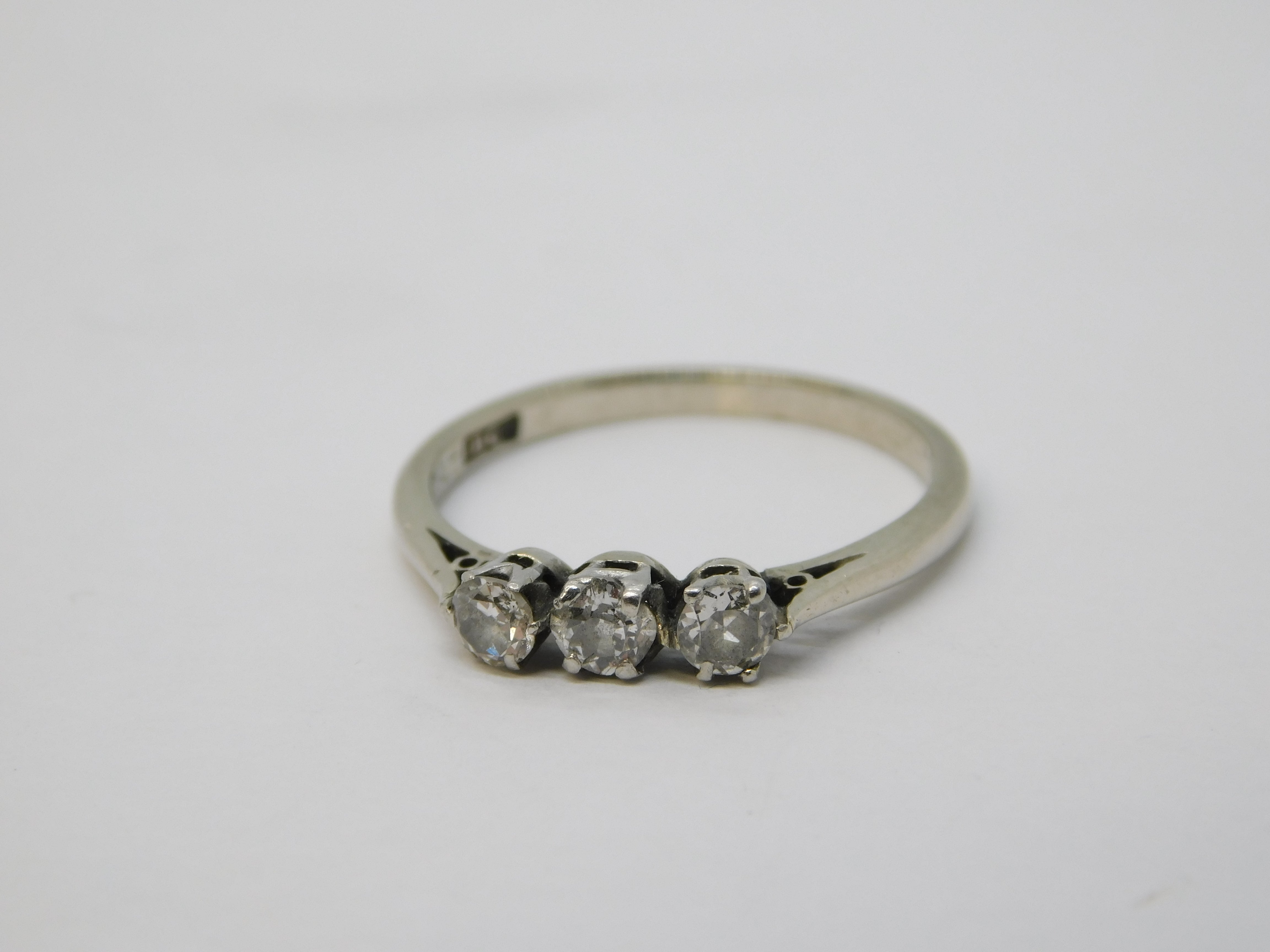 Victorian 18ct White Gold & 0.3ct Three-Stone Diamond Ring Antique c1890