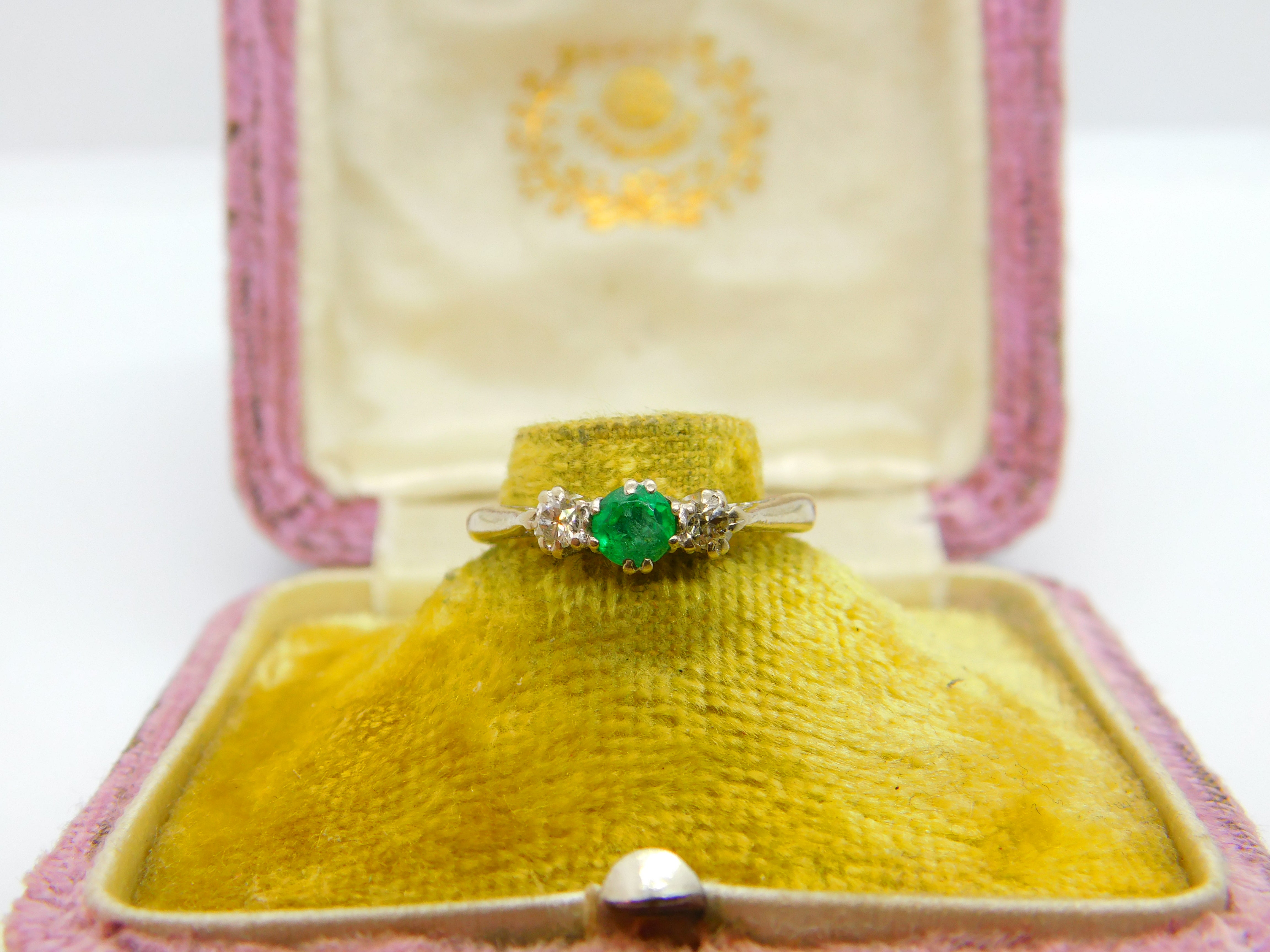 Details: A fantastic and wonderfully designed antique Victorian 18ct yellow gold dress ring set with 0.25ct emerald surrounded by 0.1ct natural diamonds hallmarked to the interior band c1900. The stones have been tested. This is a wonderful item that would make a perfect gift or addition to any collection. The BOX pictured is for PRESENTATION ONLY and is NOT included in the listings but used to frame the pictures unless specifically stated otherwise.
