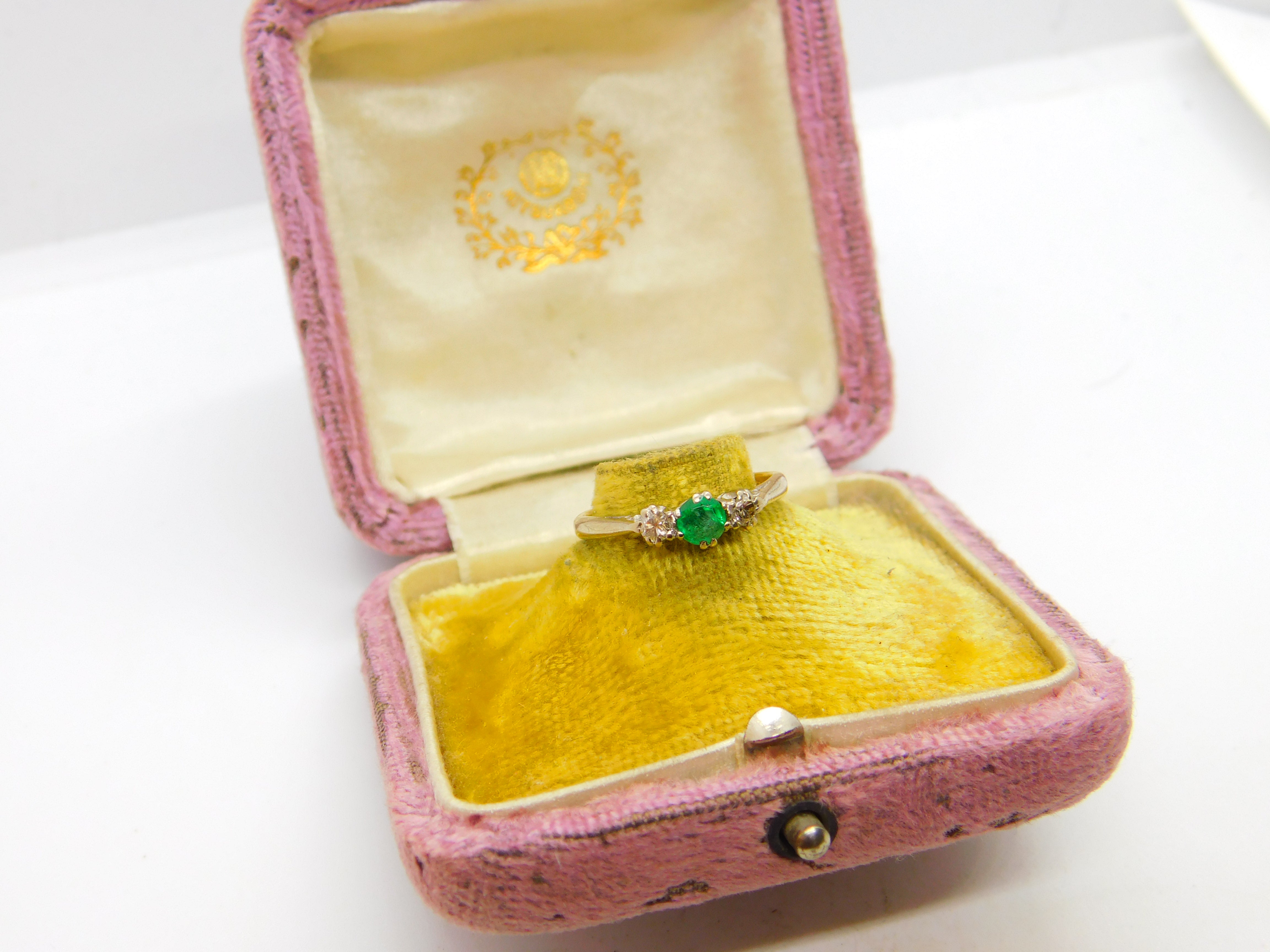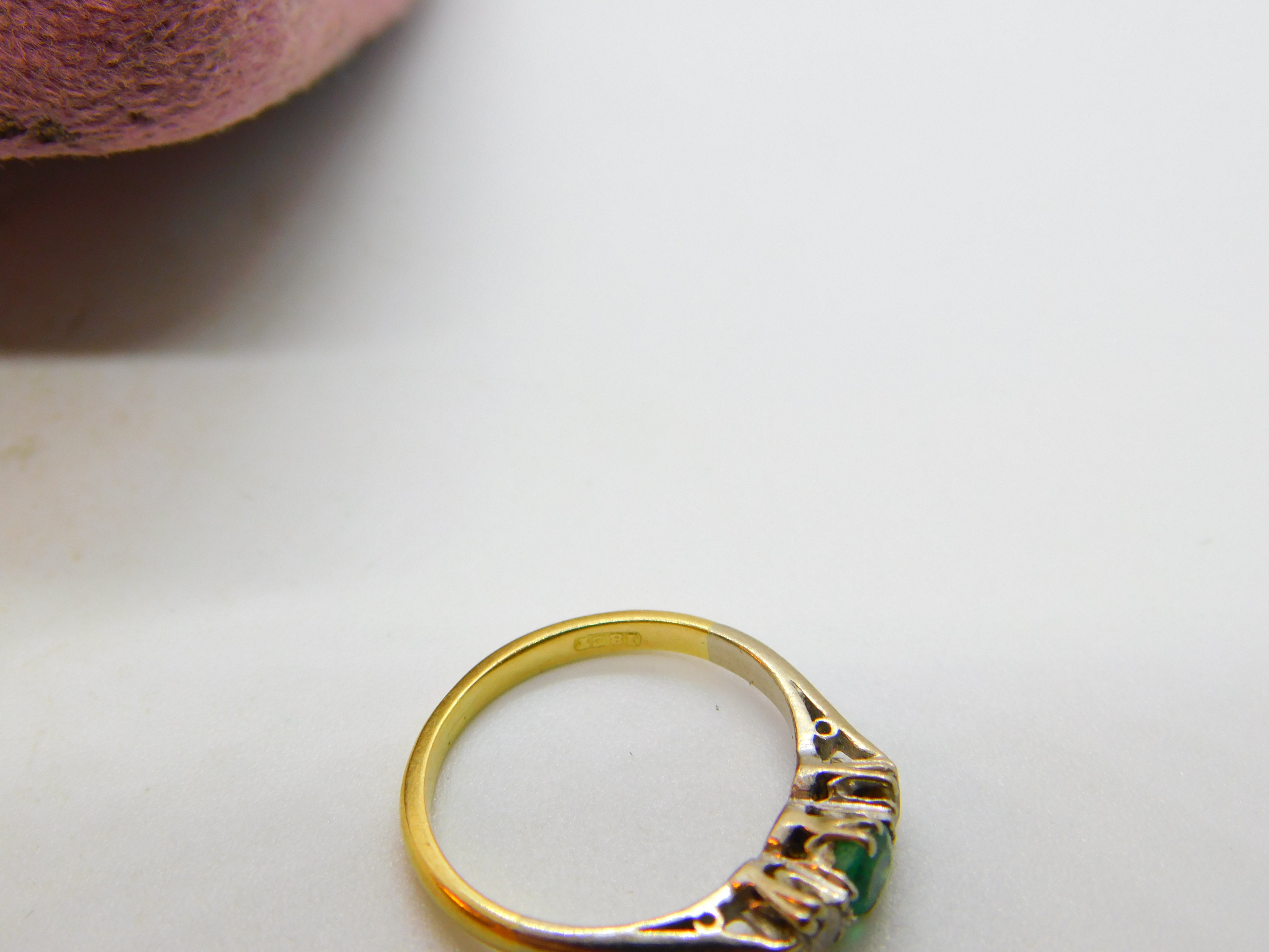 Victorian 18ct Yellow Gold, 0.25ct Emerald & Diamond Dress Ring c1900 Antique