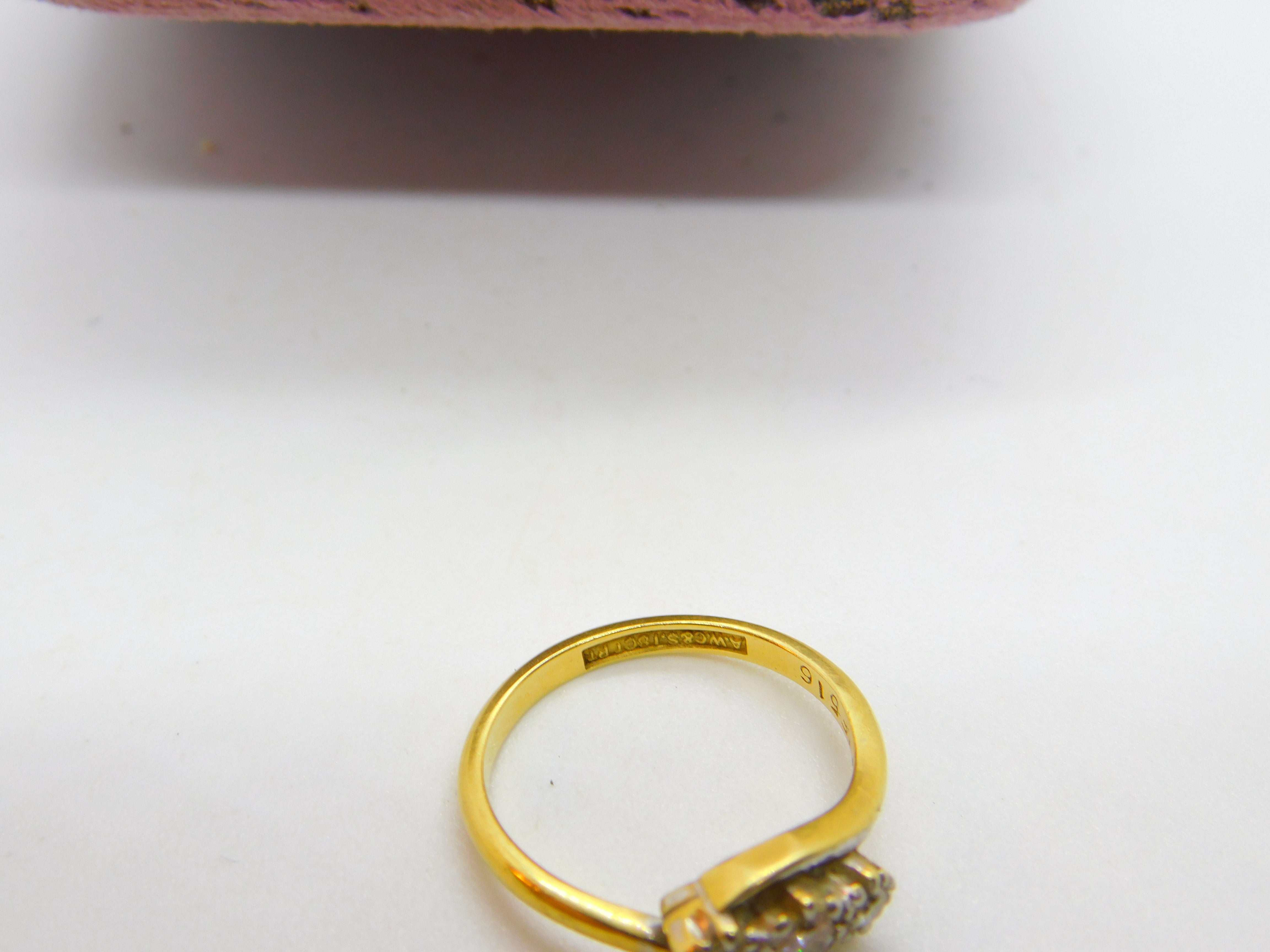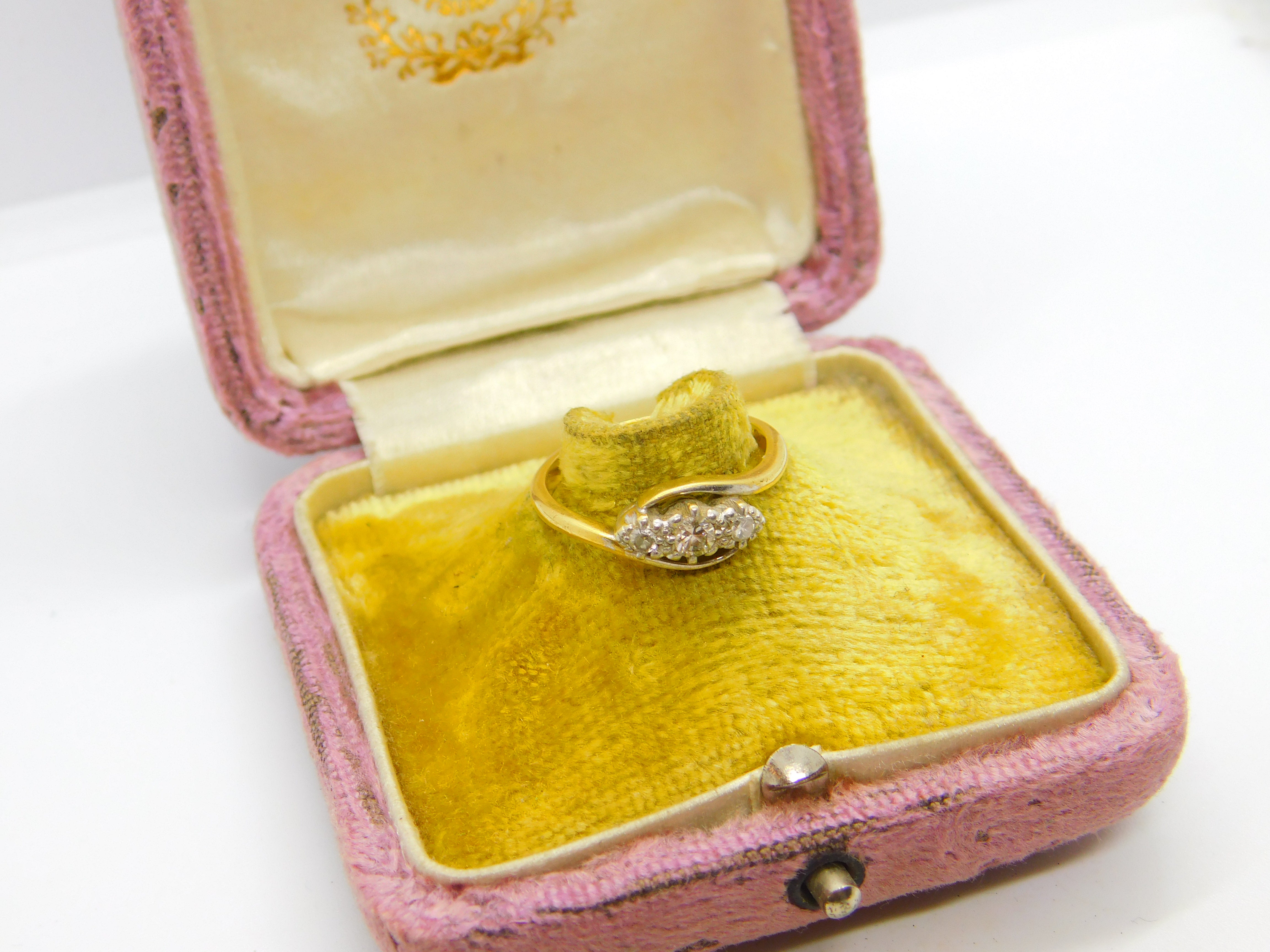 Victorian 18ct Yellow Gold & 0.2ct Diamond Crossover Ring Antique c1890