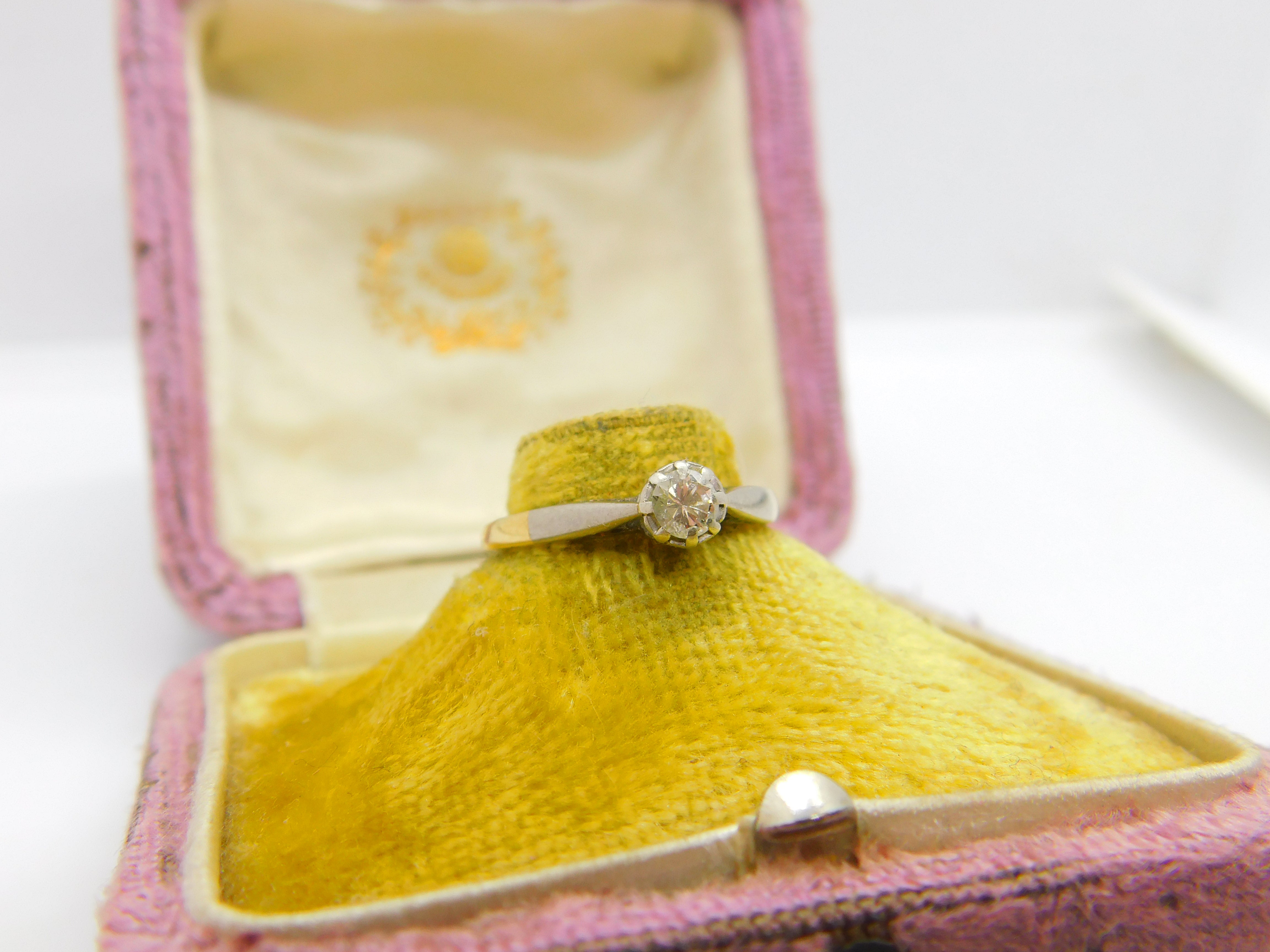 Victorian 18ct Yellow Gold & 0.2ct Diamond Solitaire Ring Antique c1900