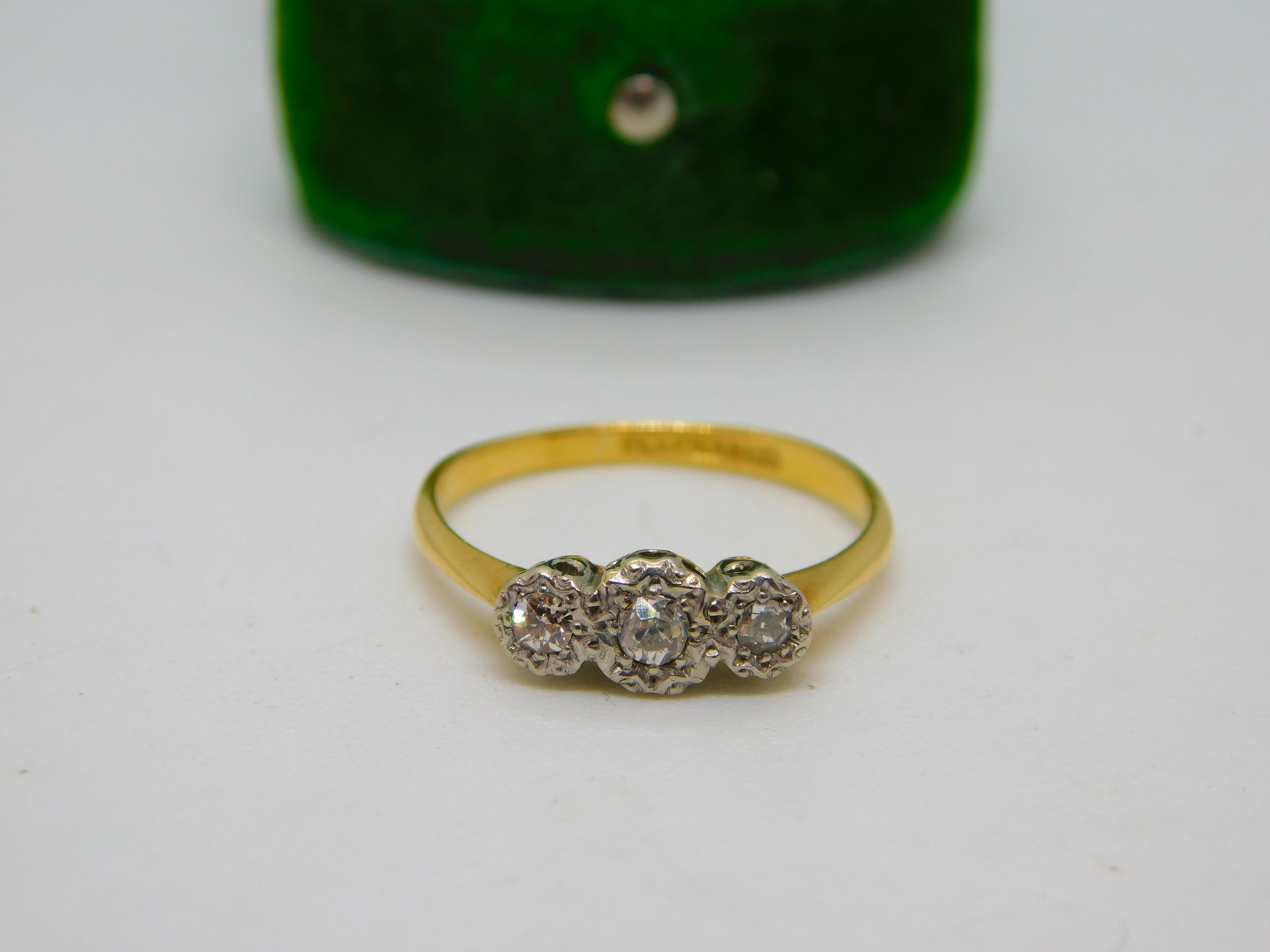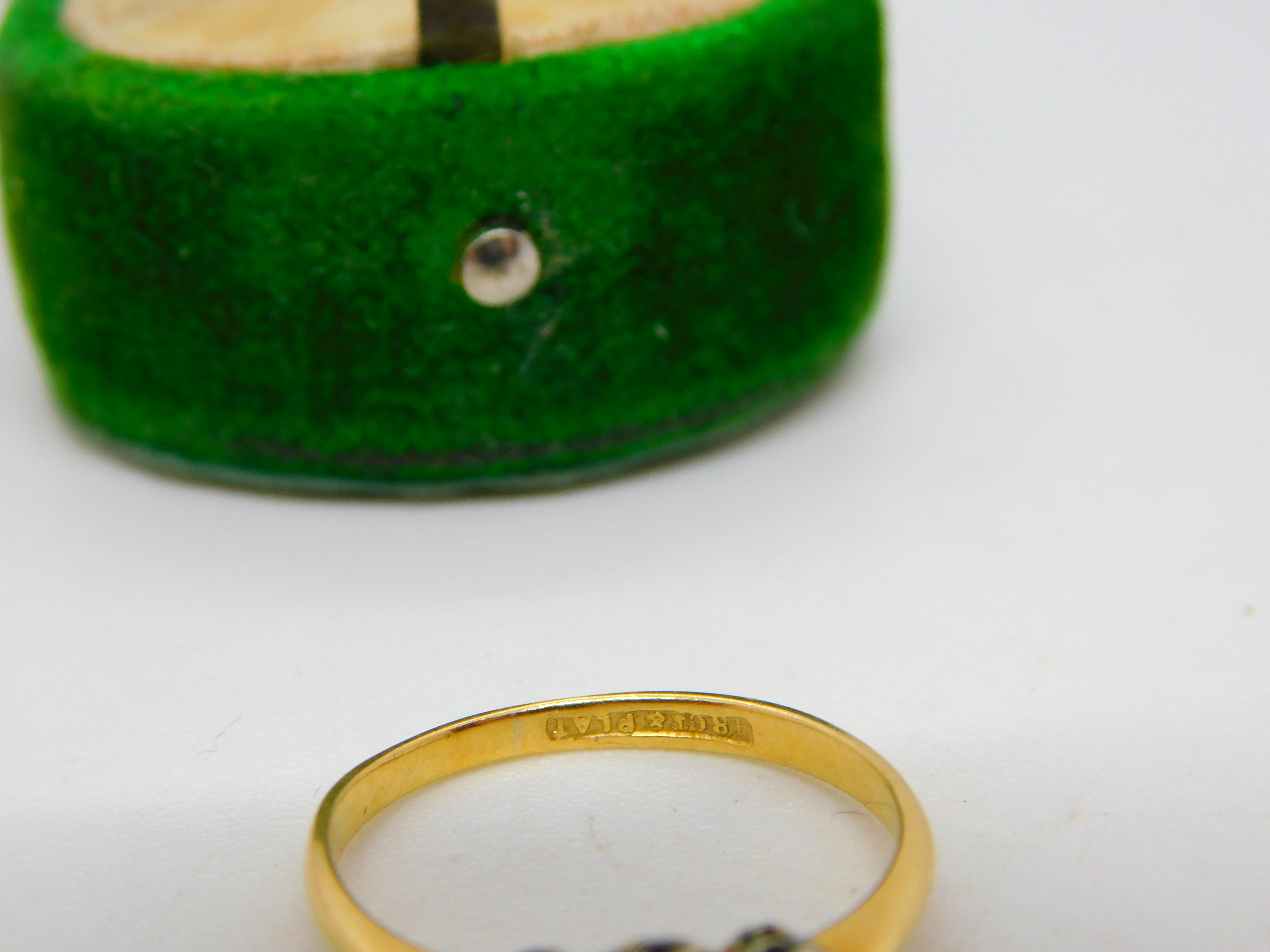 Victorian 18ct Yellow Gold & 0.2ct Diamond Three Stone Dress Ring Antique c1890