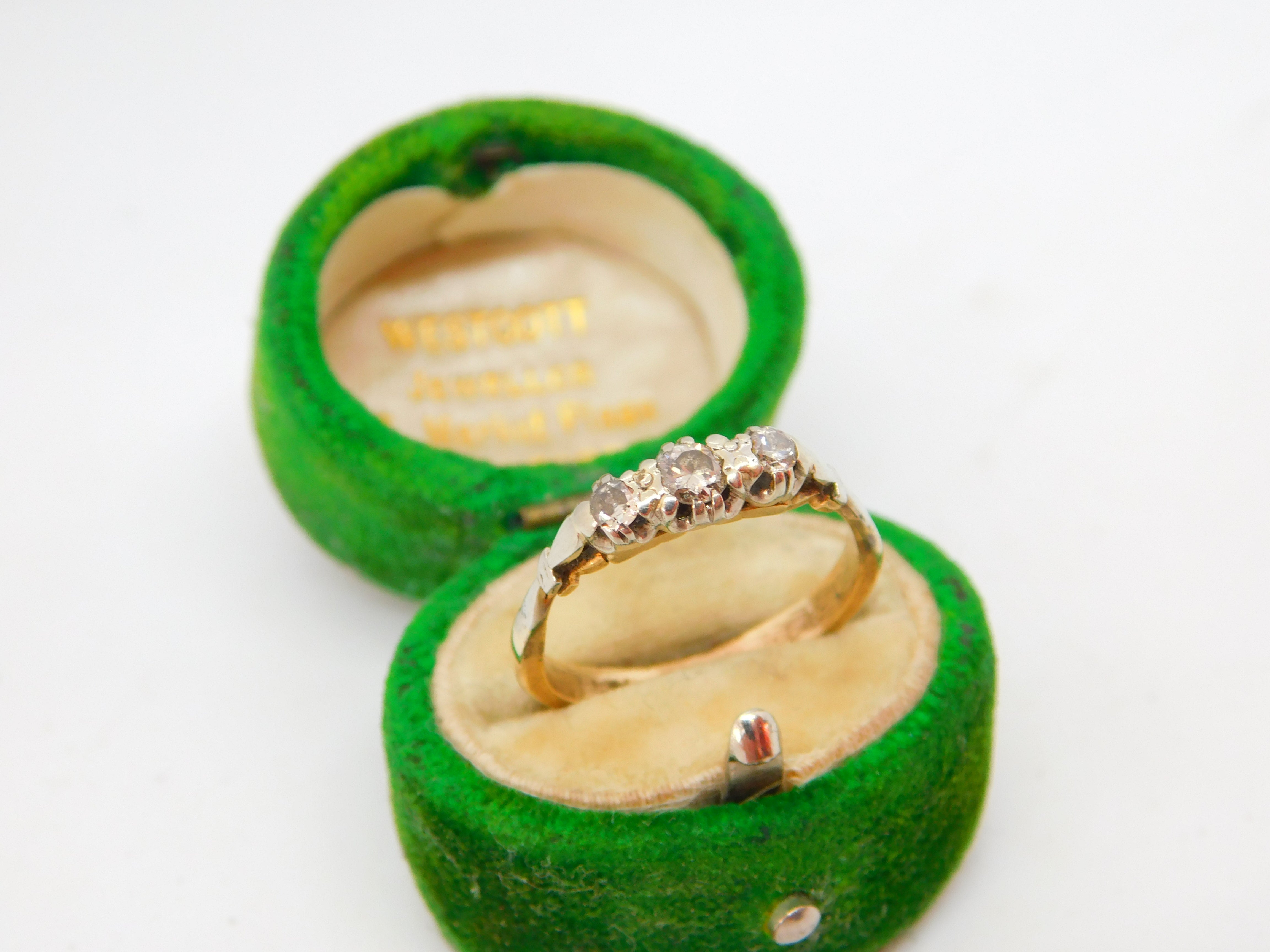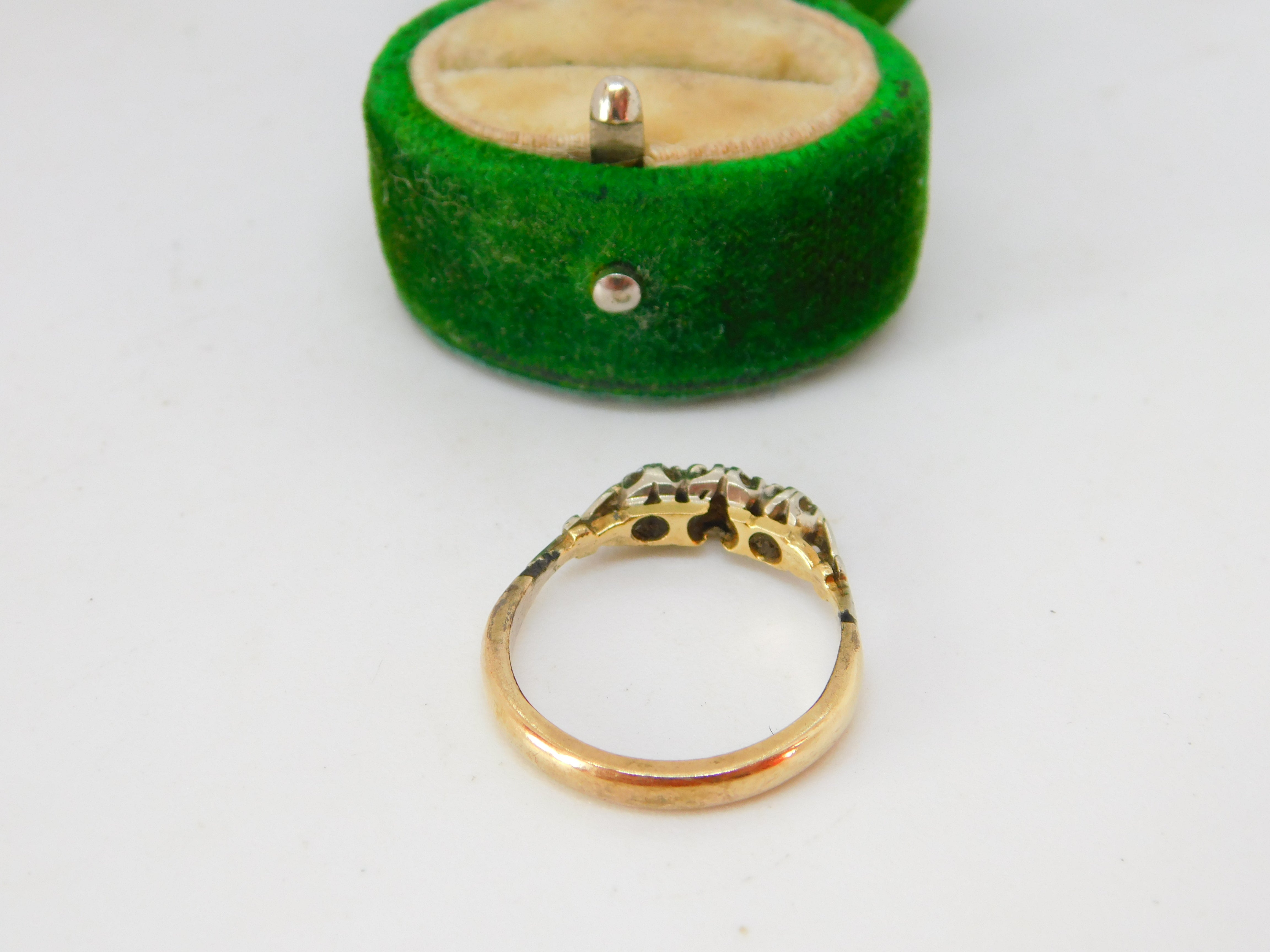 Victorian 18ct Yellow Gold & 0.2ct Diamond Three-Stone Ring Antique c1890