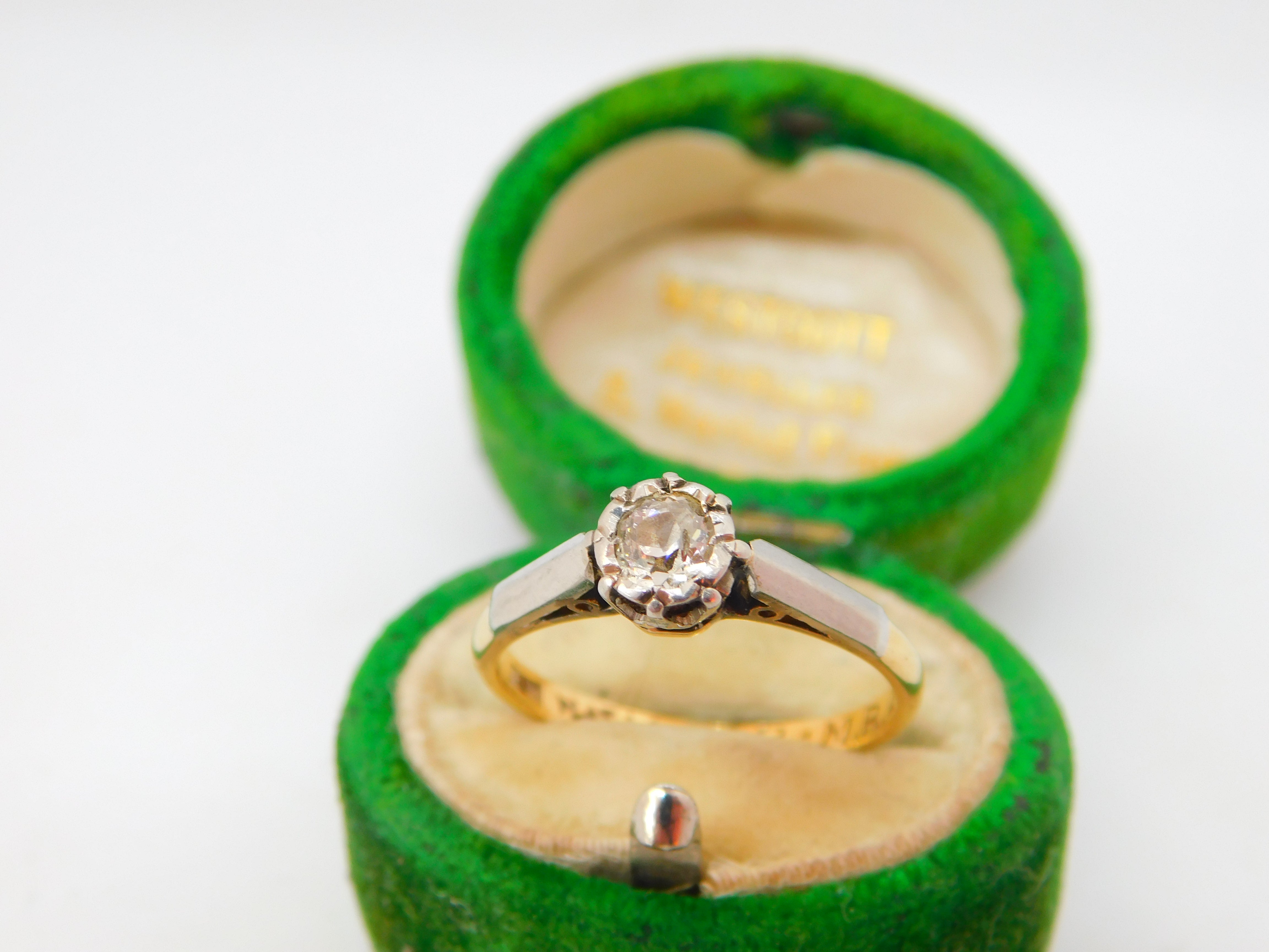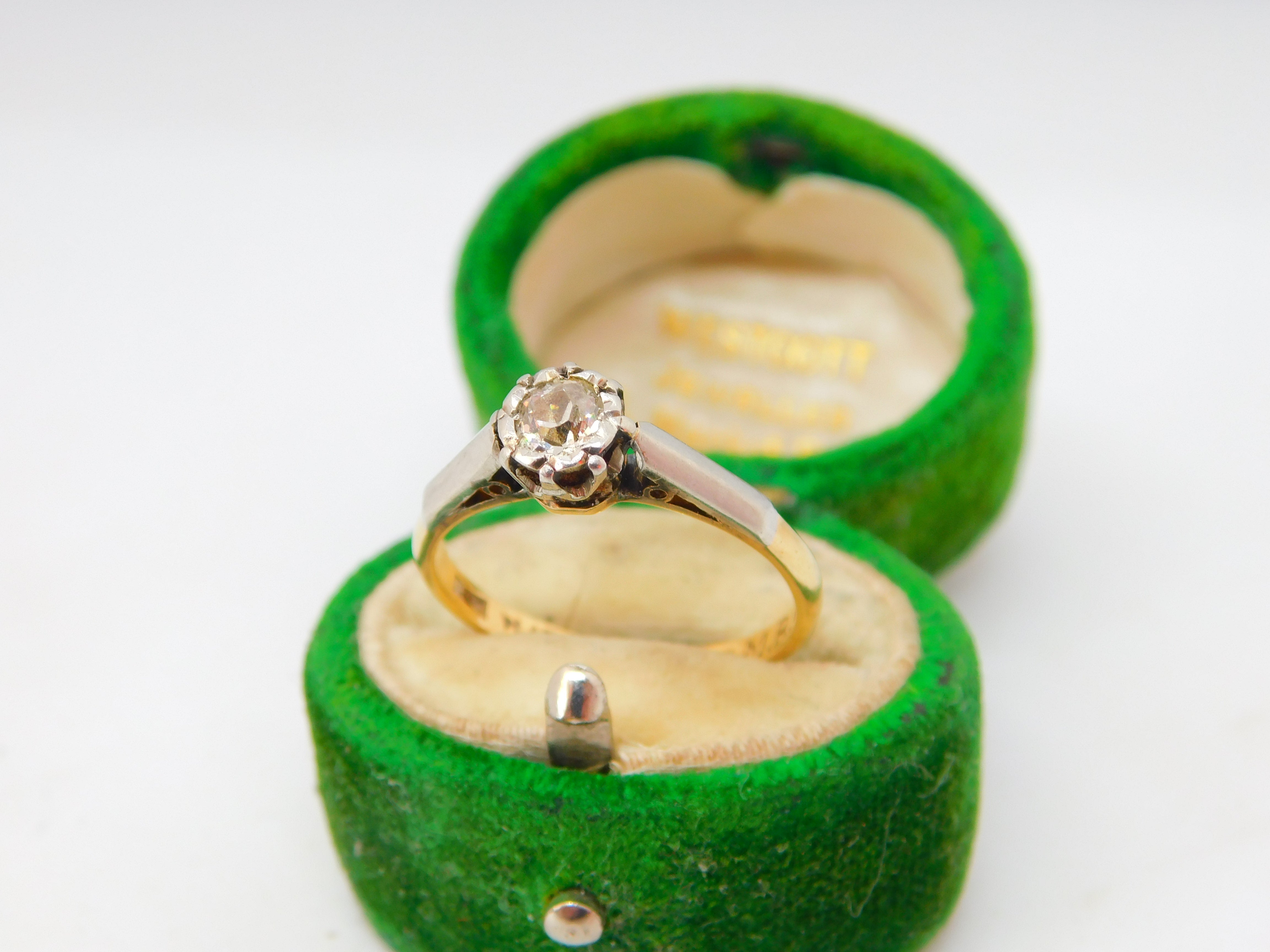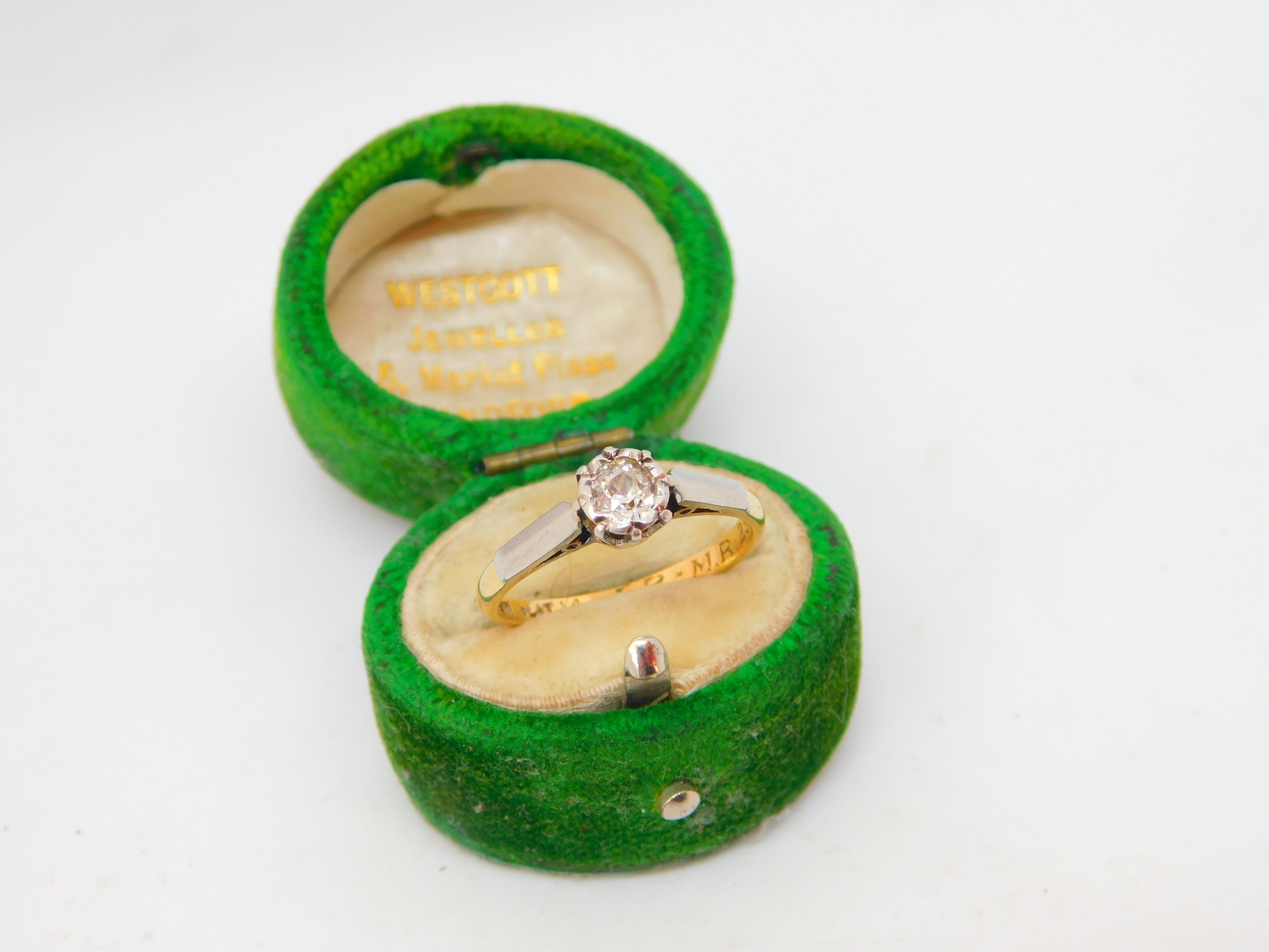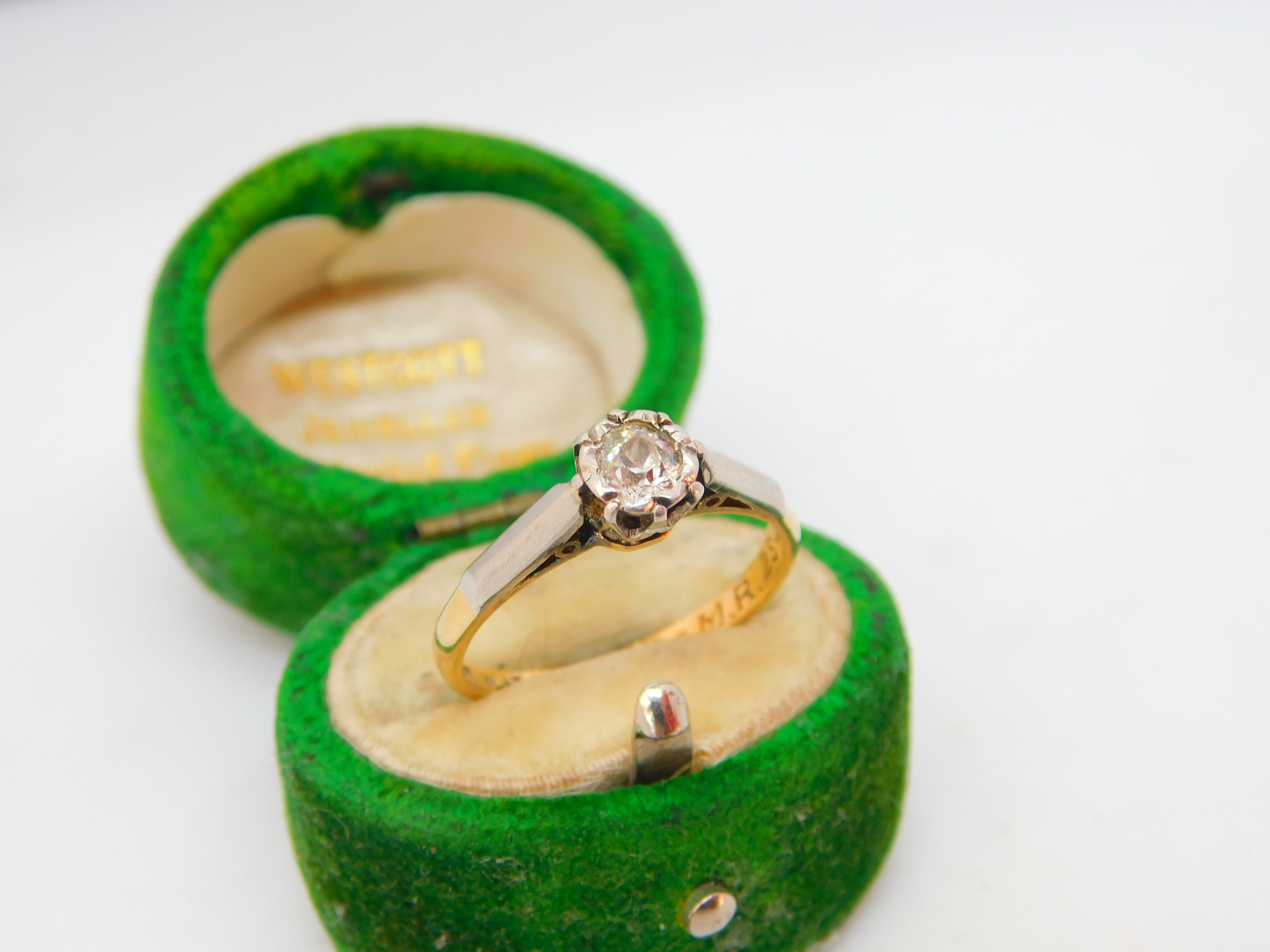 Victorian 18ct Yellow Gold & 0.3ct Diamond Solitaire Ring Antique c1890