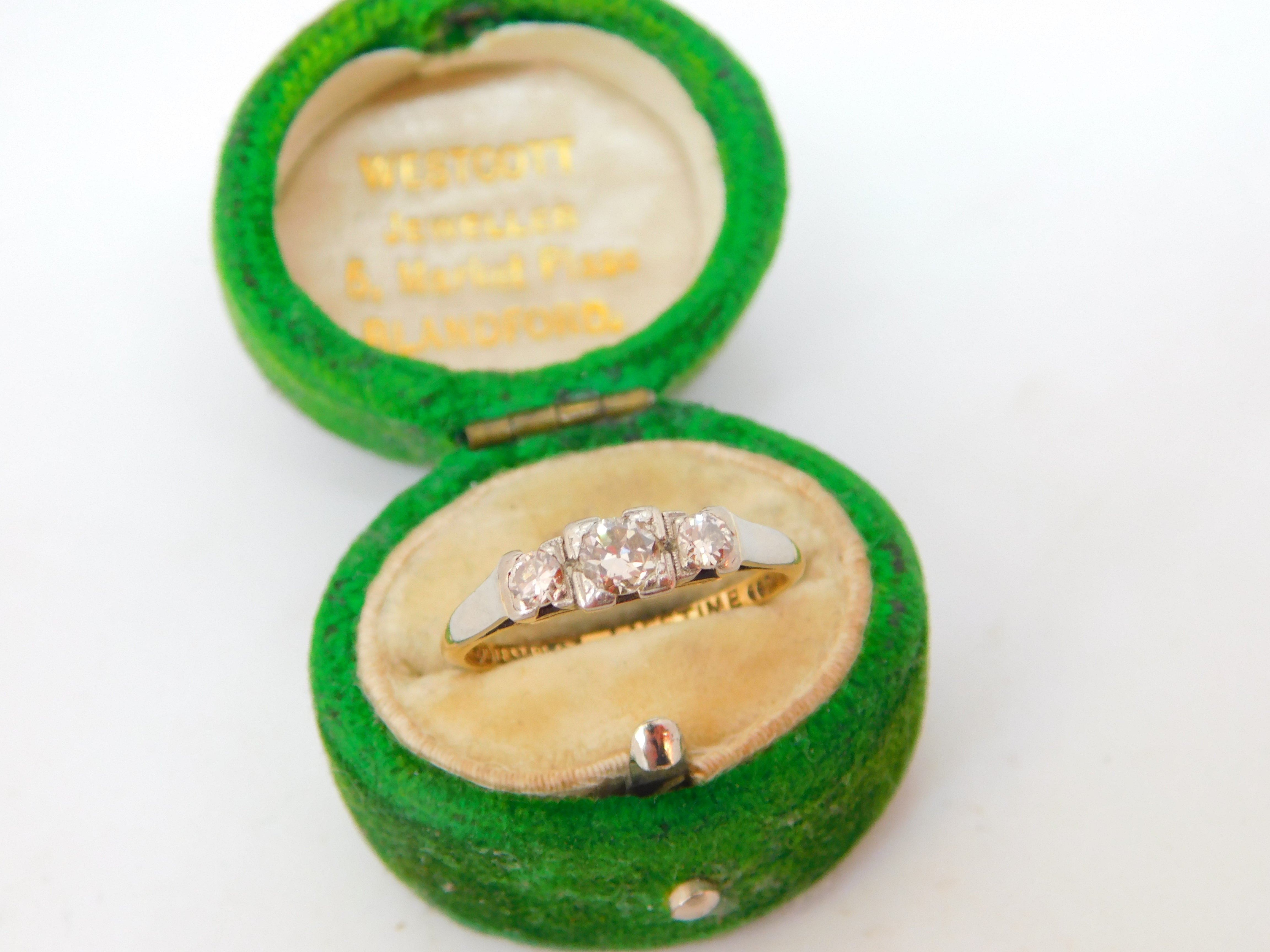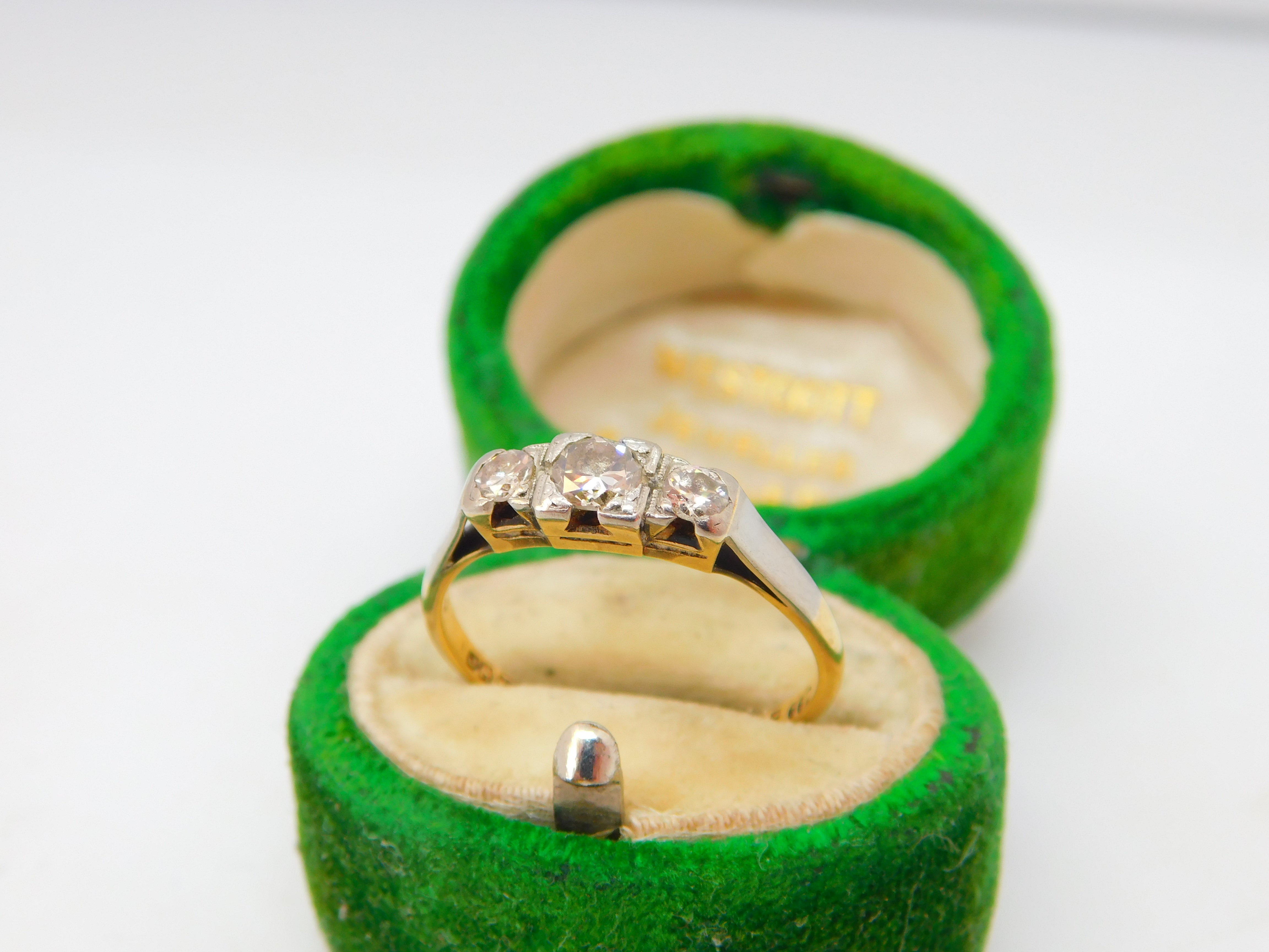 Victorian 18ct Yellow Gold & 0.4ct Three-Stone Dress Ring Antique c1890