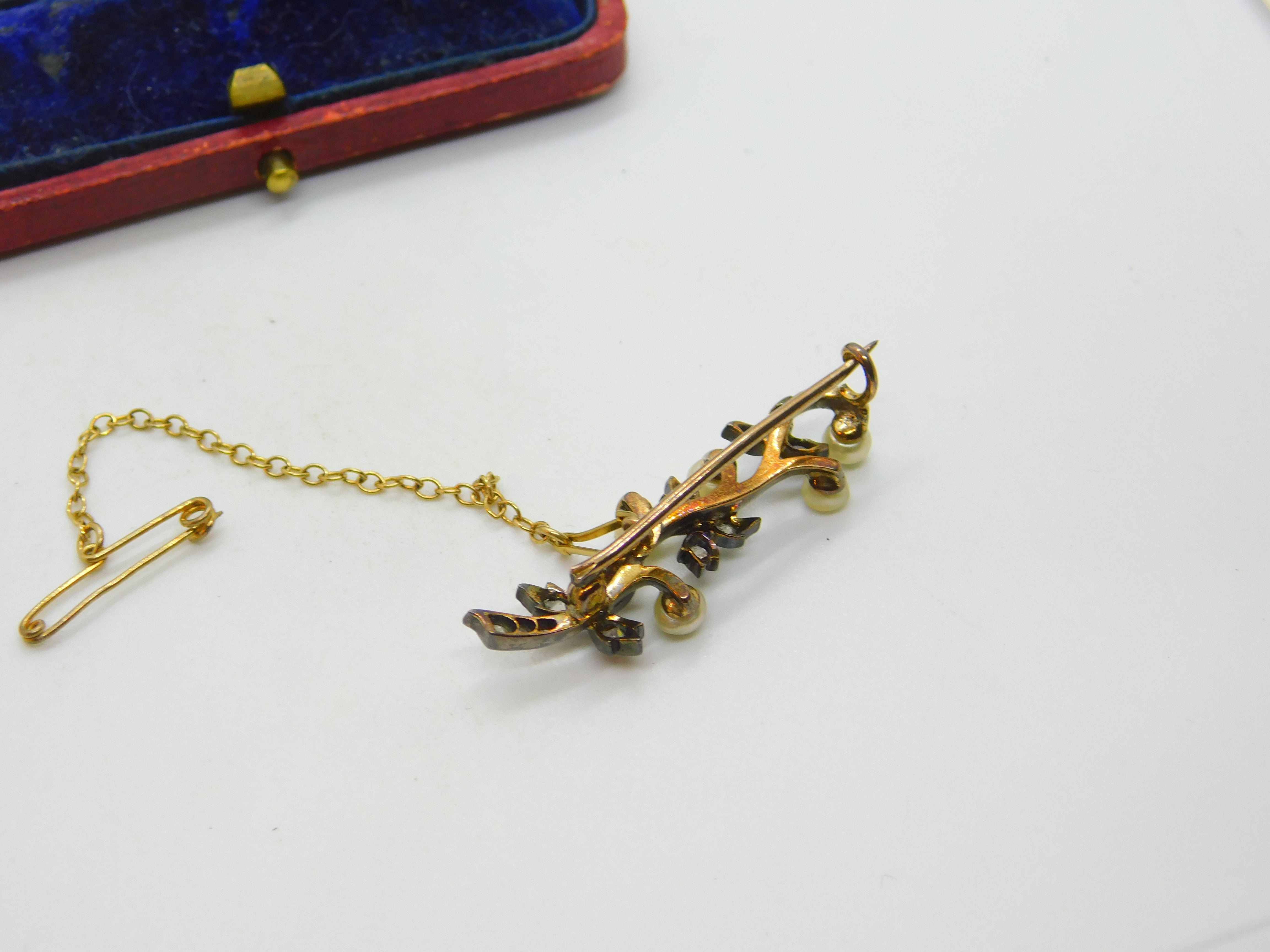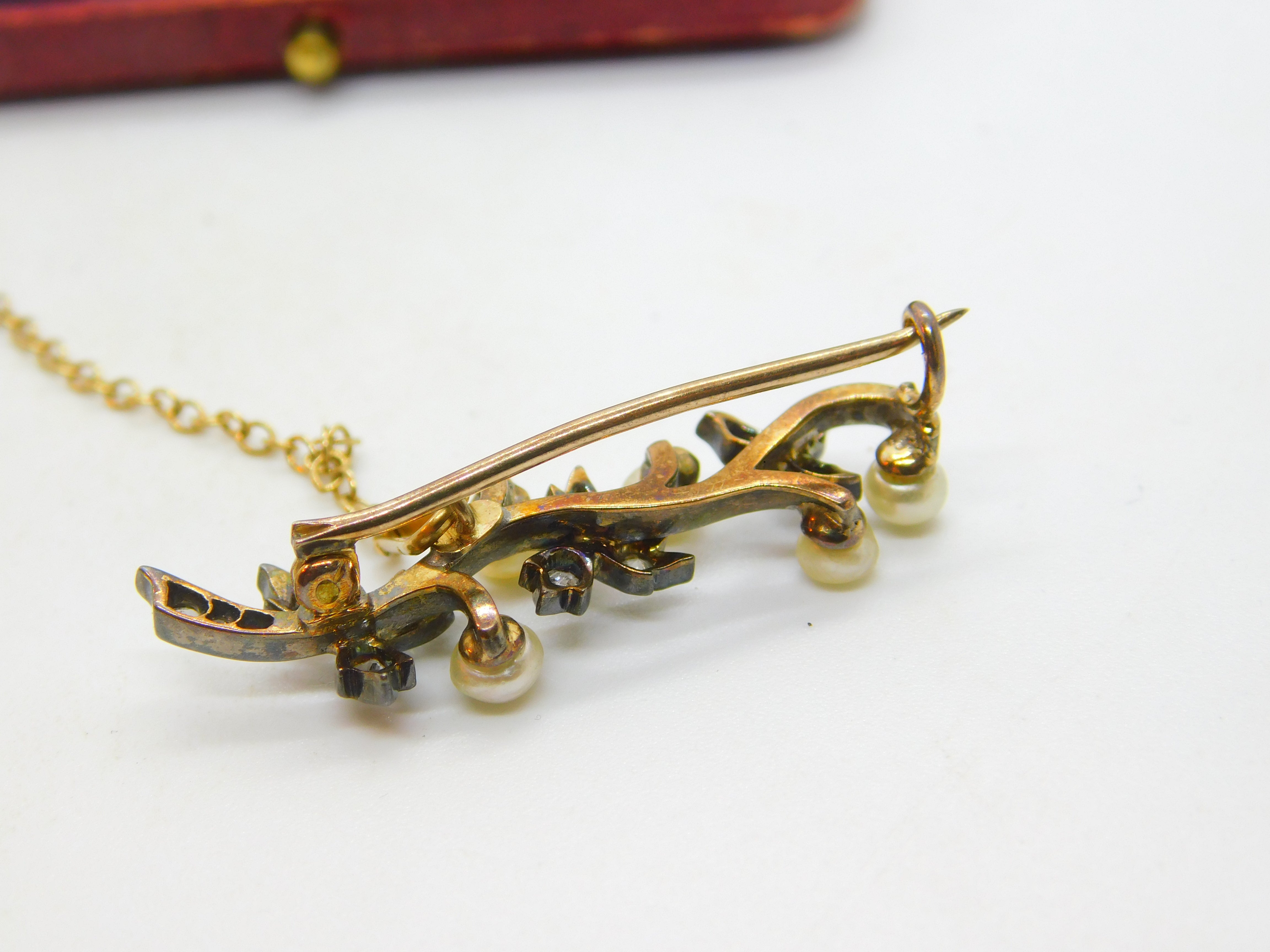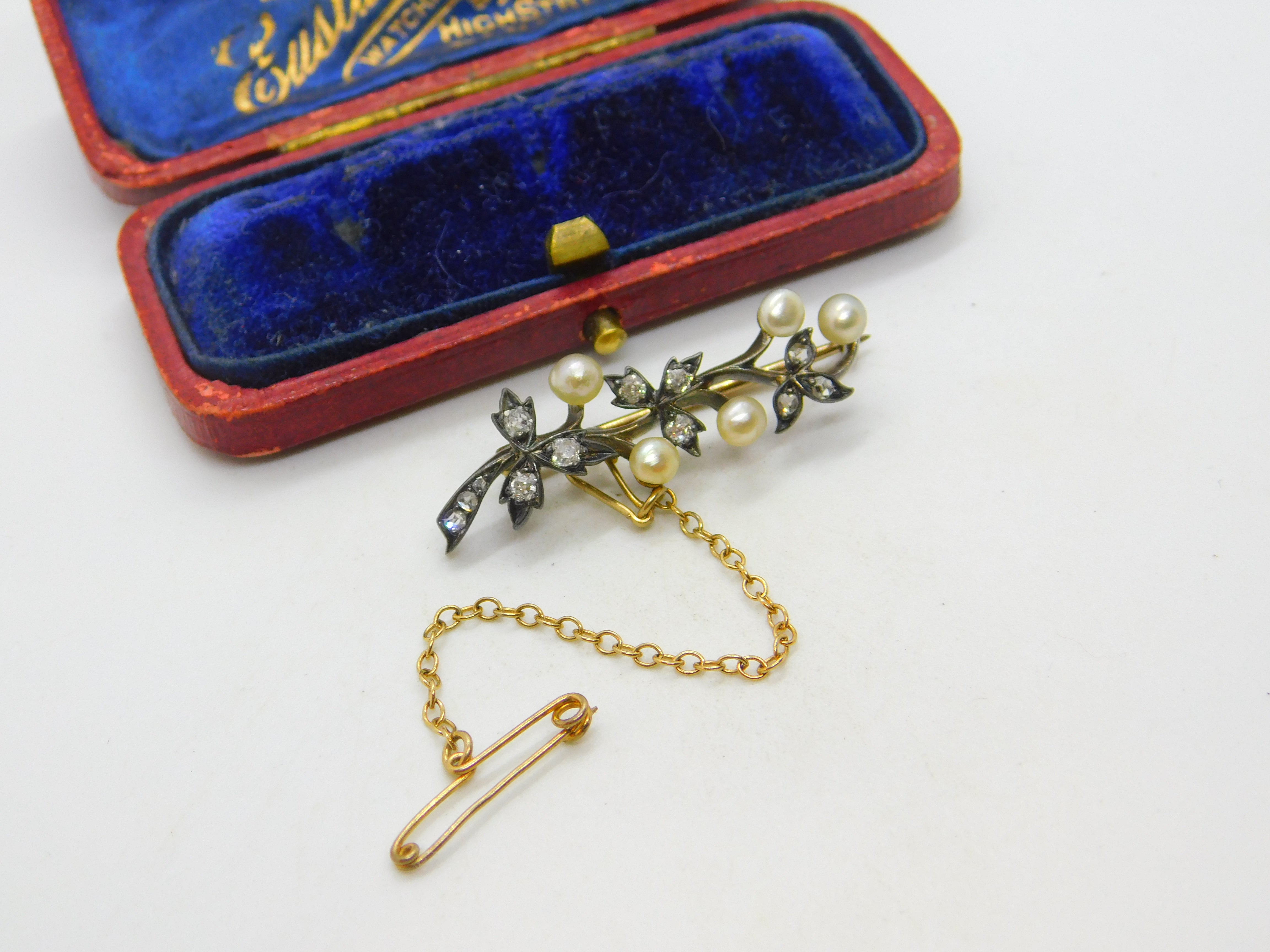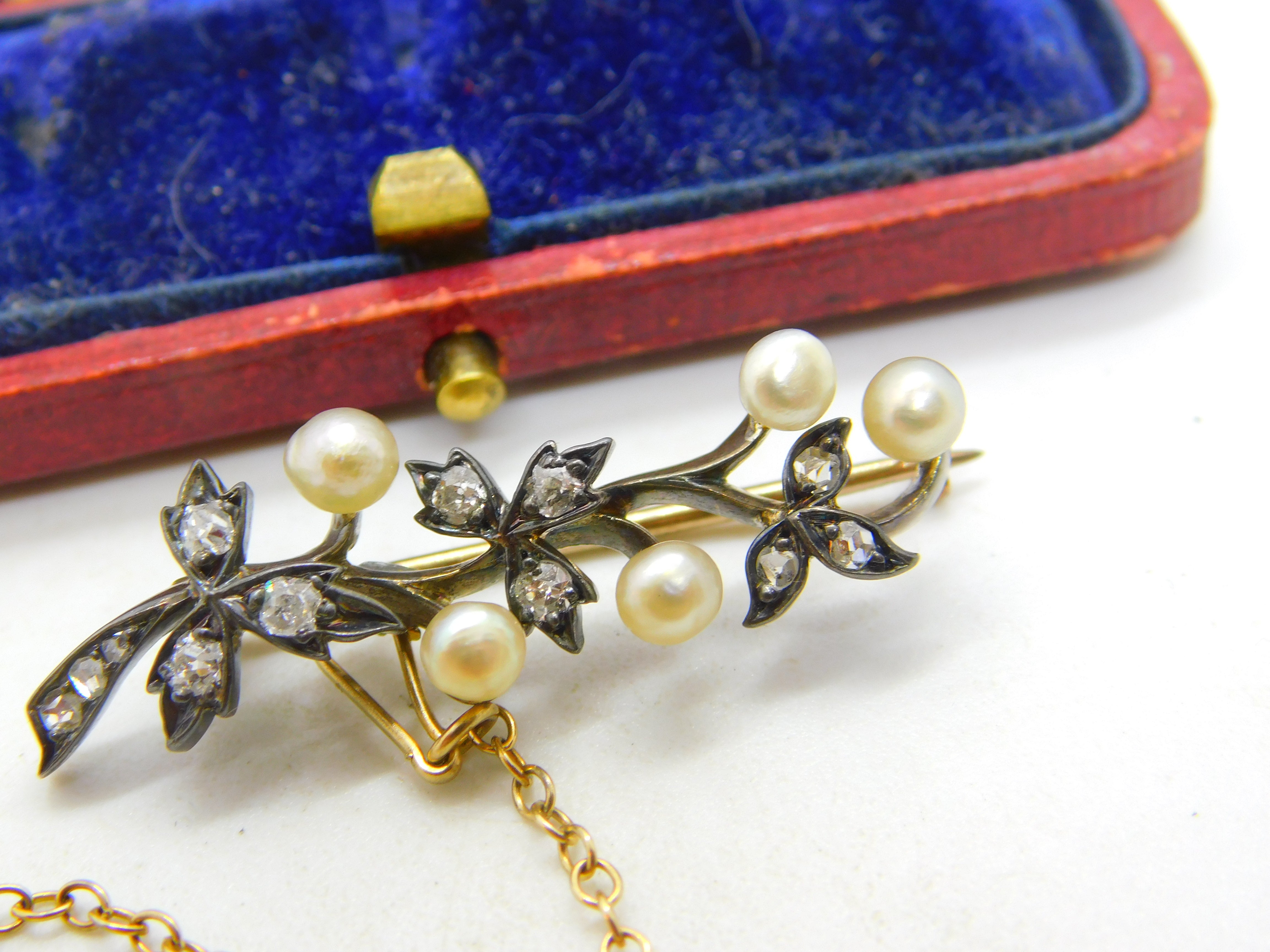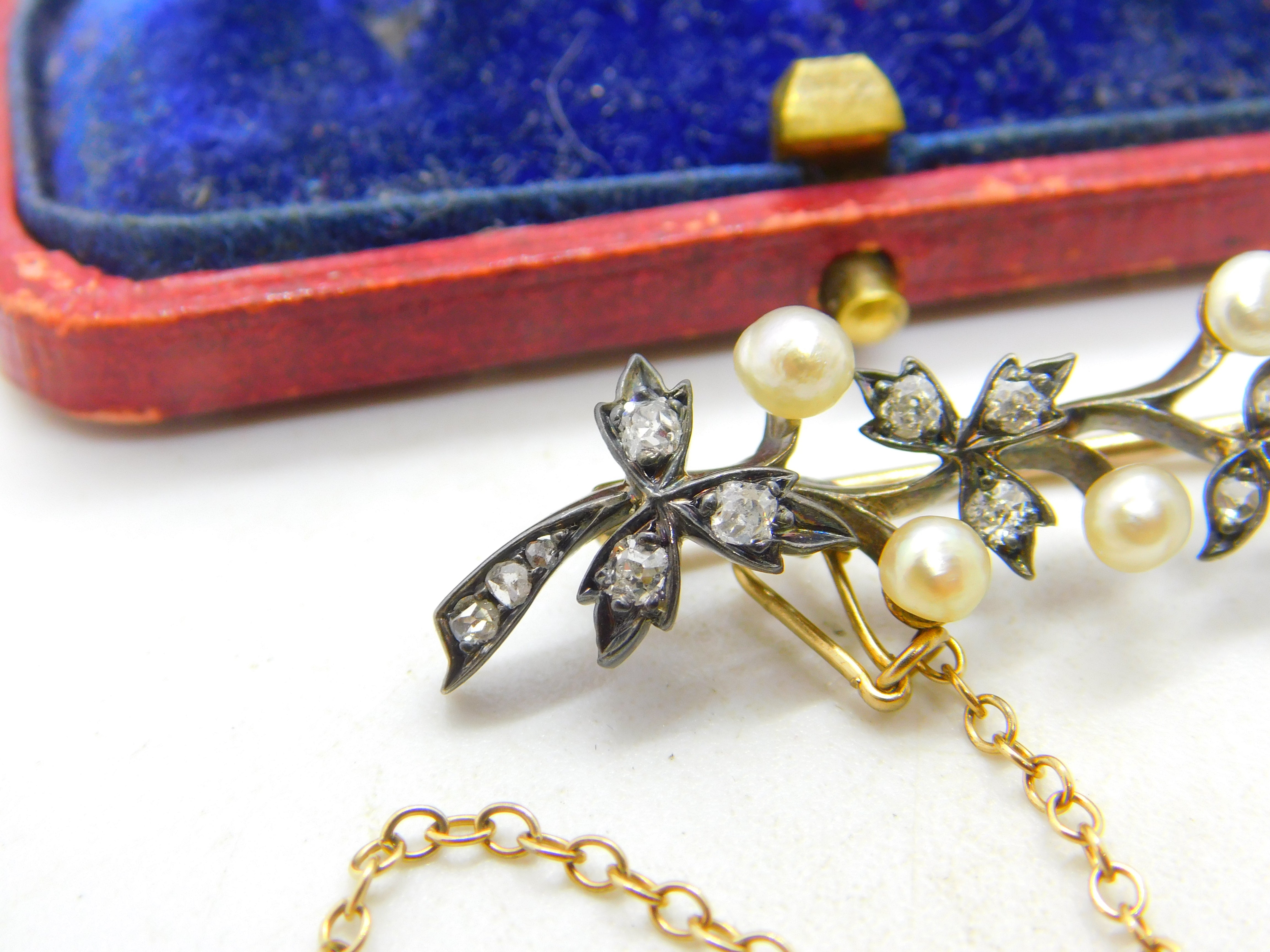 Victorian 18ct Yellow Gold, 0.5ct Diamond & Pearl Floral Brooch c1860 Antique
