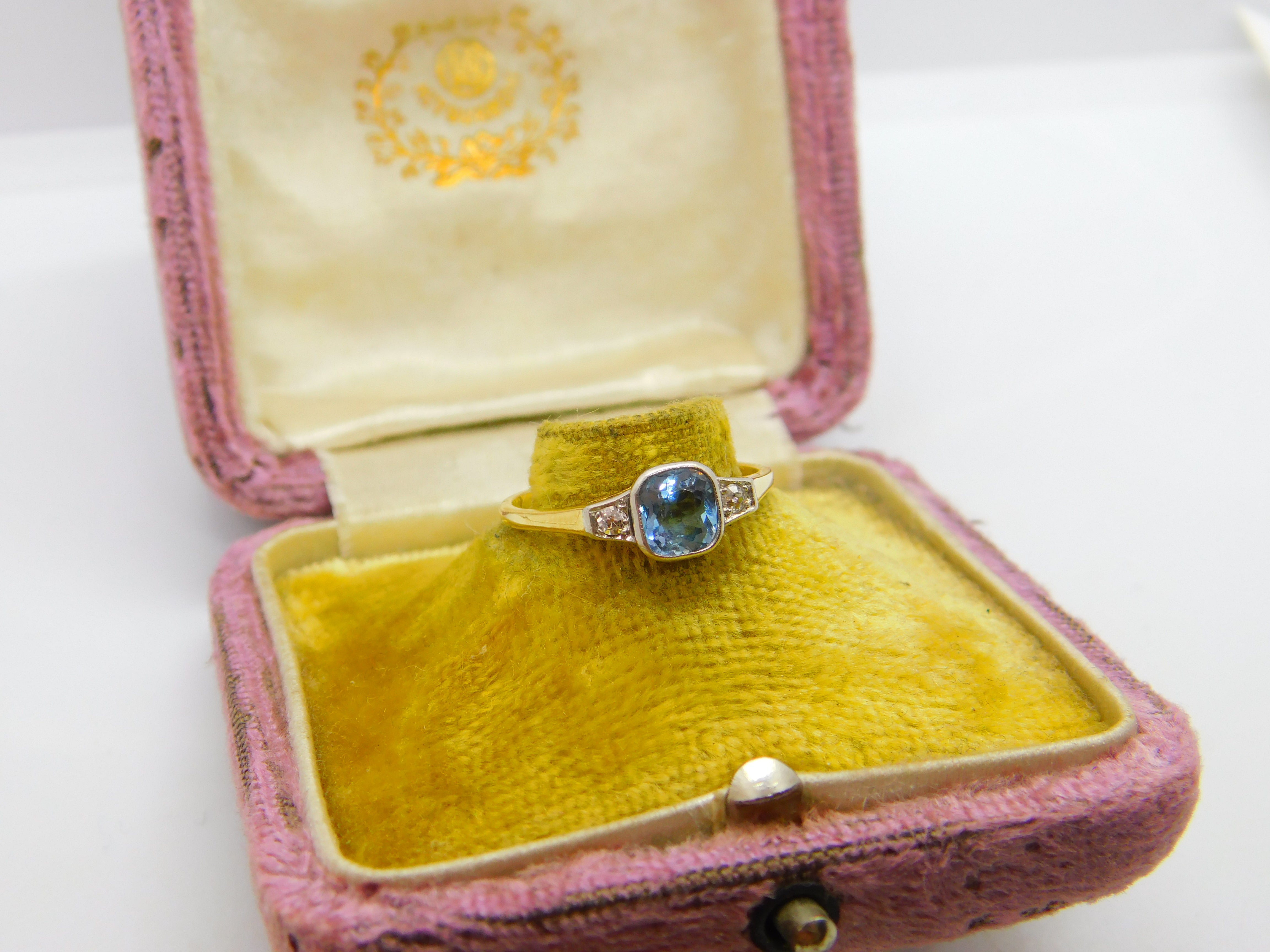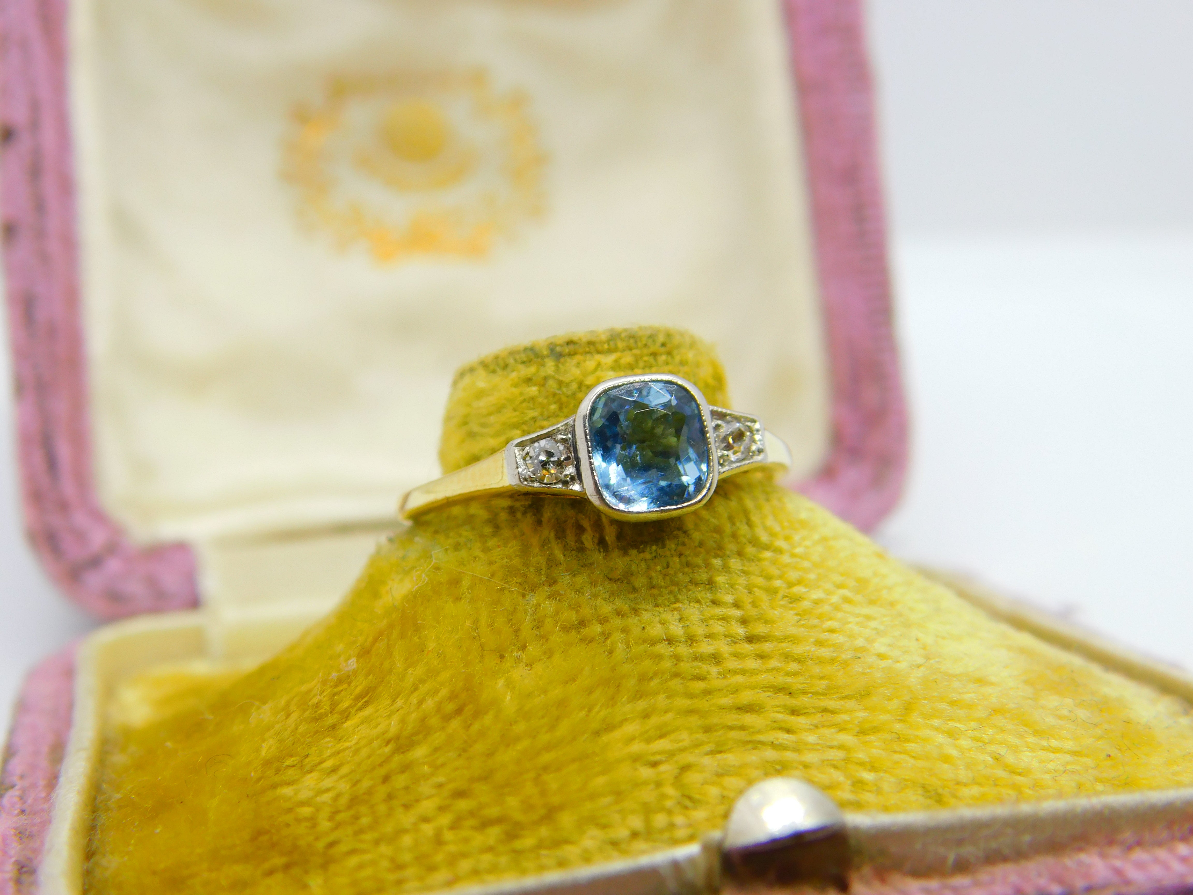 Details: A fantastic and wonderfully designed antique Victorian 18ct yellow gold dress ring set with central aquamarine flanked by natural diamonds hallmarked to the interior band c1900, the stones have been tested. This is a wonderful item that would make a perfect gift or addition to any collection. The BOX pictured is for PRESENTATION ONLY and is NOT included in the listings but used to frame the pictures unless specifically stated otherwise.