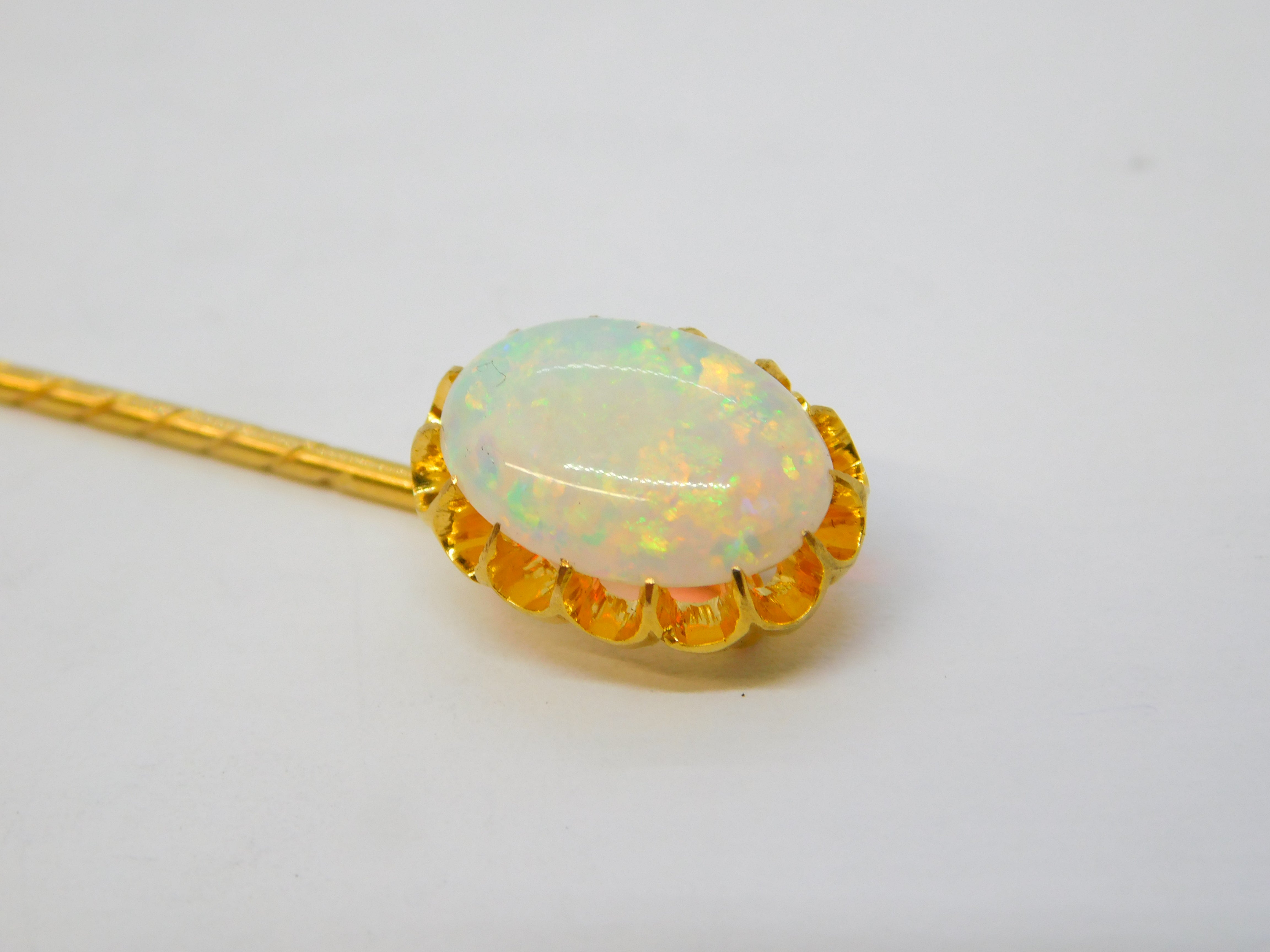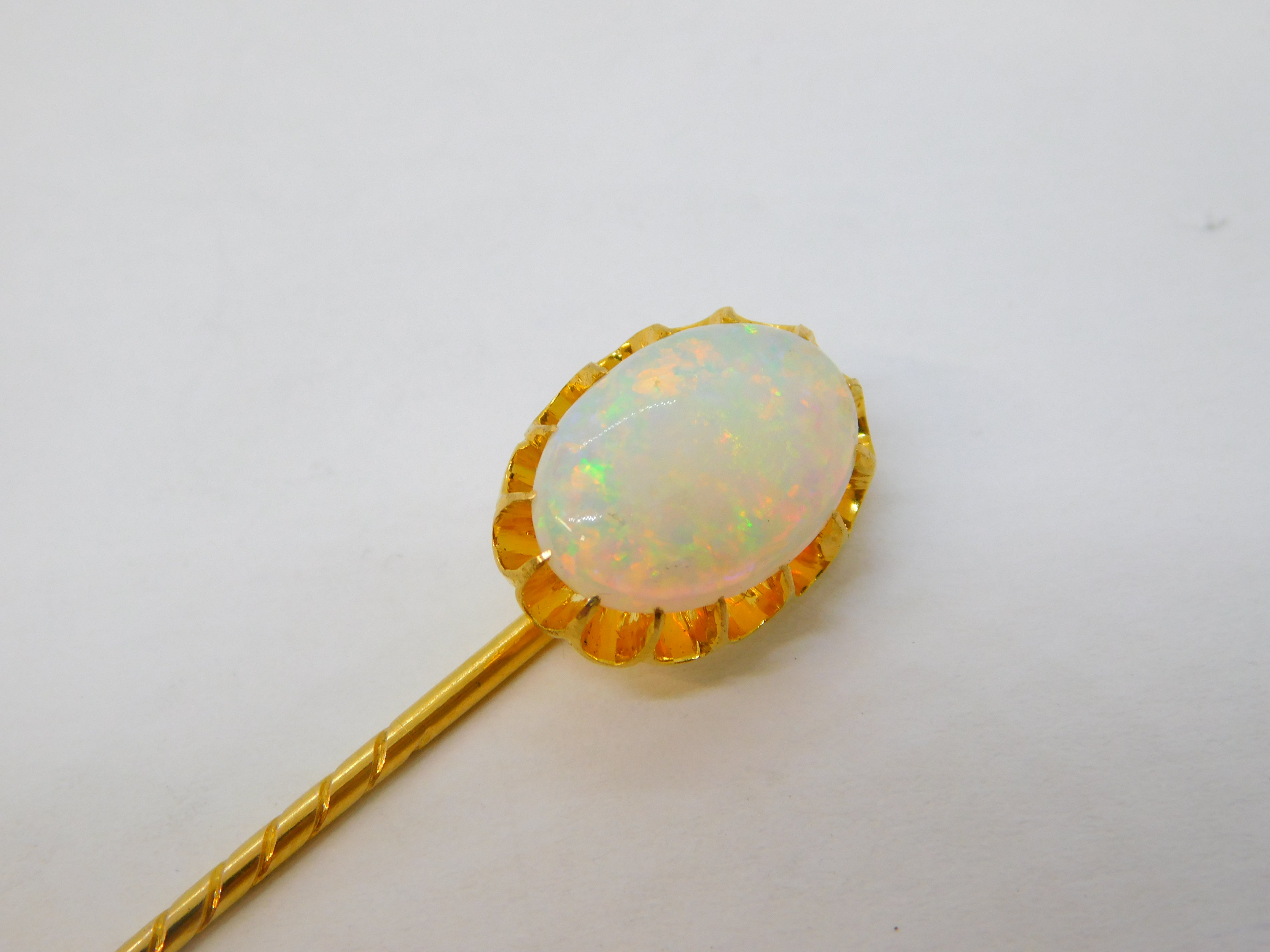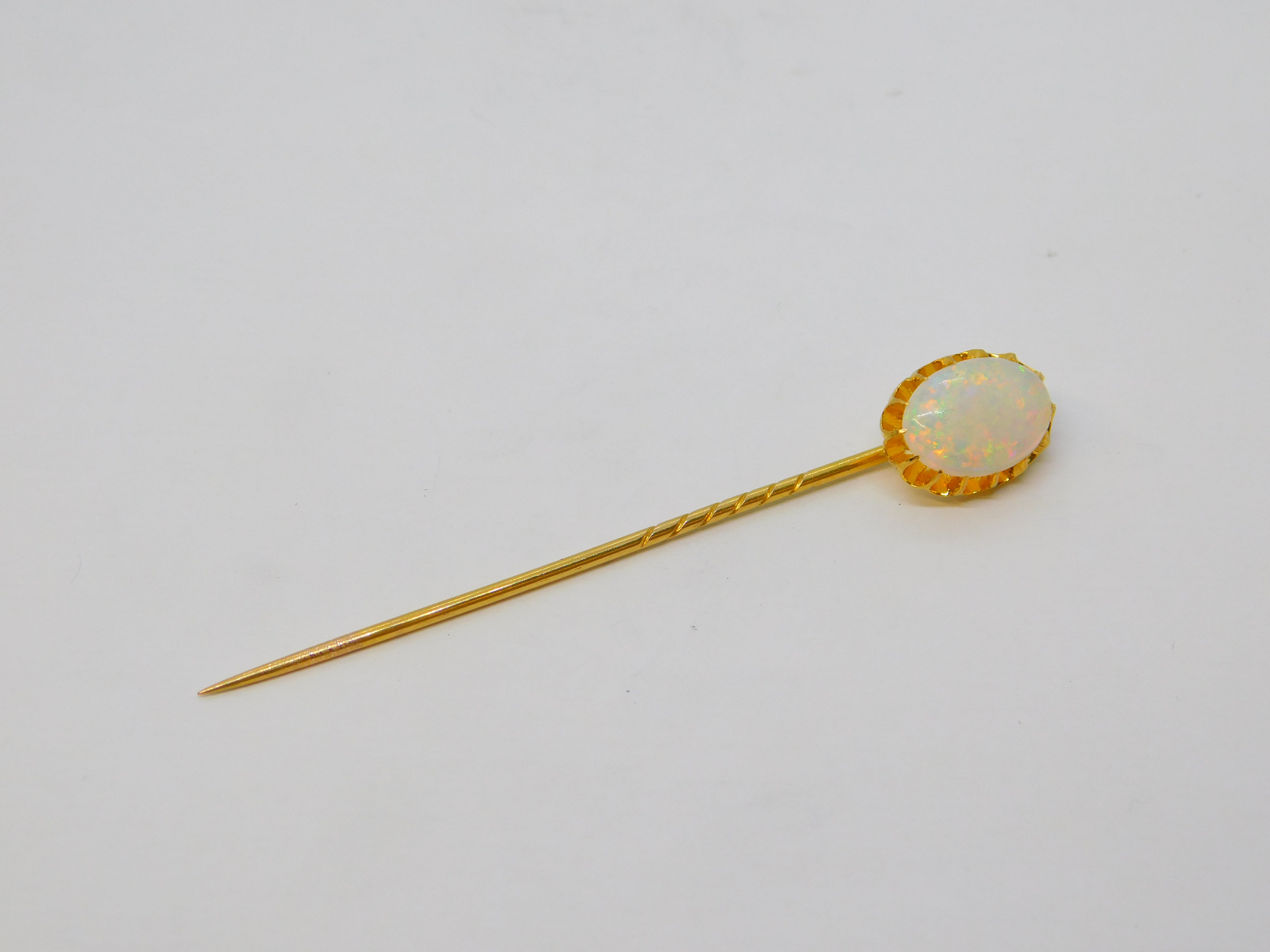 Details: A fantastic and wonderfully designed antique Victorian 18ct yellow gold stick pin set with large cabochon cut white opal with stunning colour & detailing c1890, the gold has been XRF tested as it is unmarked. This is a wonderful item that would make a perfect gift or addition to any collection.