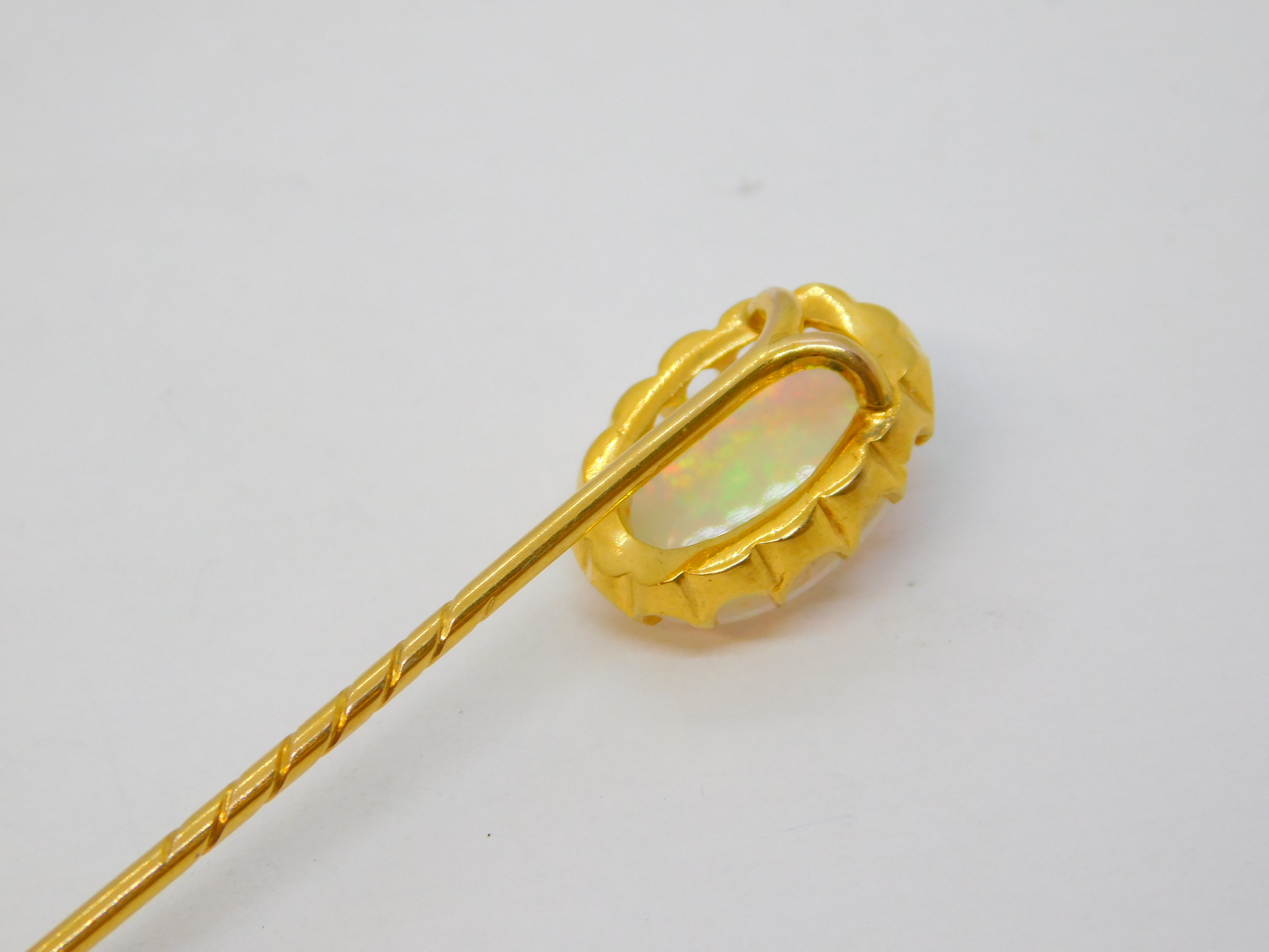 Victorian 18ct Yellow Gold Cabochon White Opal Stick Pin Antique c1890