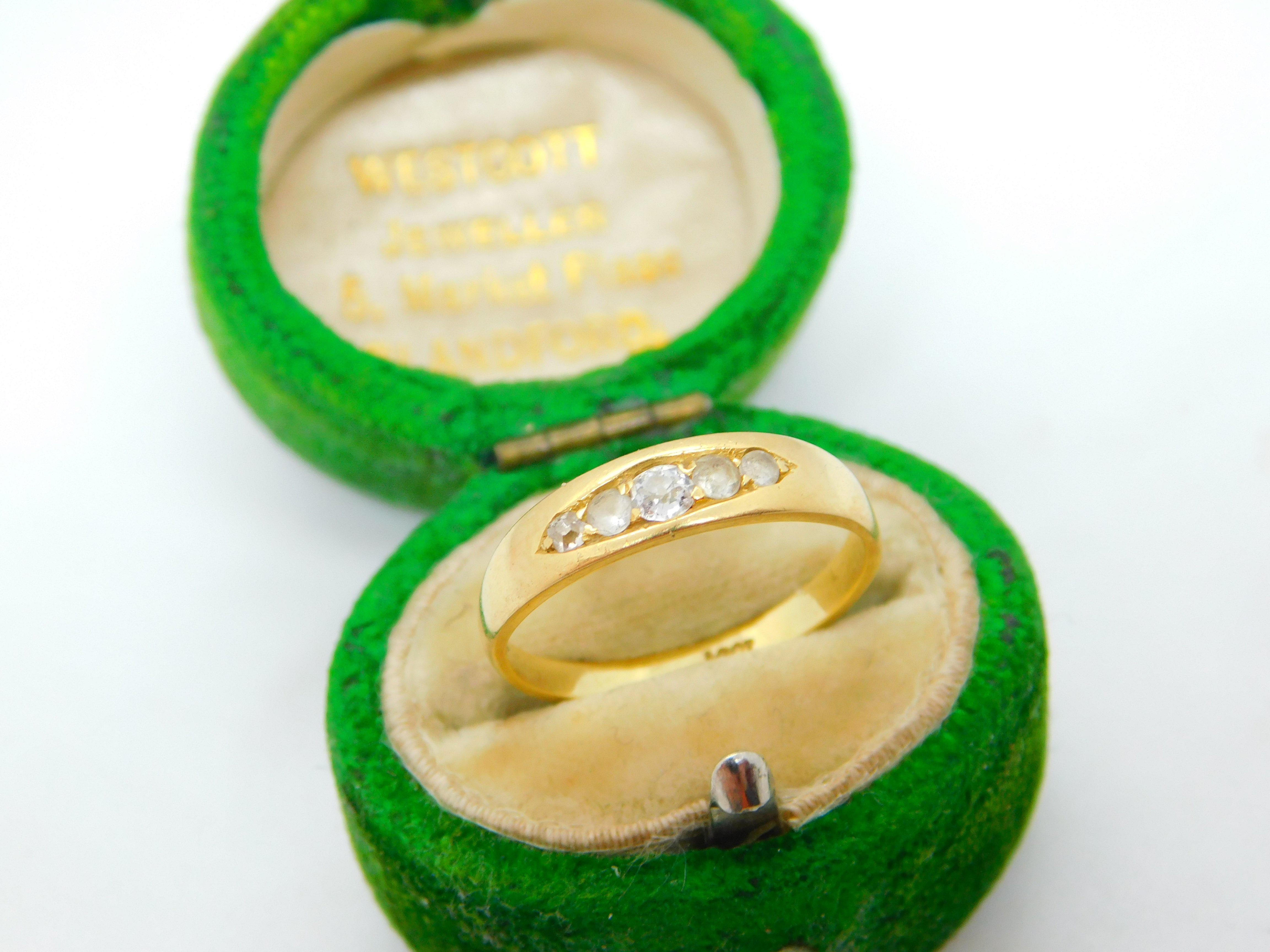 Details: A fantastic and wonderfully designed antique Victorian 18ct yellow gold boat ring set with central 0.1ct diamond flanked by paste stones hallmarked to the interior c1890. This is a wonderful item that would make a perfect gift or addition to any collection. The BOX pictured is for PRESENTATION ONLY and is NOT included in the listings but used to frame the pictures unless specifically stated otherwise.