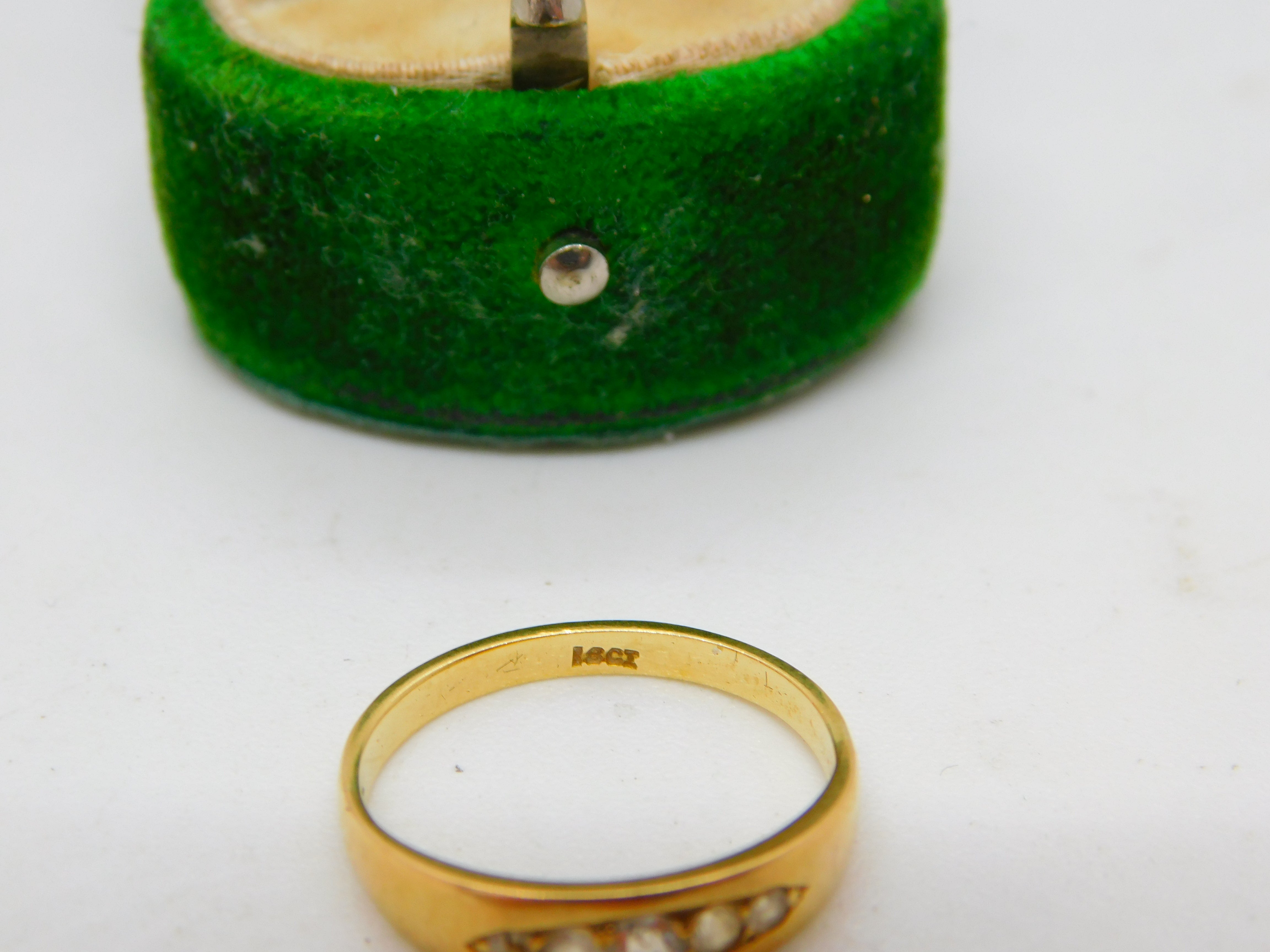 Victorian 18ct Yellow Gold, Diamond & Paste Boat Ring Antique c1890