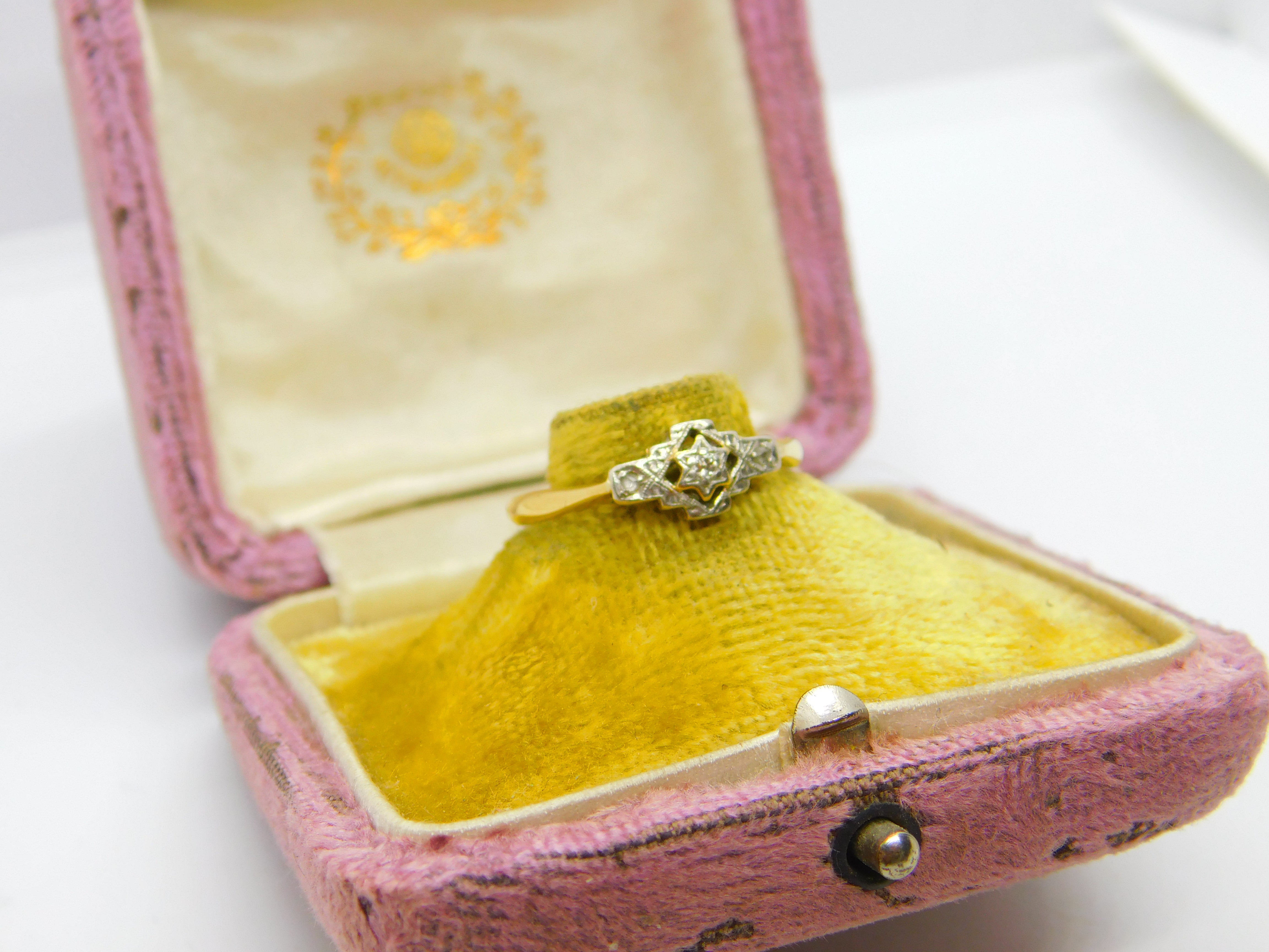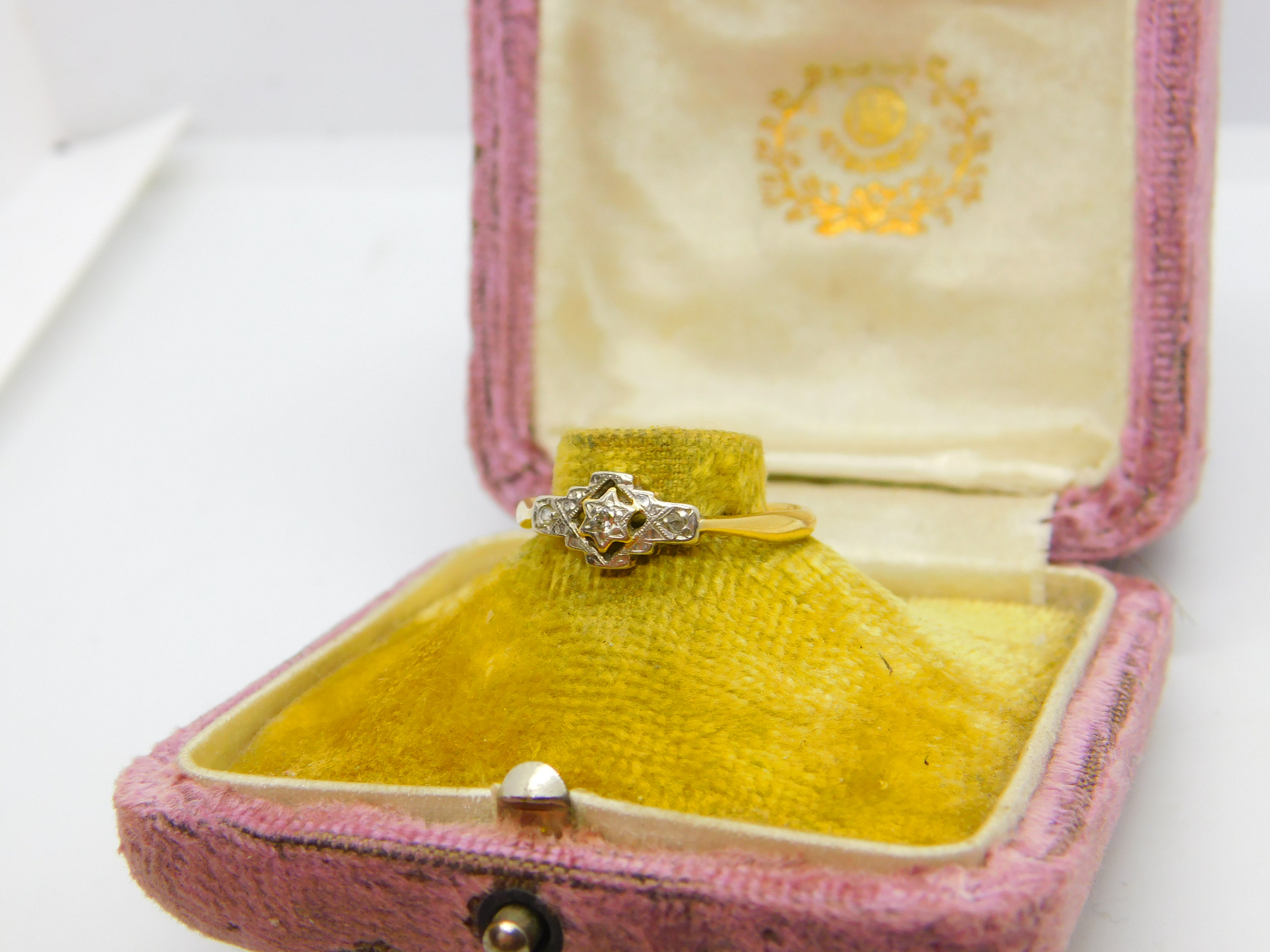 Details: A fantastic and wonderfully designed antique Victorian 18ct yellow gold starburst pattern sweetheart ring set with natural diamonds hallmarked to the interior band c1880. This is a wonderful item that would make a perfect gift or addition to any collection. The BOX pictured is for PRESENTATION ONLY and is NOT included in the listings but used to frame the pictures unless specifically stated otherwise.