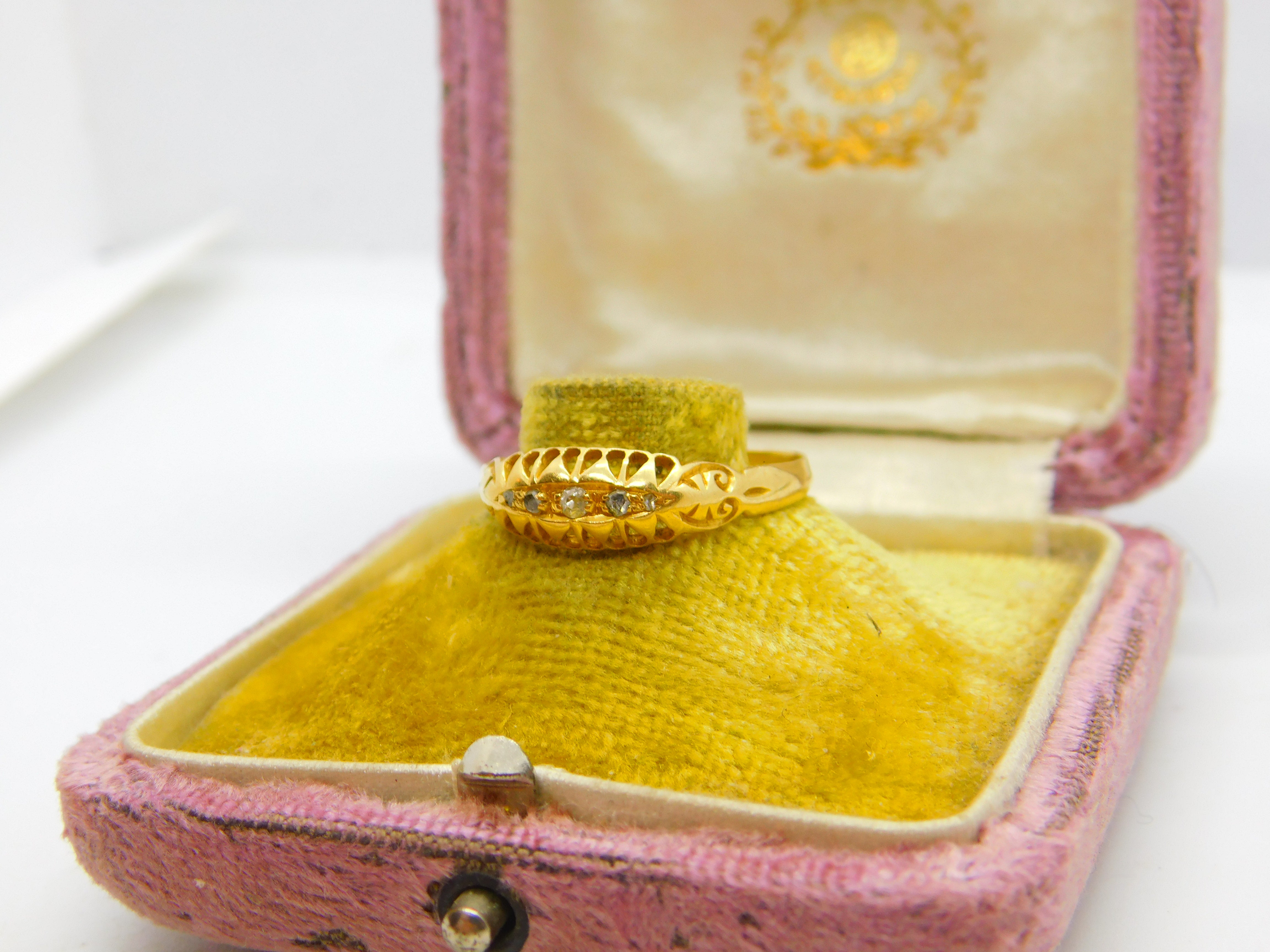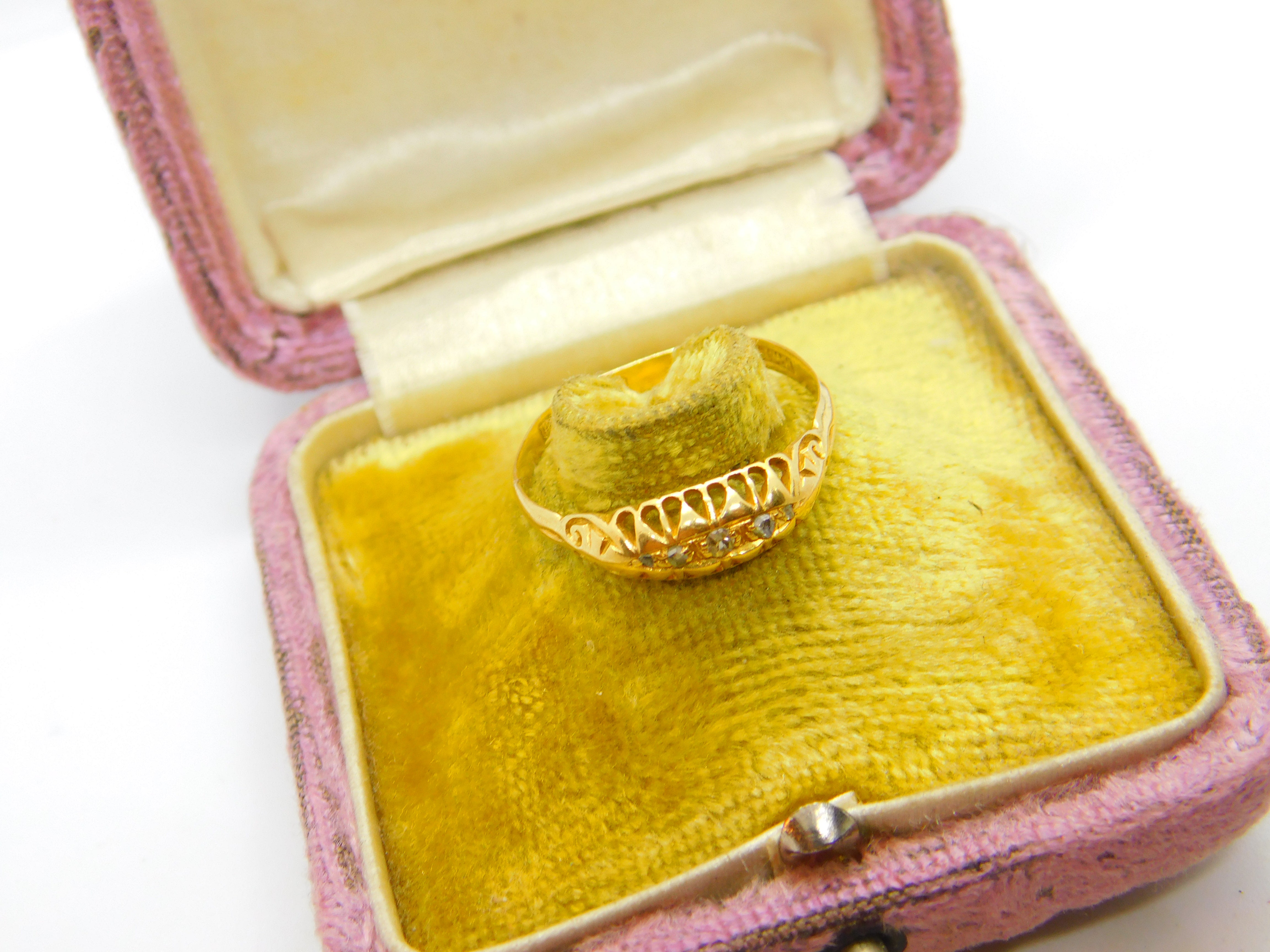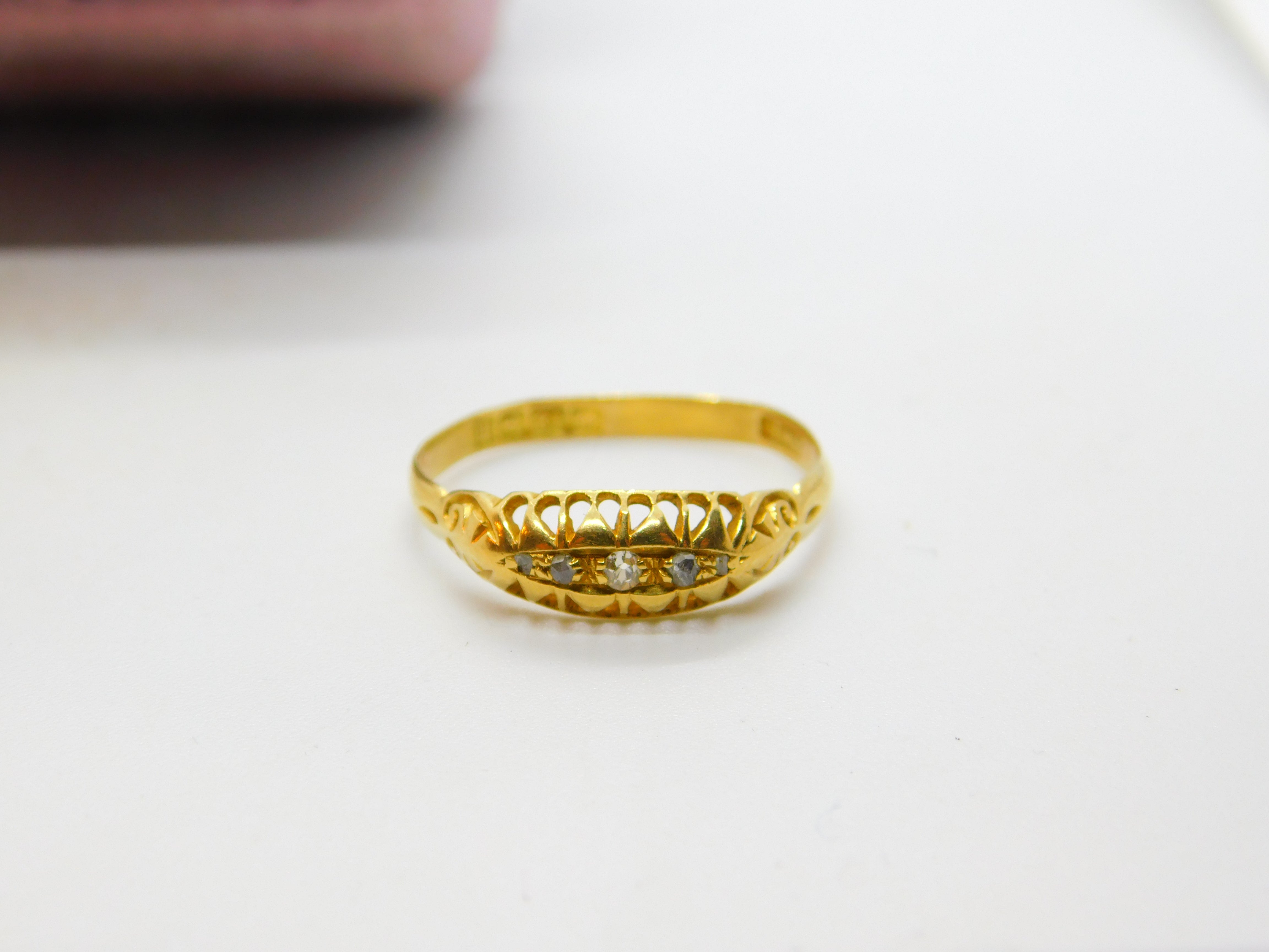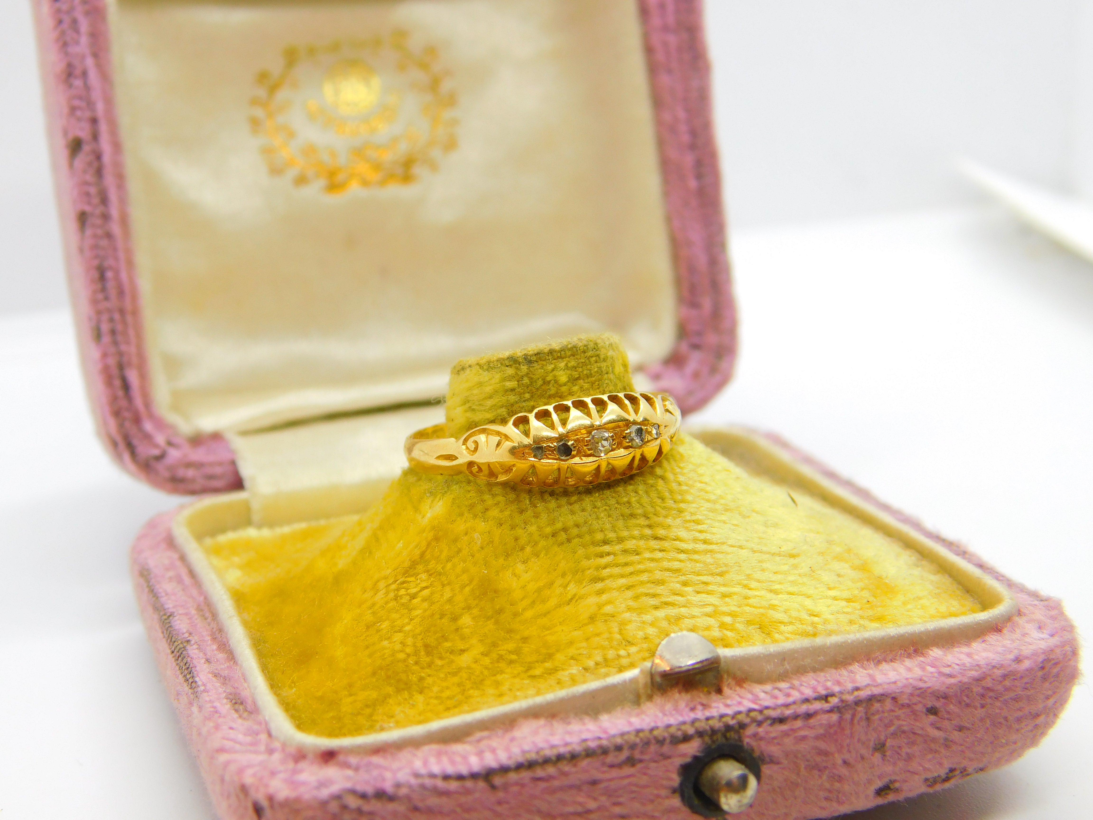 Victorian 18ct Yellow Gold Five-Stone Diamond Boat Ring 1896 Birmingham